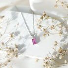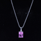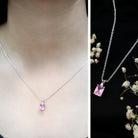 Solitaire Lab Grown Pink Sapphire Emerald Cut Necklace with Silver Chain