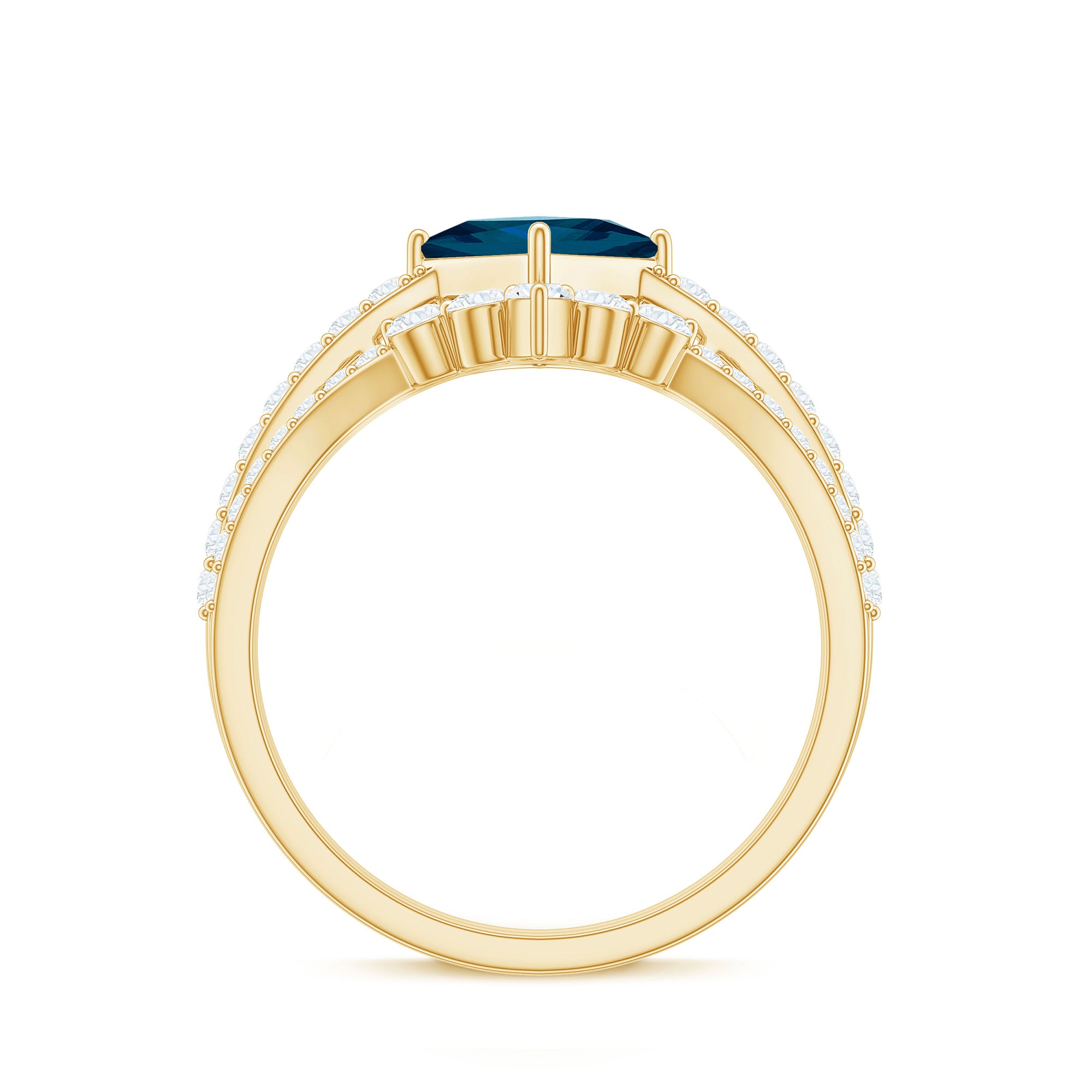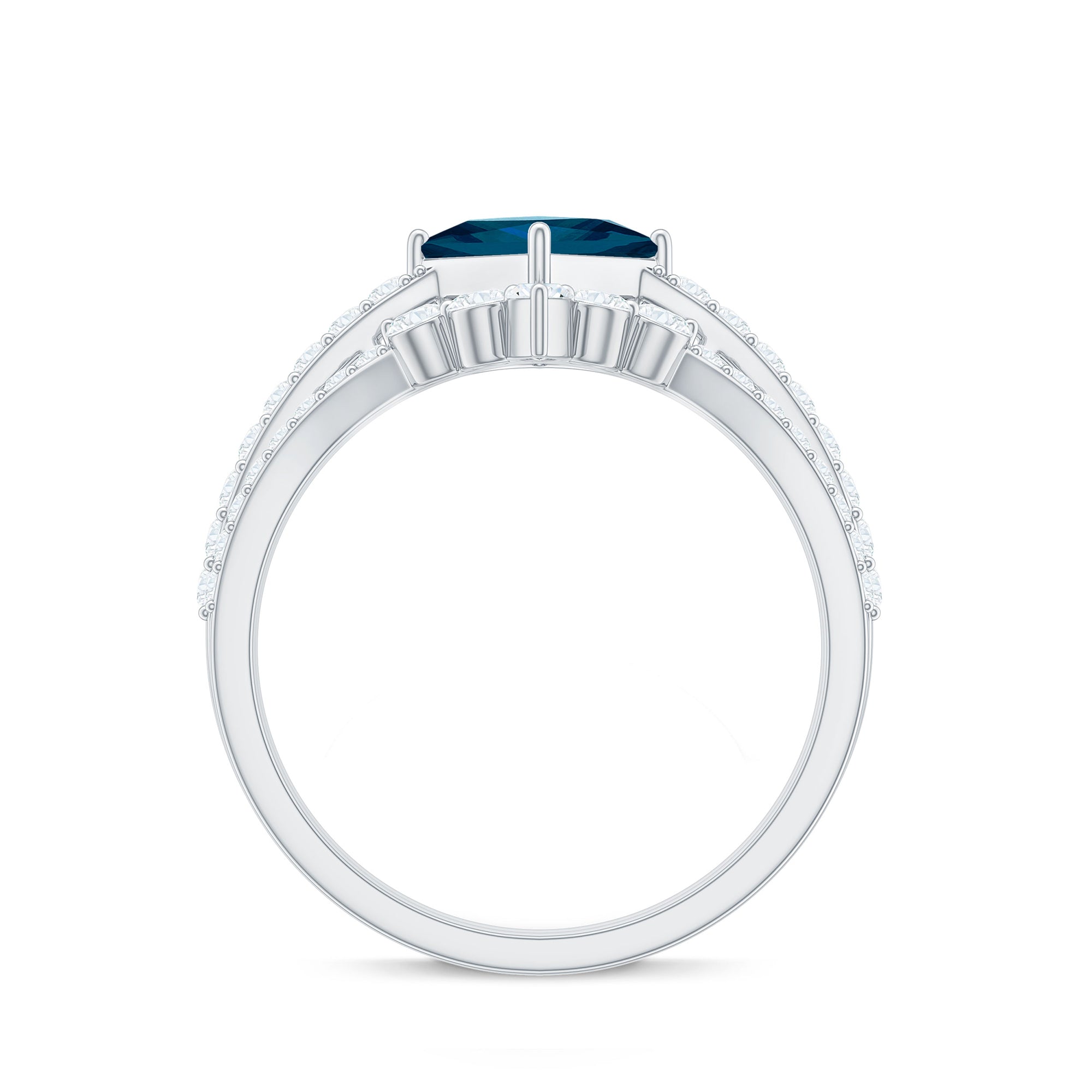 Enhance your eternal bond with this effortlessly sophisticated Engagement Ring and Wedding Band Set, crafted for the bride who values classic elegance with a contemporary spirit. At Rosec Jewels, we have redefined timeless allure in this remarkable bridal pair, showcasing certified gemstones that match the brilliance of any conventional gem. This exquisite 2 Piece Bridal Set features a striking 6 MM princess cut solitaire London Blue Topaz engagement ring, elegantly accompanied by radiant Diamond side stones for added sparkle. Complemented by a beautifully contoured ring guard, embellished with marquise and round Diamond, this Princess Cut Wedding Ring Set offers a cohesive, layered appearance that radiates sophistication from every perspective. Designed for elegance and comfort, this Blue Topaz and Diamond Bridal Ring Set is suitable for daily wear, whether you are going to work or commemorating a significant occasion. The sleek metal finish ensures comfort throughout the day, while the dazzling sparkle adds a touch of uniqueness. Crafted with AAA quality blue topaz and HI-SI quality diamonds, each stone is meticulously selected for its brilliance and clarity. It is presented in our signature jewelry box, making it perfect for that memorable proposal or heartfelt anniversary.