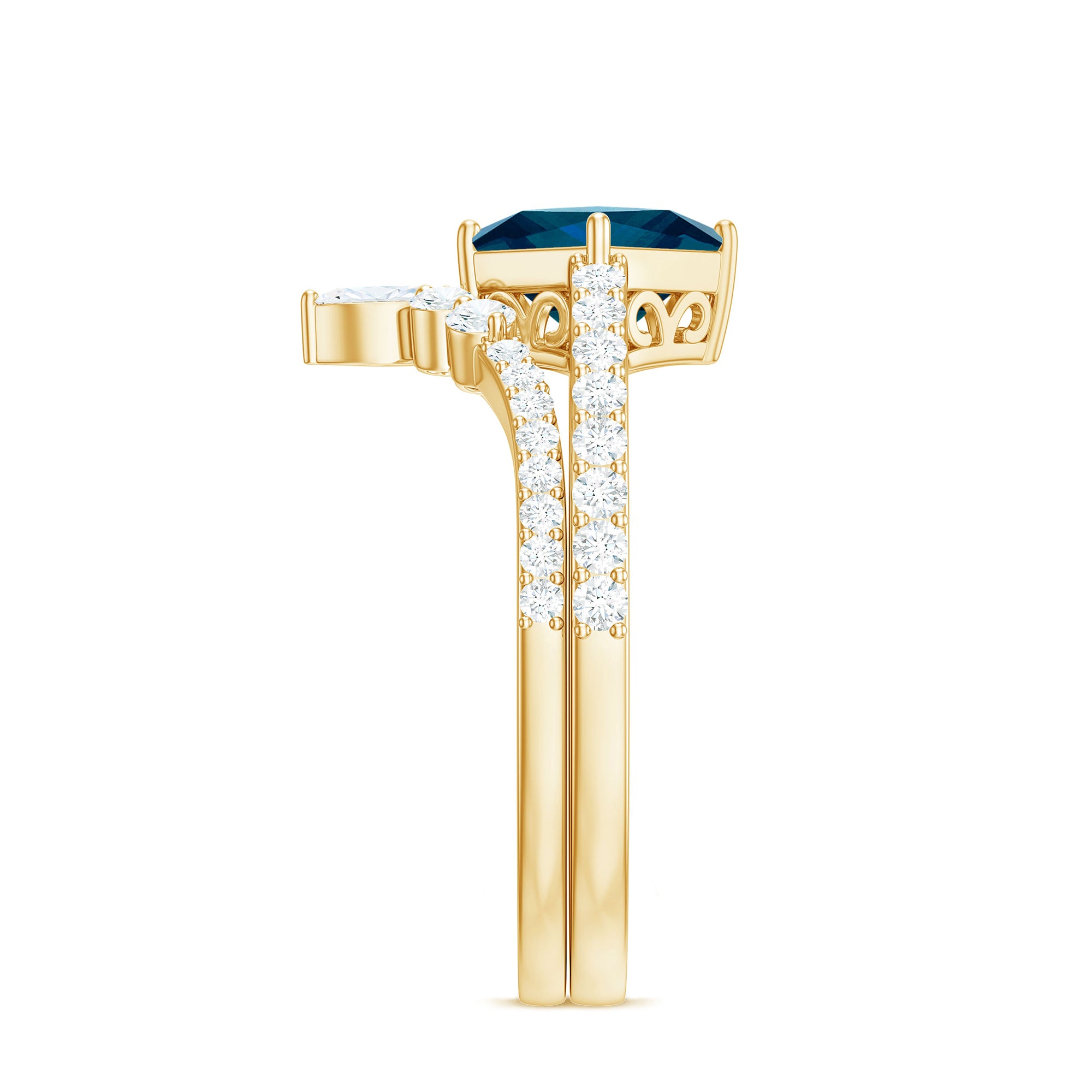 6mm Princess Cut London Blue Topaz and Diamond Wedding Ring Set