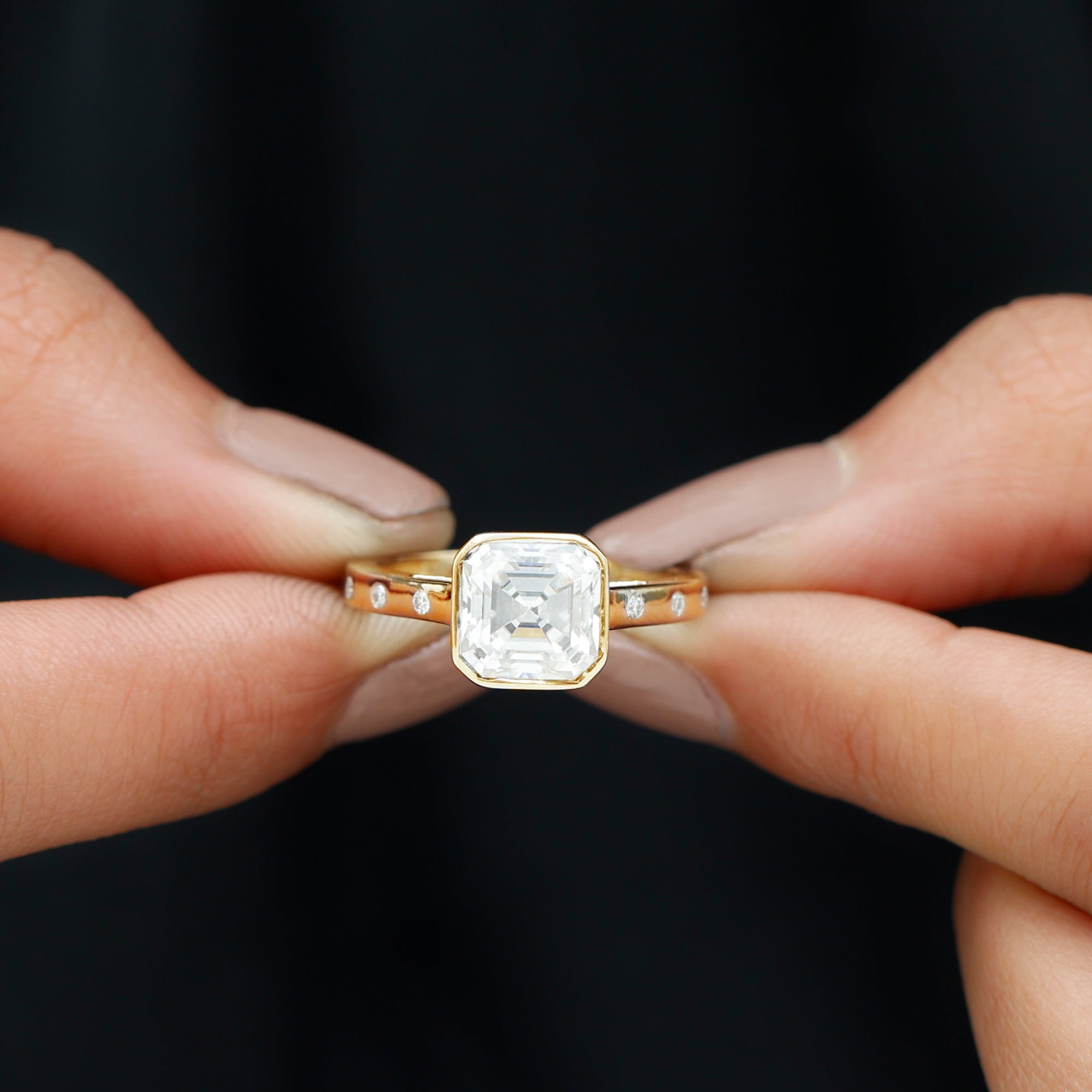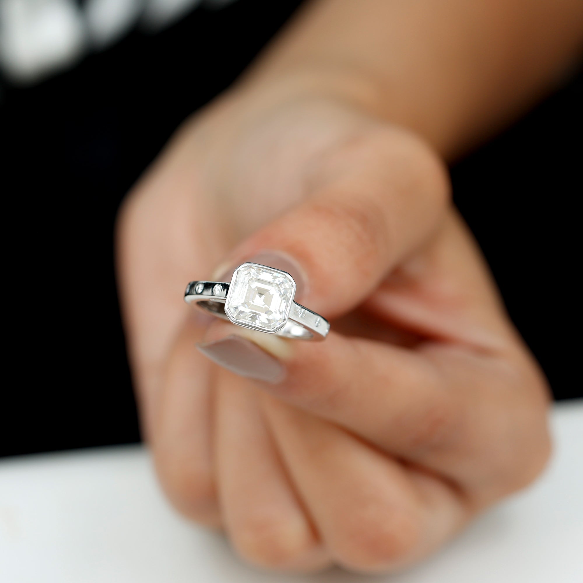 Solitaire Moissanite Asscher Cut Engagement Ring in Bezel Setting
