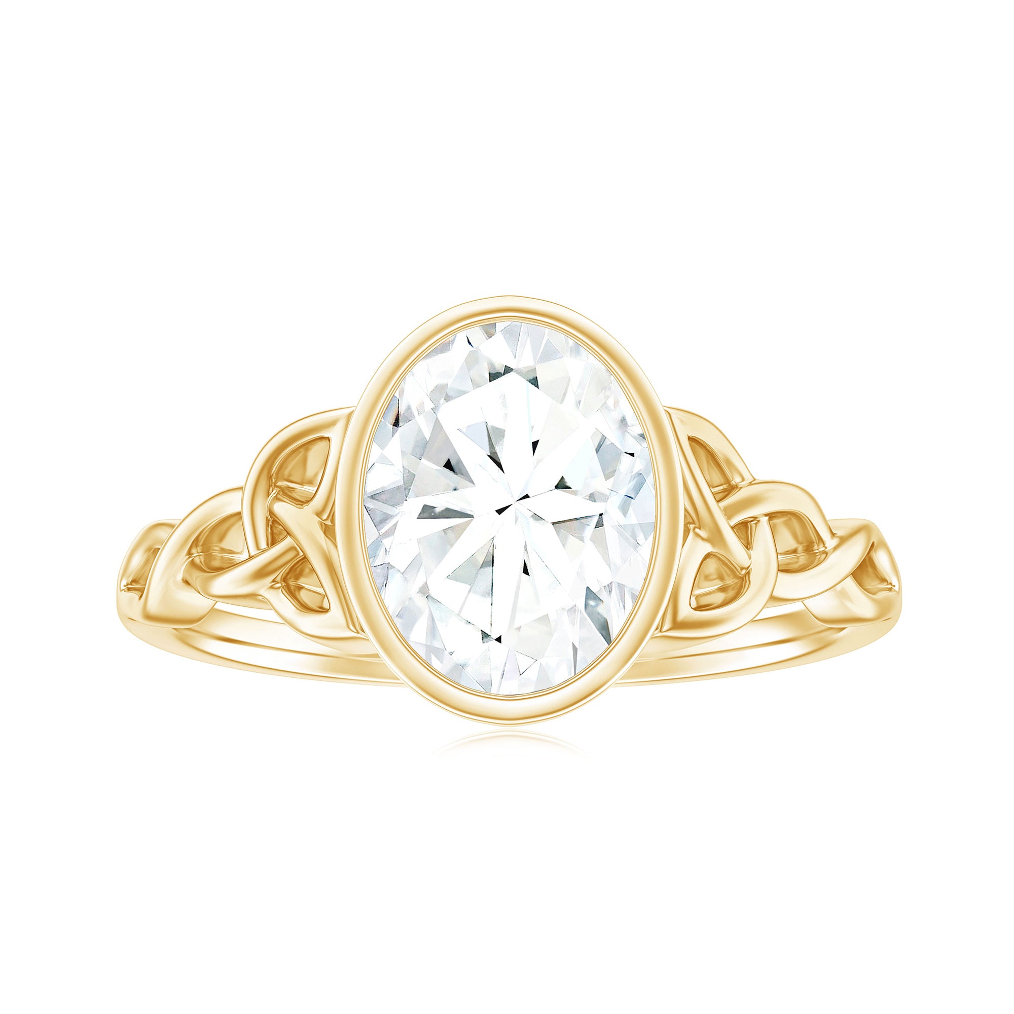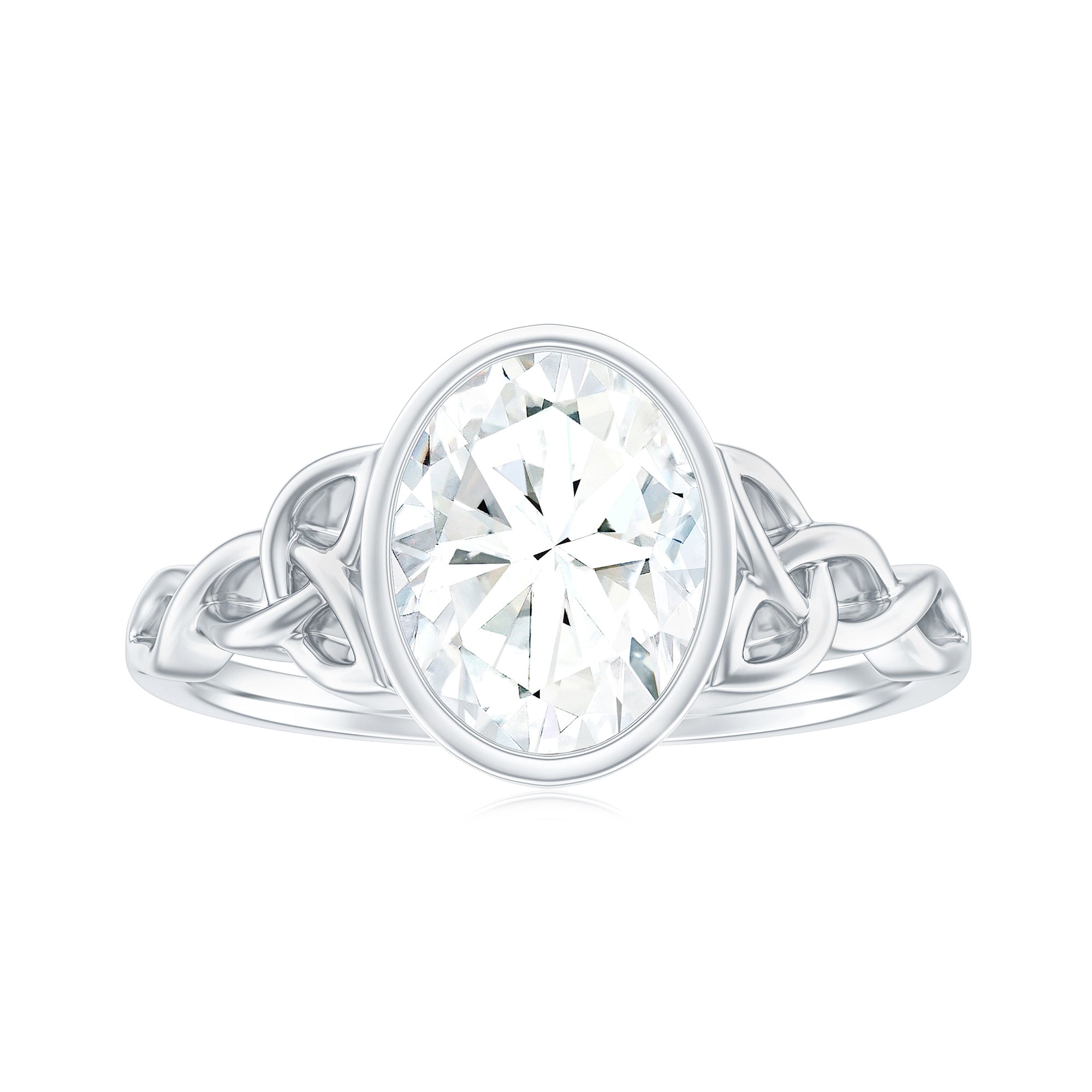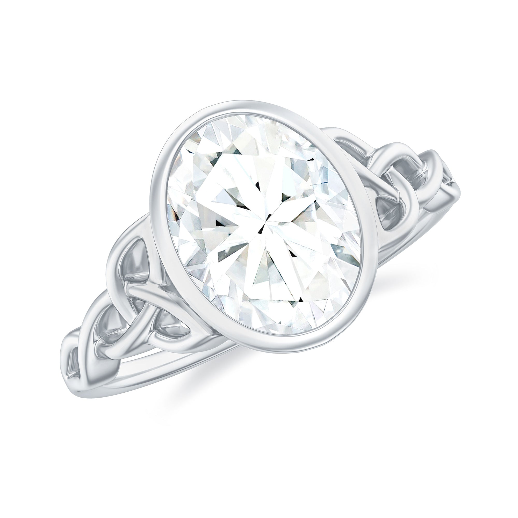 Solitaire Moissanite Celtic Engagement Ring in Bezel Setting