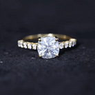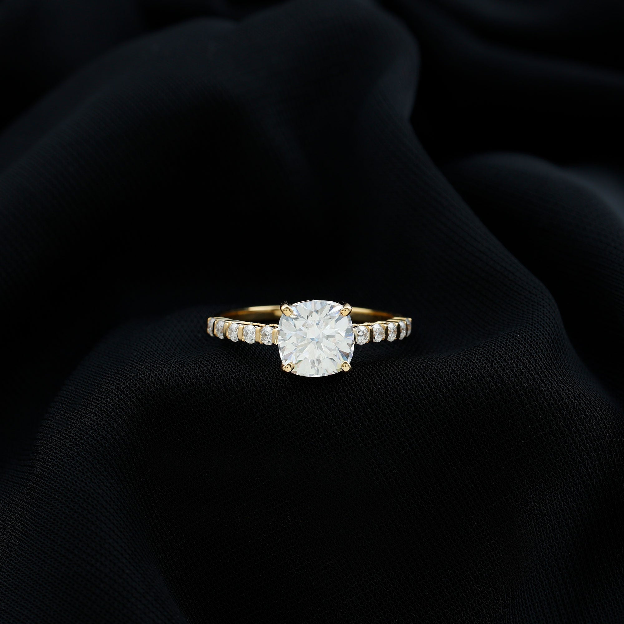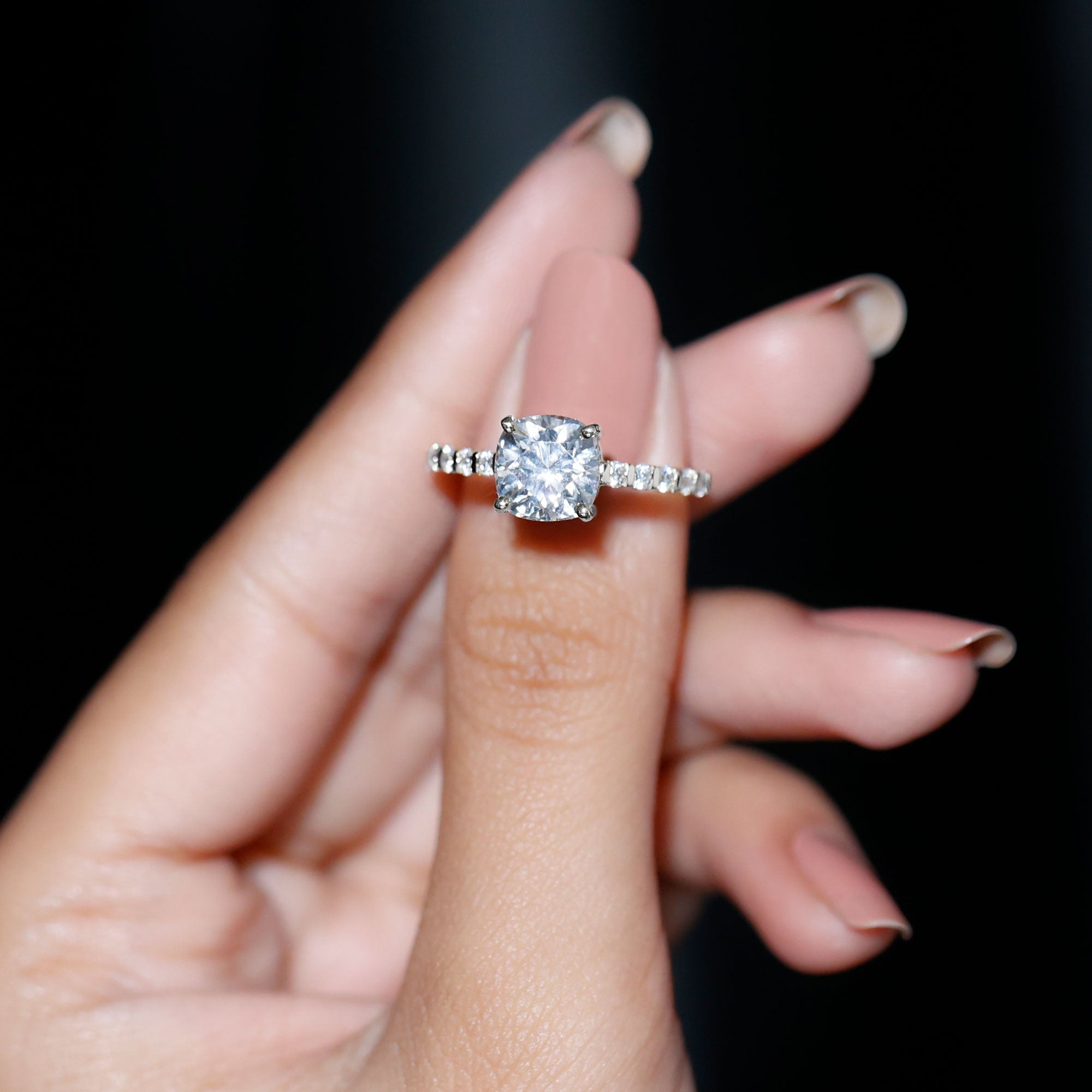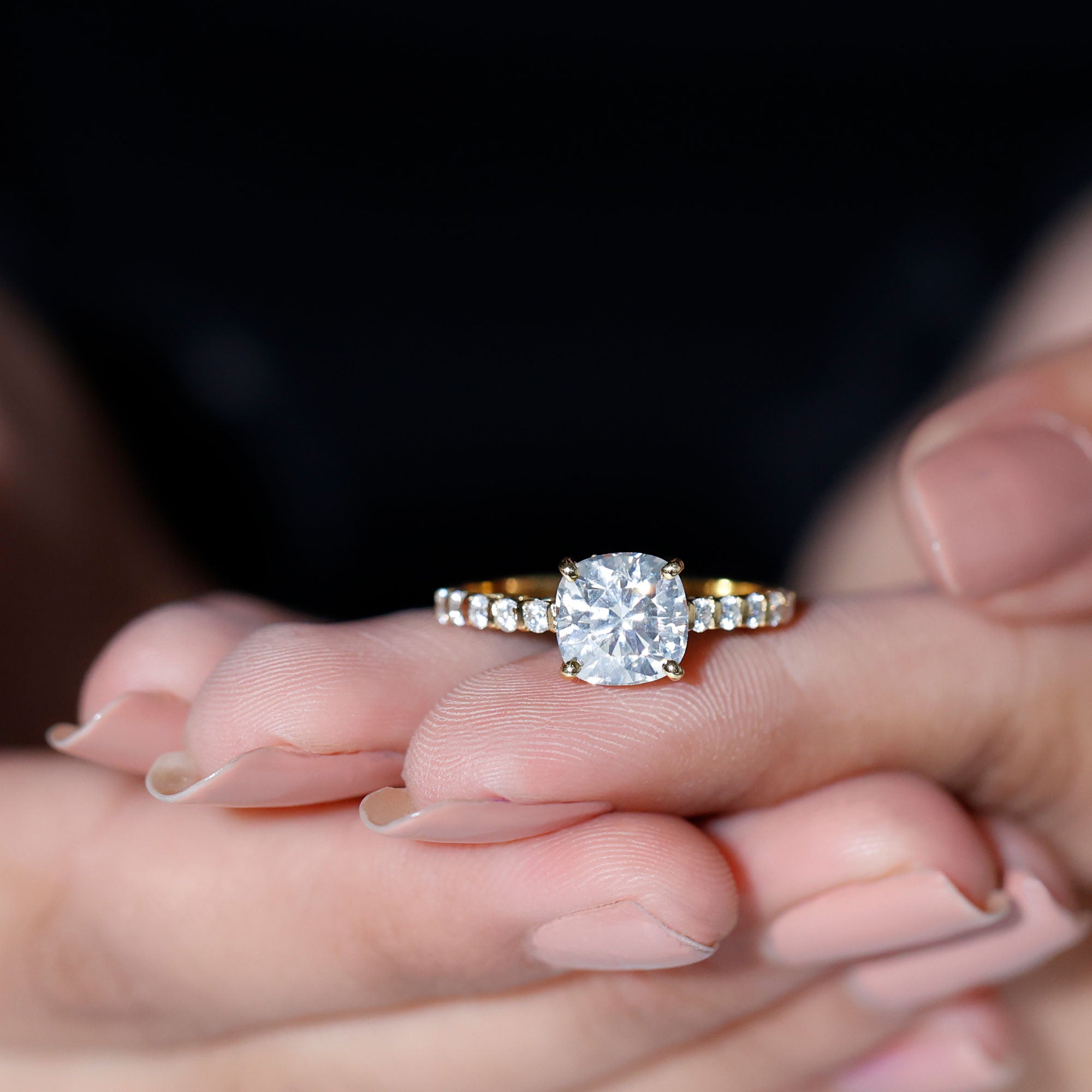 Solitaire Moissanite Cushion Cut Engagement Ring with Side Stones