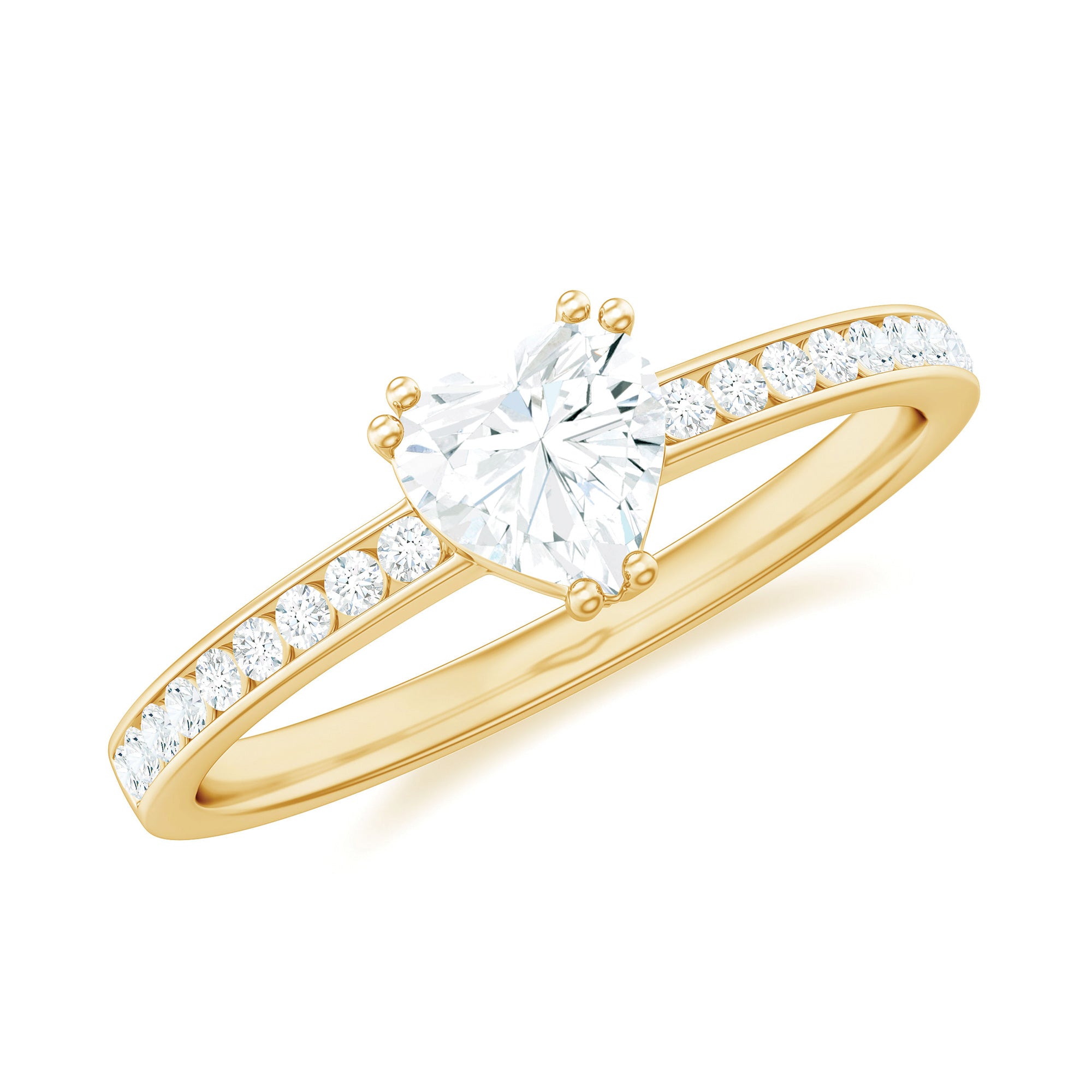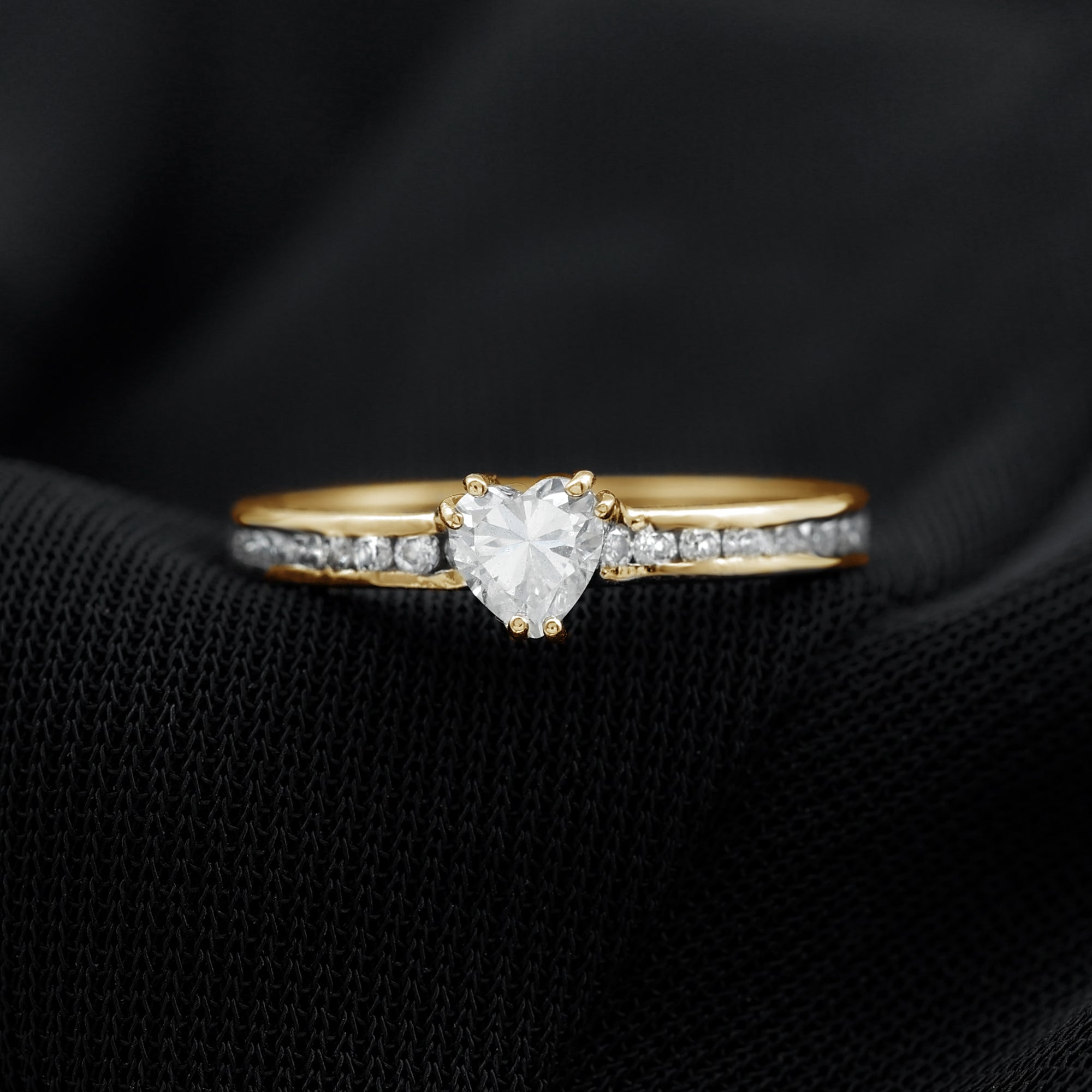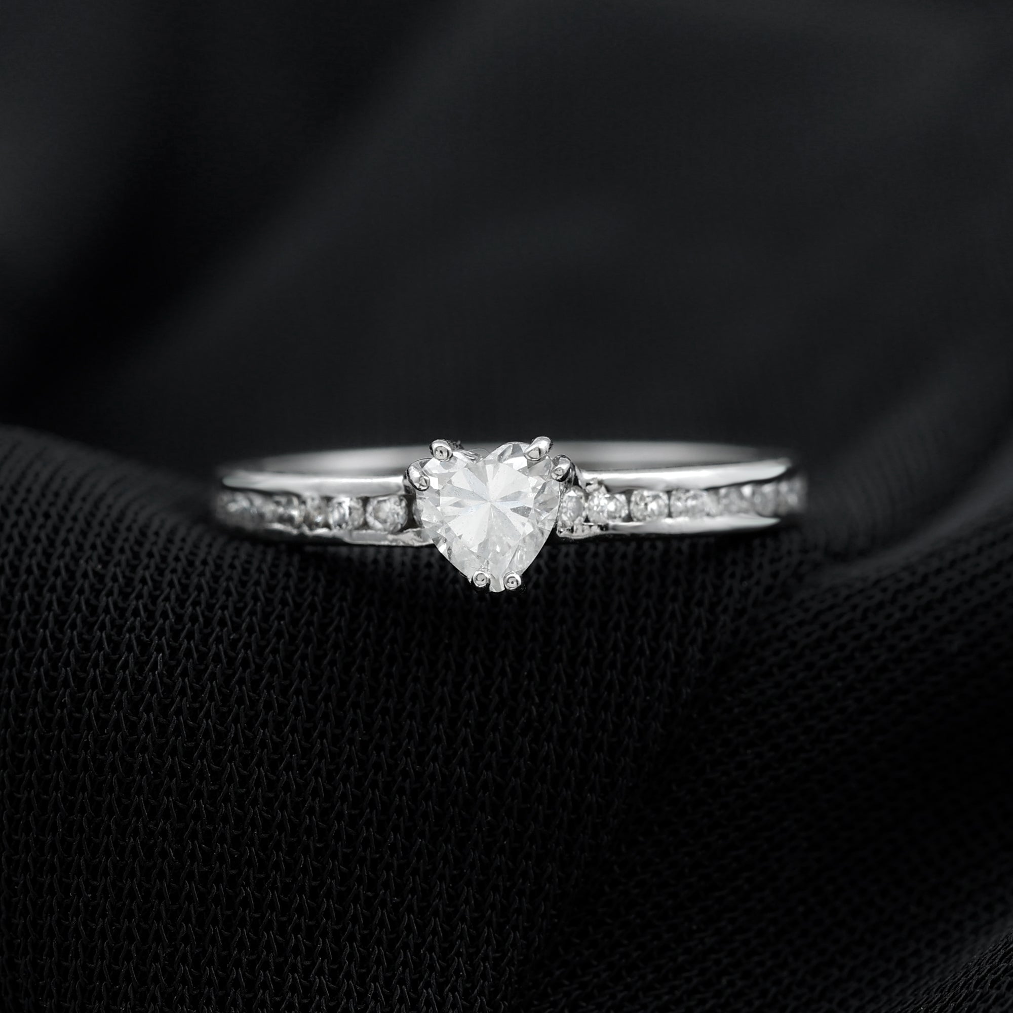 Solitaire Moissanite Heart Promise Ring with Side Stones