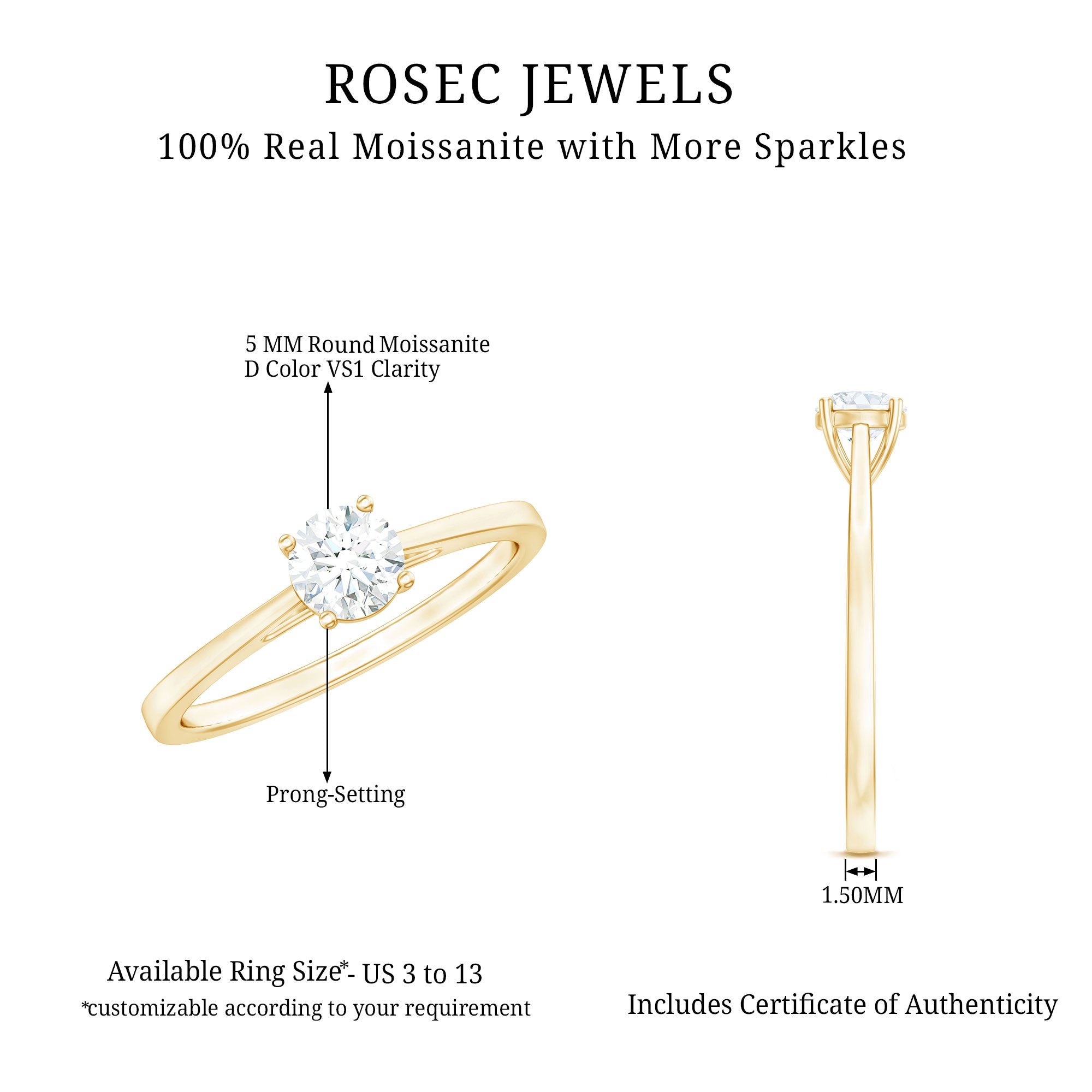 Make the Promise of love forever with this Moissanite Solitaire Ring that exudes elegance and beauty. This promise ring features a 5 MM Round Shape Moissanite placed at the center securely placed in Prong Setting. The ring is beautified with the High Set Profile elevating the stone which gives a unique look to the ring and enhances its brilliance. This Cathedral Setting Ring reflects the stunning shine of D-VS1 Quality Moissanite embedded in the ring. Make your lady love feel special with this Moissanite Promise Ring depicting unbreakable bond.