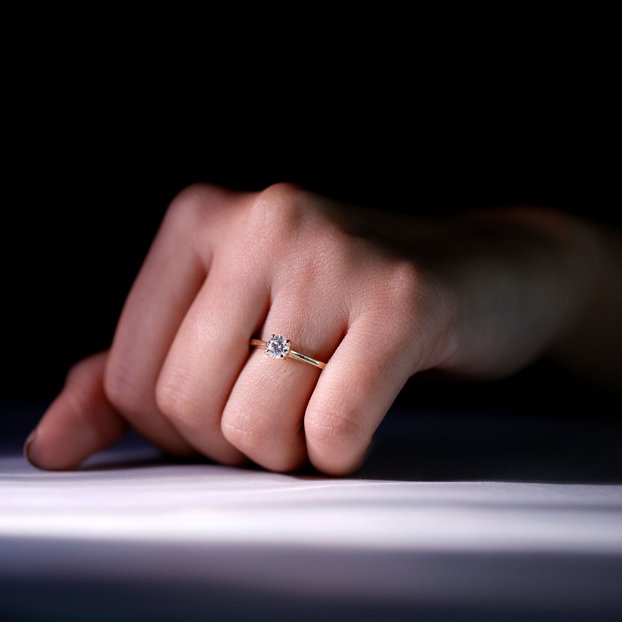 Solitaire Moissanite Promise Ring in Cathedral Shank