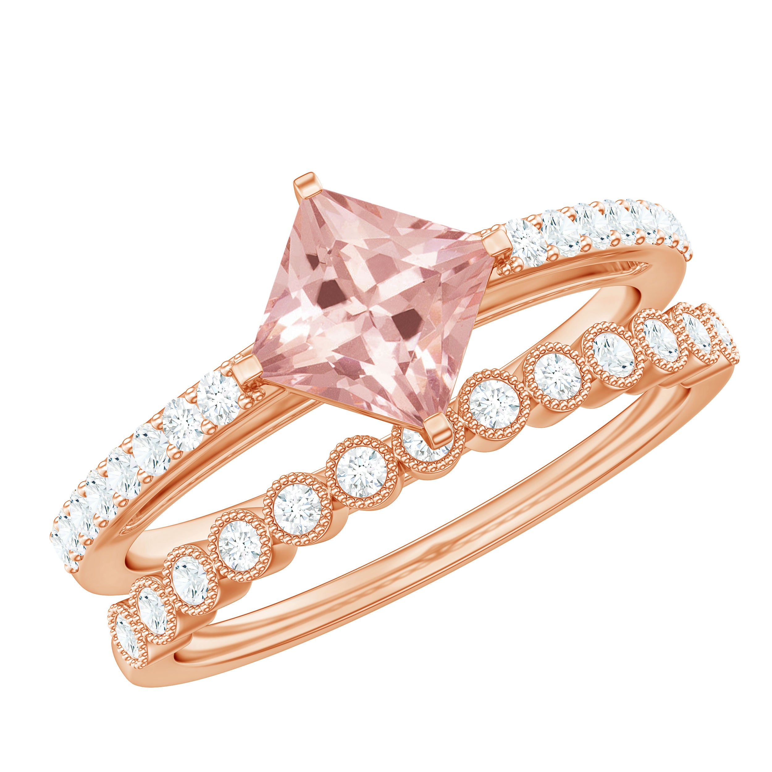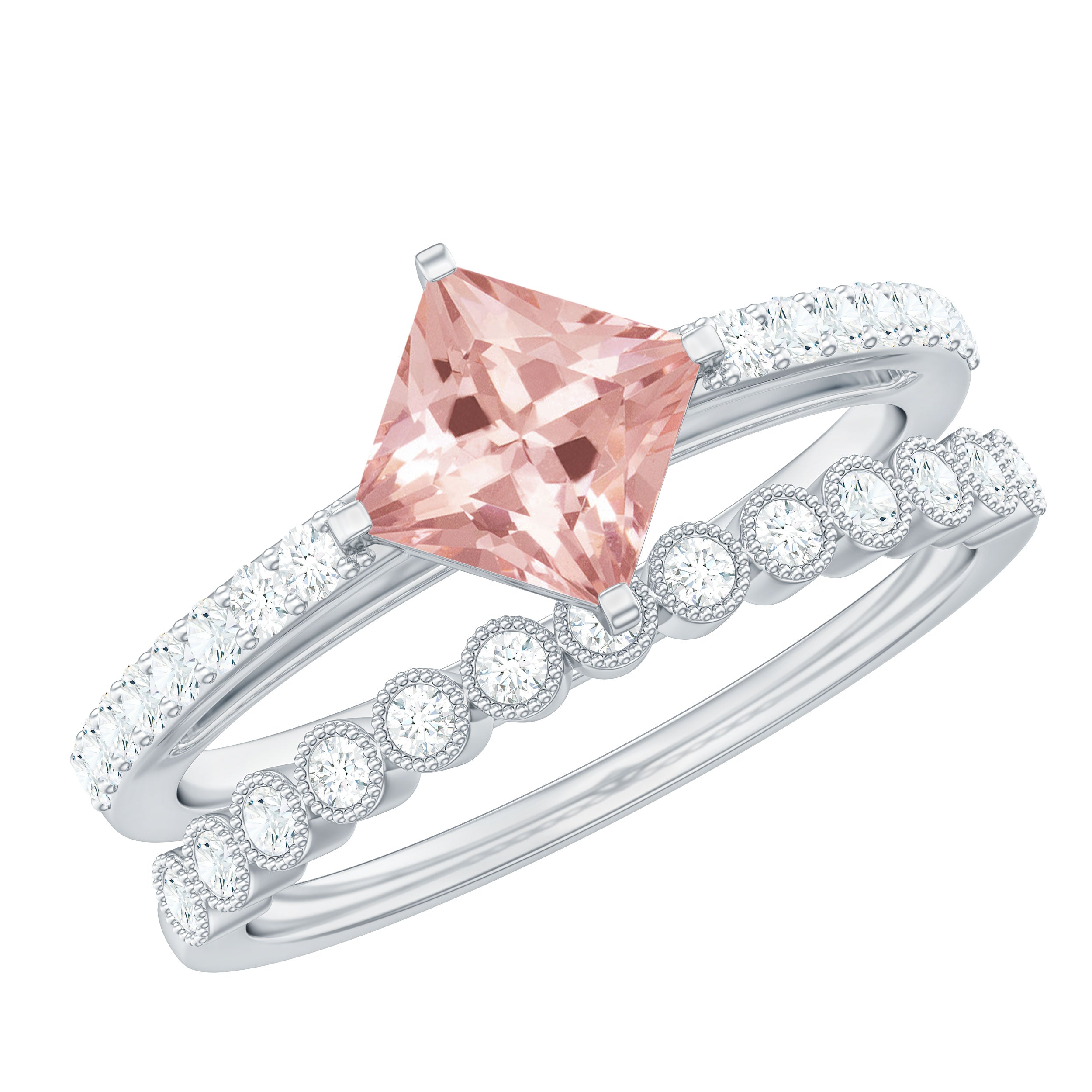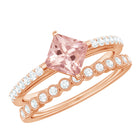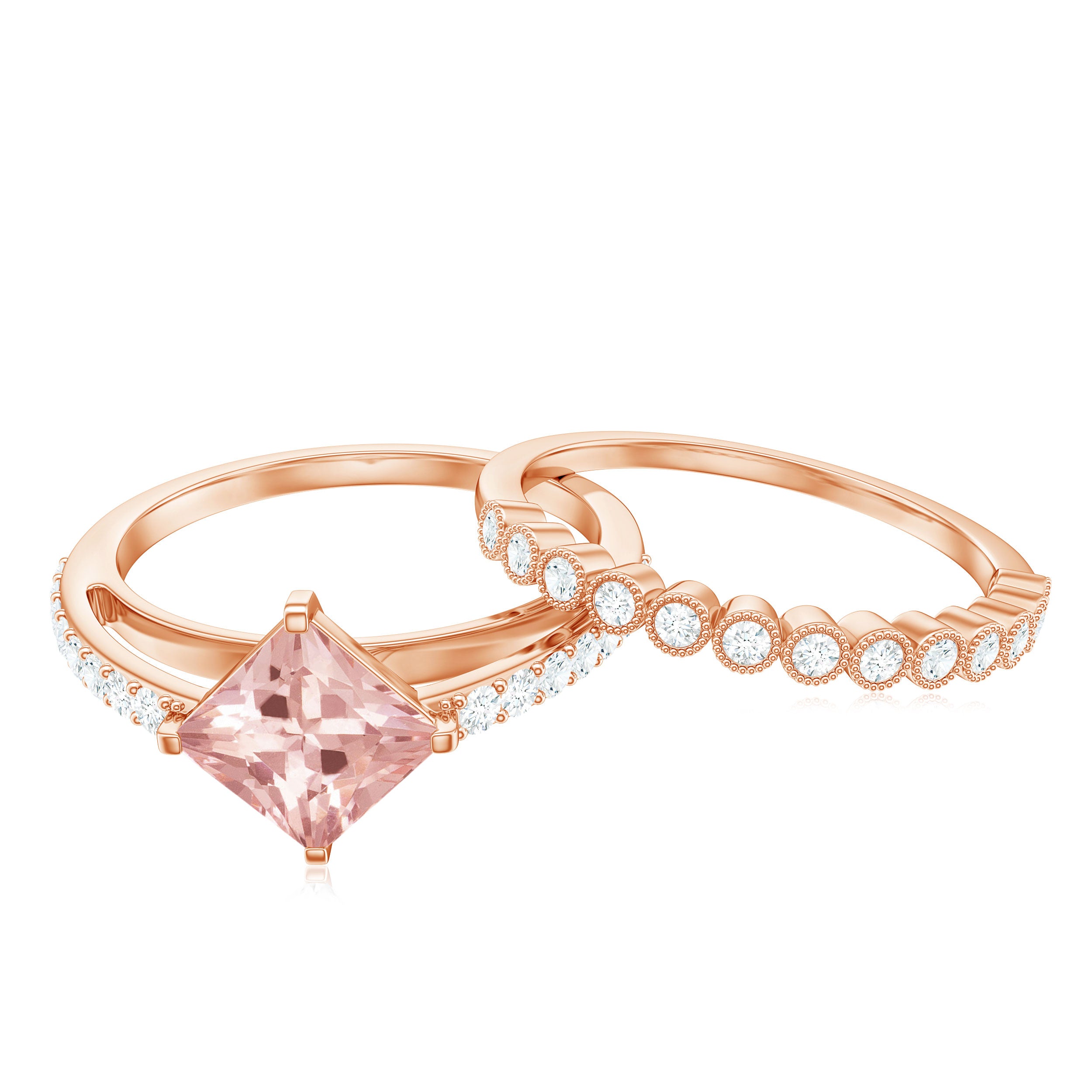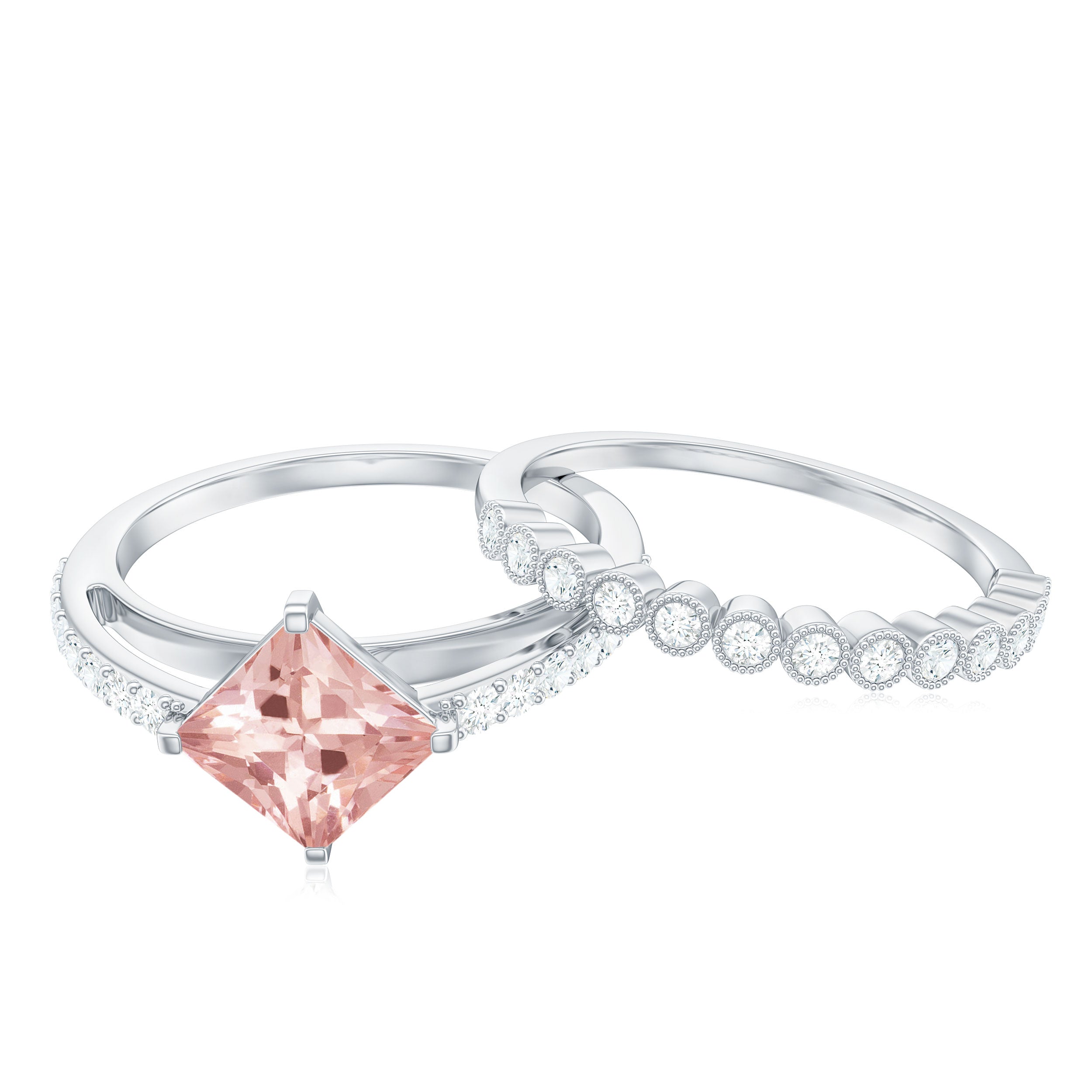 Flaunt our Solitaire Ring Set with your favorite attire to be in the spotlight of any event. Embellished with Princess Cut Morganite while more Round Diamond studded on the shank. The Unique Ring Set is crafted in Solid Metal for a luxe appeal and will complement your attires effortlessly. Wear our Morganite Ring Set to create a gorgeous look.