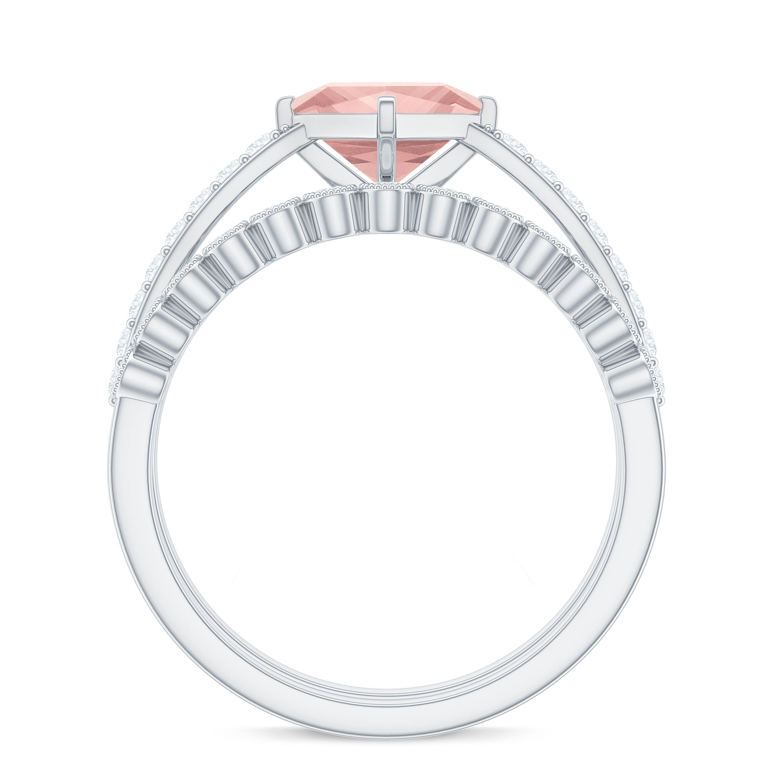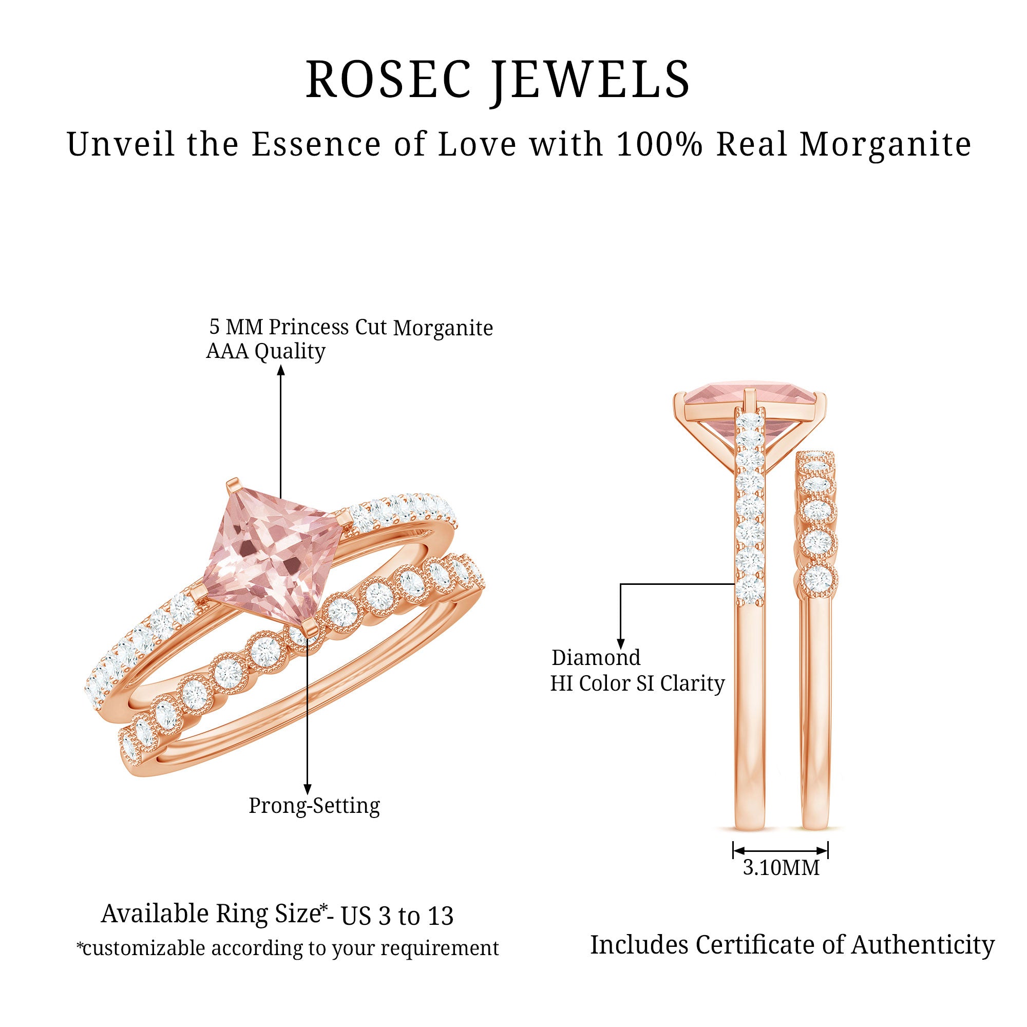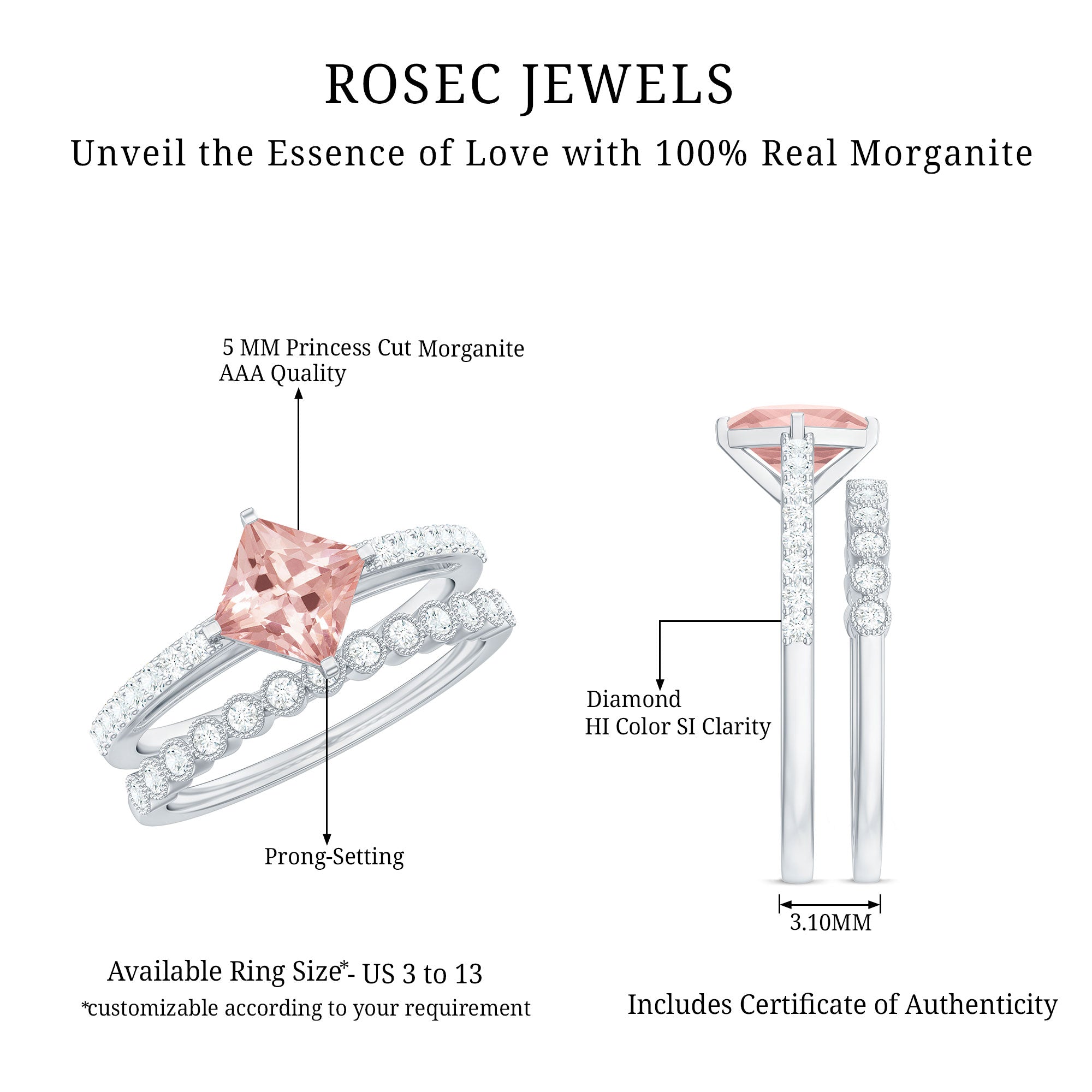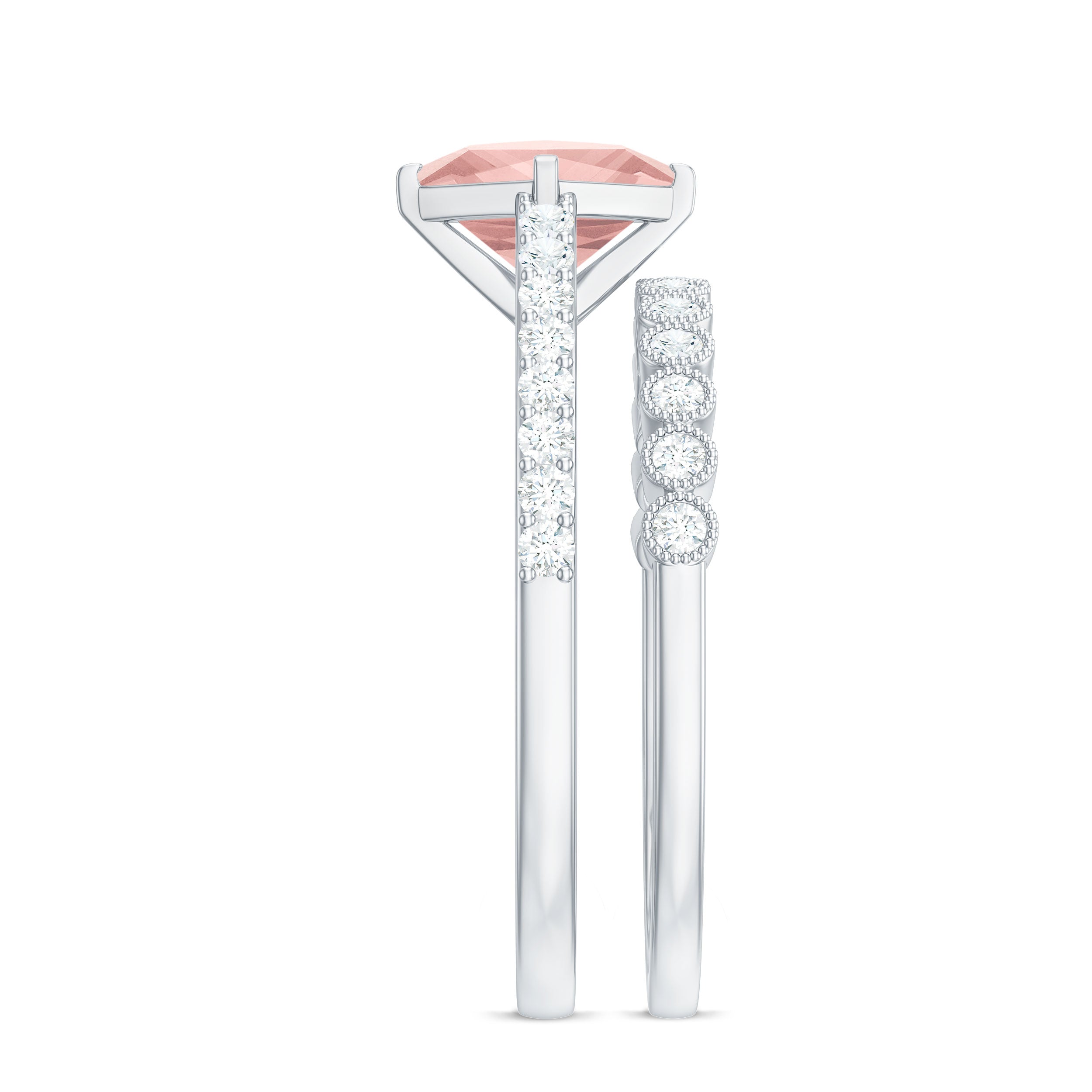 Flaunt our Solitaire Ring Set with your favorite attire to be in the spotlight of any event. Embellished with Princess Cut Morganite while more Round Diamond studded on the shank. The Unique Ring Set is crafted in Solid Metal for a luxe appeal and will complement your attires effortlessly. Wear our Morganite Ring Set to create a gorgeous look.