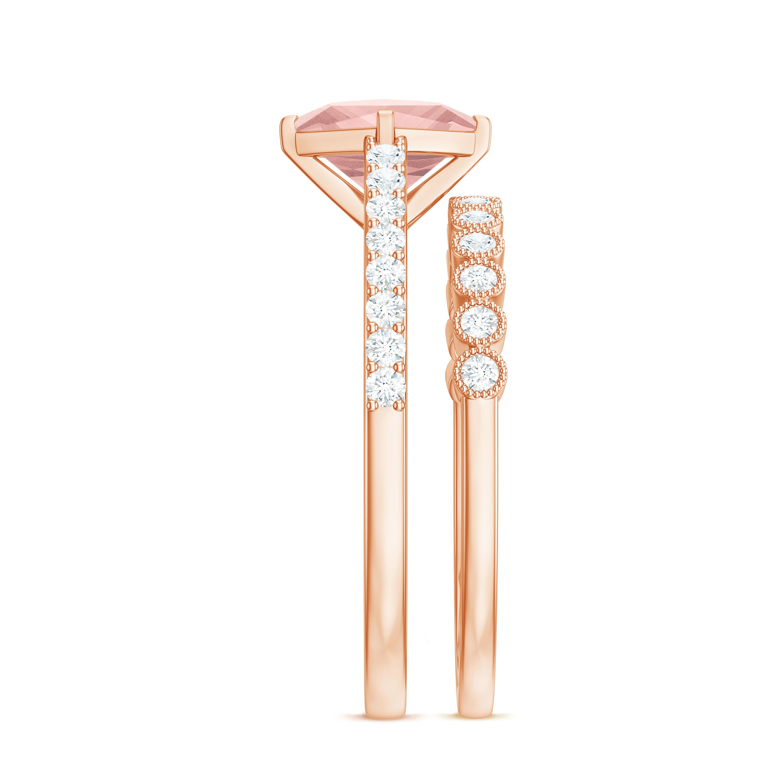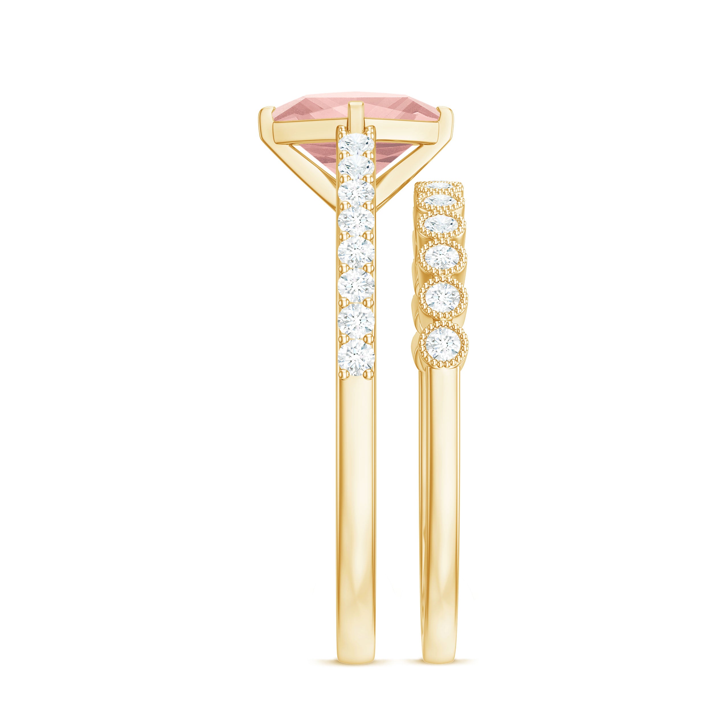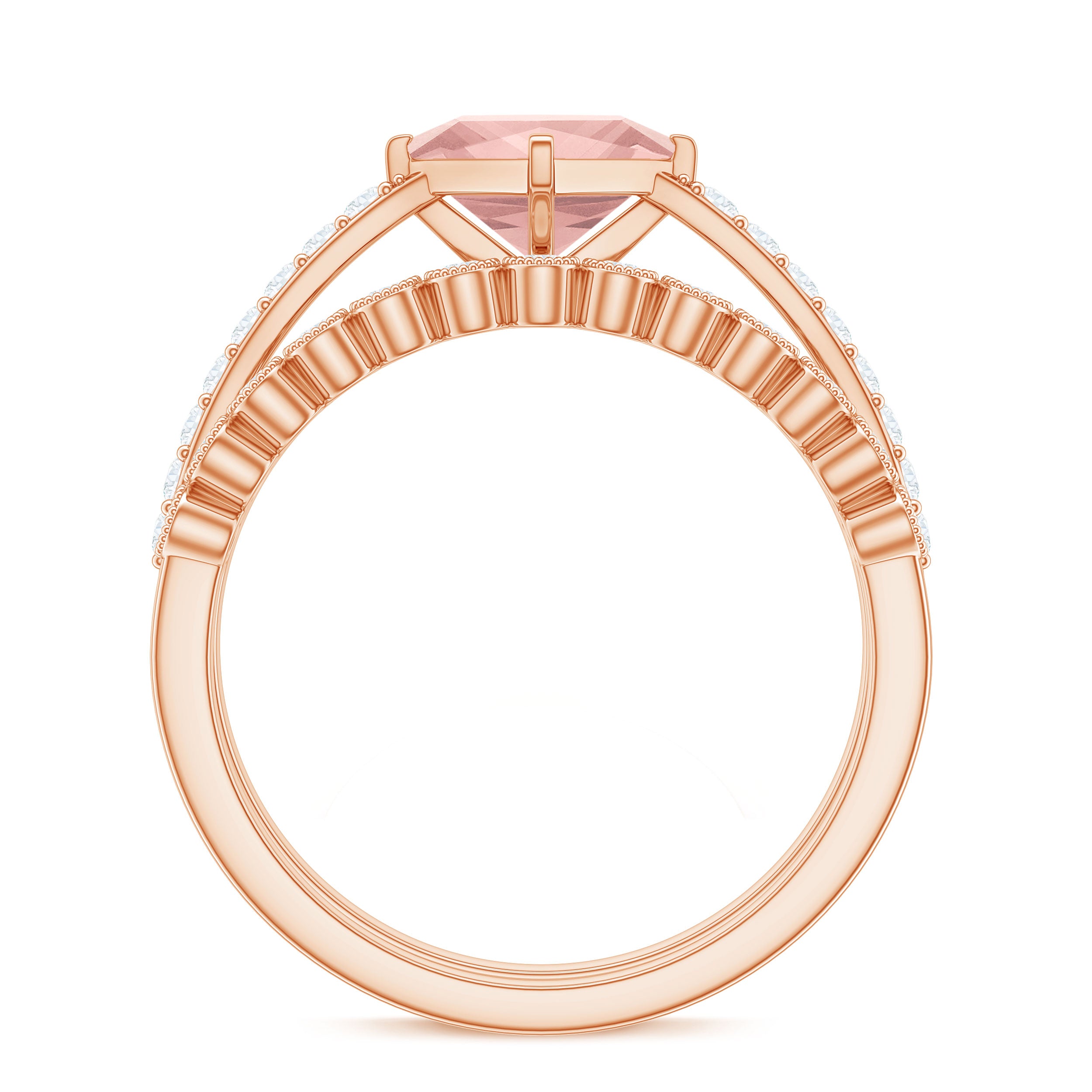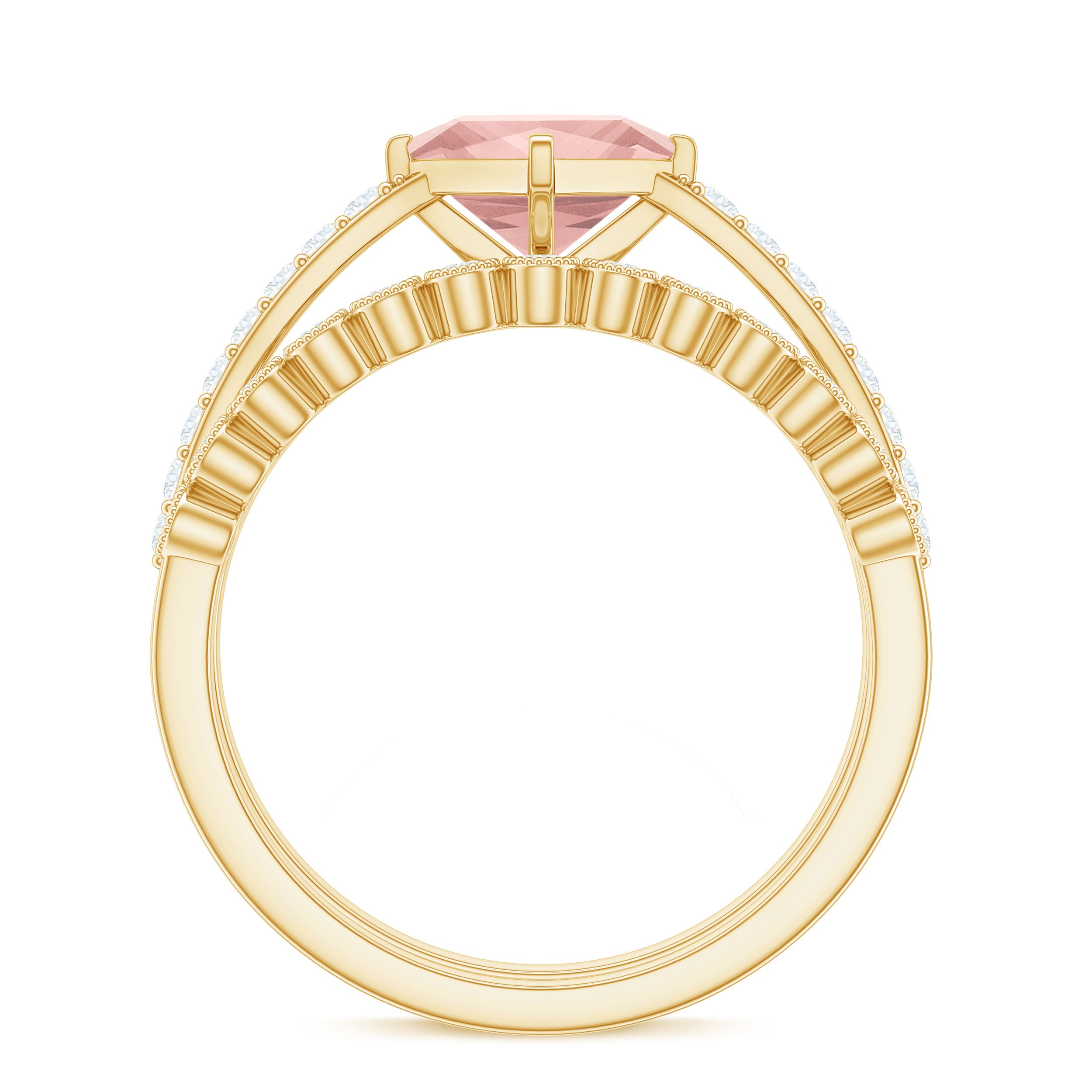 Flaunt our Solitaire Ring Set with your favorite attire to be in the spotlight of any event. Embellished with Princess Cut Morganite while more Round Diamond studded on the shank. The Unique Ring Set is crafted in Solid Metal for a luxe appeal and will complement your attires effortlessly. Wear our Morganite Ring Set to create a gorgeous look.