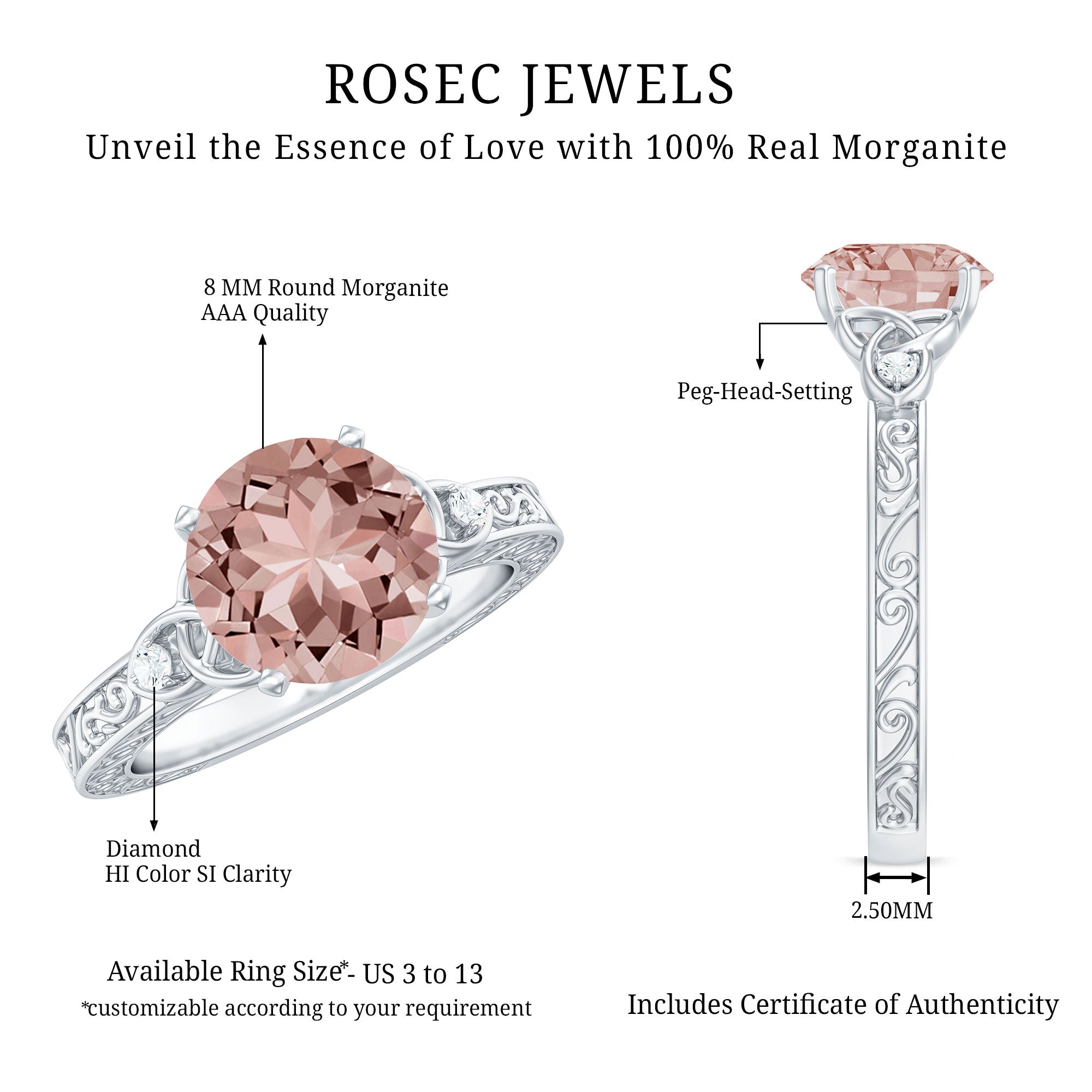 Solitaire Morganite Celtic Knot Ring with Diamond