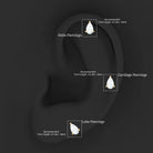 - You can wear this pear shape diamond earring including Helix, Tragus, Conch, Cartilage, or Upper Lobe Piercing. The Flat Back Closure will keep it secured in place.