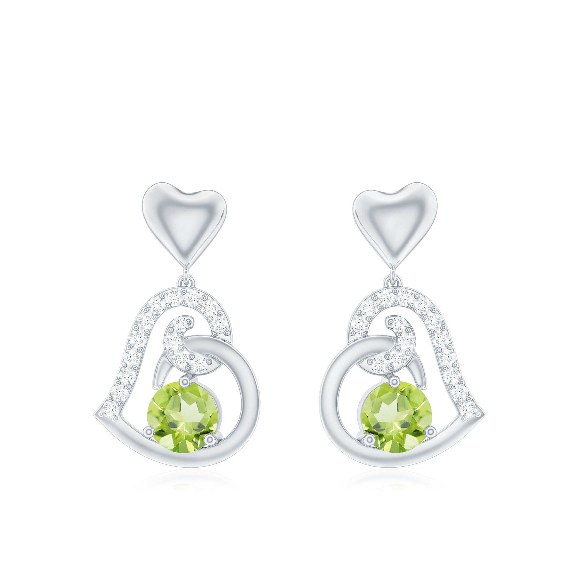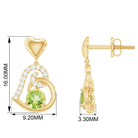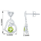 Solitaire Peridot Heart Drop Earrings with Diamond Accent