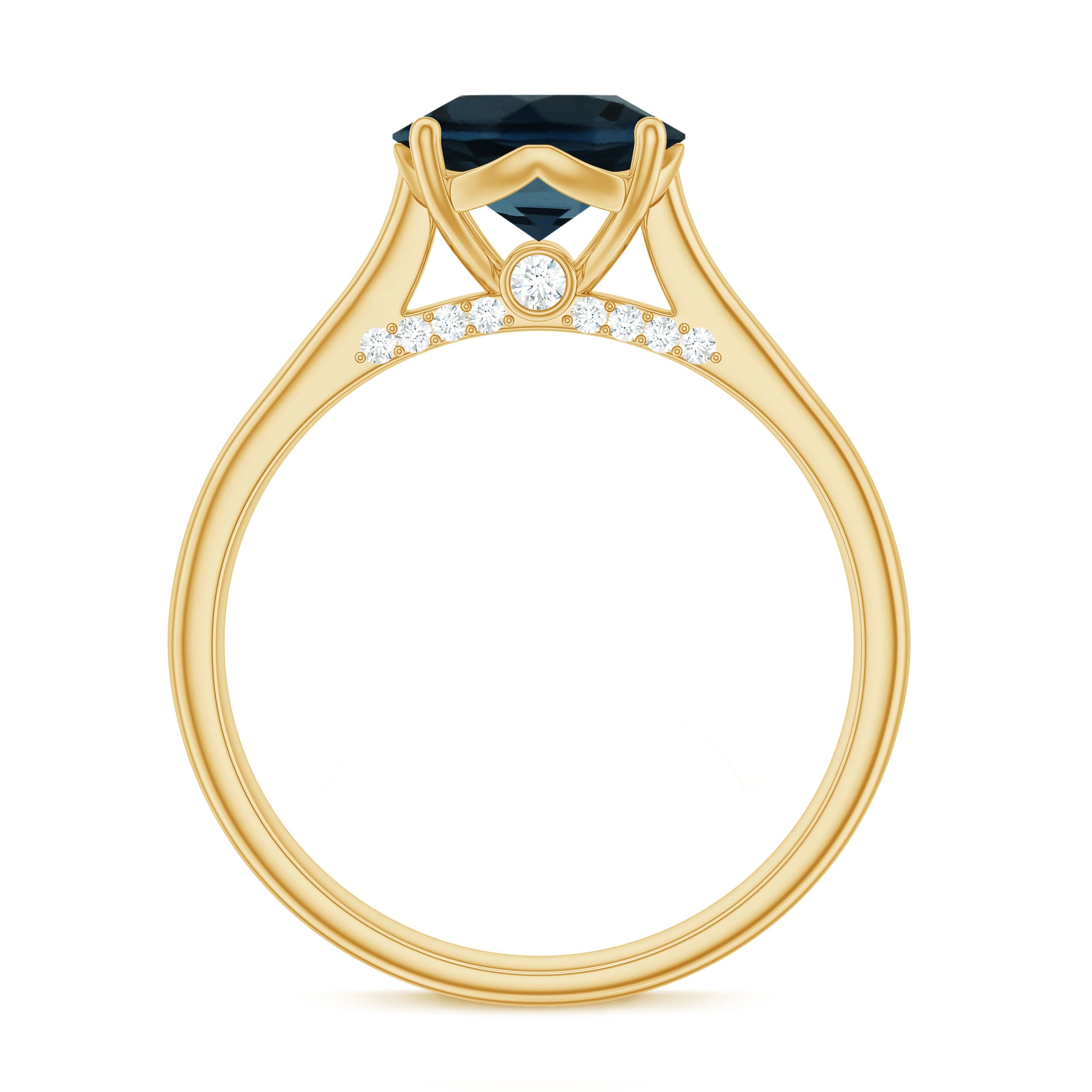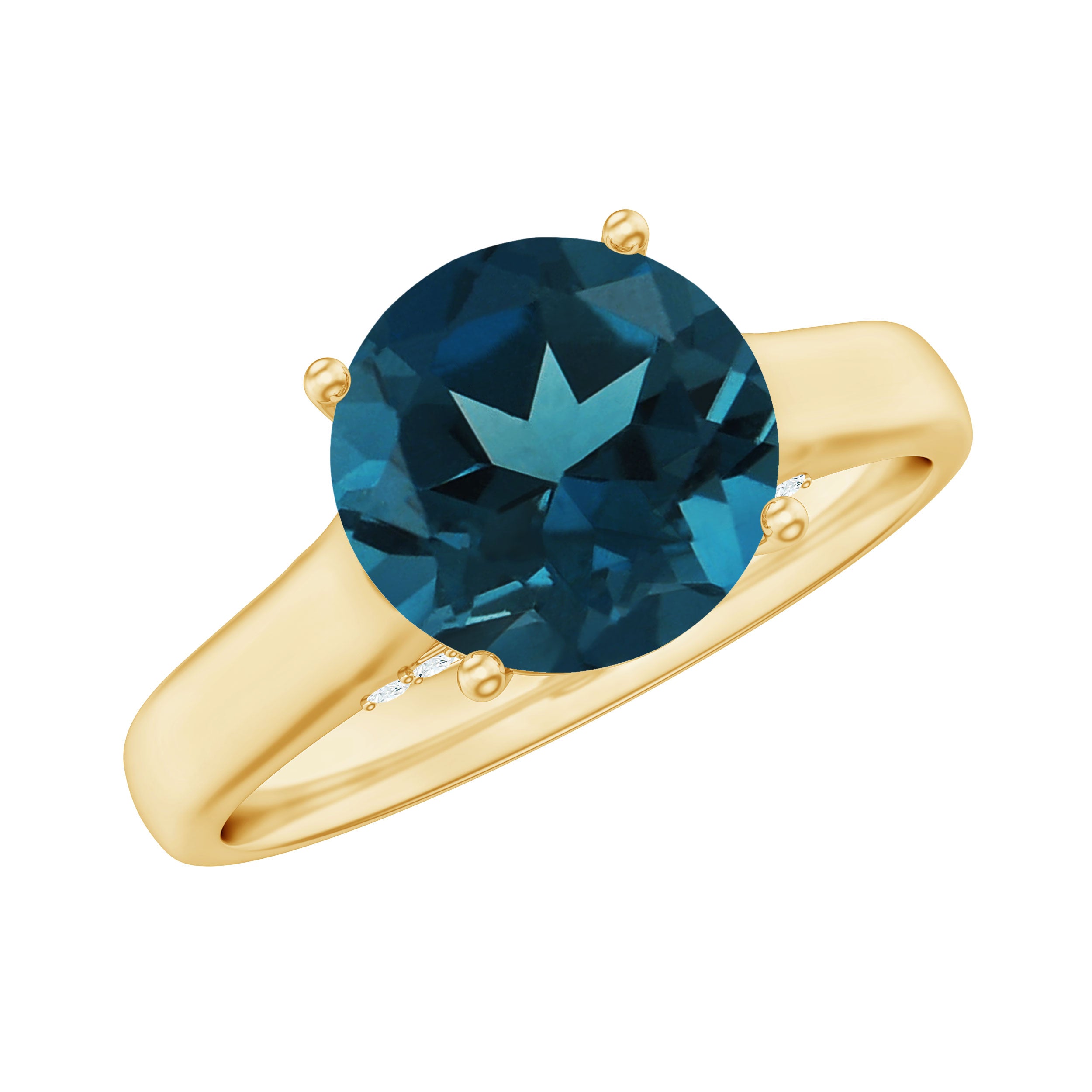 Make your moment extra special with this beautiful London Blue Topaz Engagement Ring. It is designed with a simple and classic style that never goes out of fashion. At the center of the Solitaire Engagement Ring is an 8 MM round cut london blue topaz, set securely in prong setting. The gemstone weighs about 2 carats and is of AAA quality, making it bright, clear, and eye-catching. This Cathedral Engagement Ring is a great choice if you are looking for something meaningful. Since blue topaz is the birthstone for December, it is also a thoughtful gift for someone born in that month. The band is designed in a cathedral style, which gently lifts the center stone, giving it a graceful and elegant look. A tiny detail that makes this Round Engagement Ring even more special is a small round diamond hidden just beneath the main stone. It is a little sparkle that adds a romantic and personal touch to the design. The diamond is HI-SI quality, chosen for its clarity and shine. Whether you are proposing, marking a special day, or just want to give someone you love a meaningful gift, this London Blue Topaz and Diamond Ring is a beautiful choice. It is easy to wear every day, feels comfortable on the finger, and pairs well with other rings too.