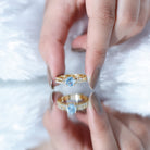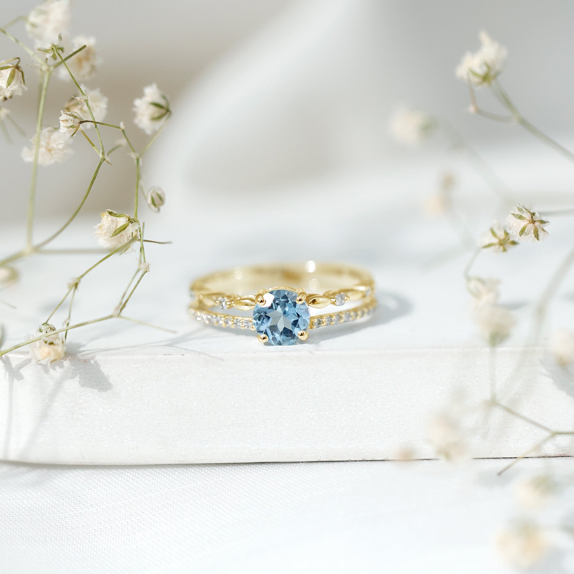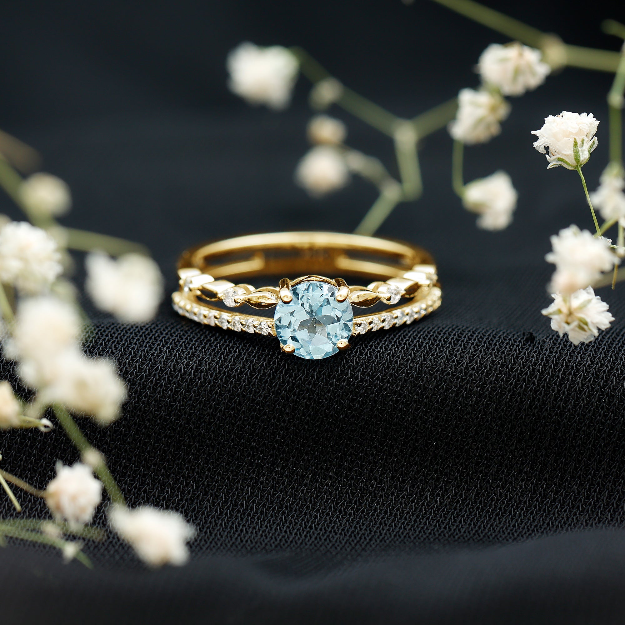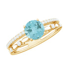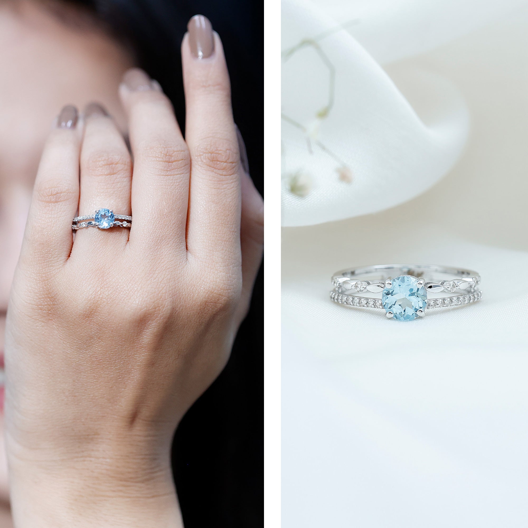 Solitaire Sky Blue Topaz Double Band Engagement Ring with Diamond
