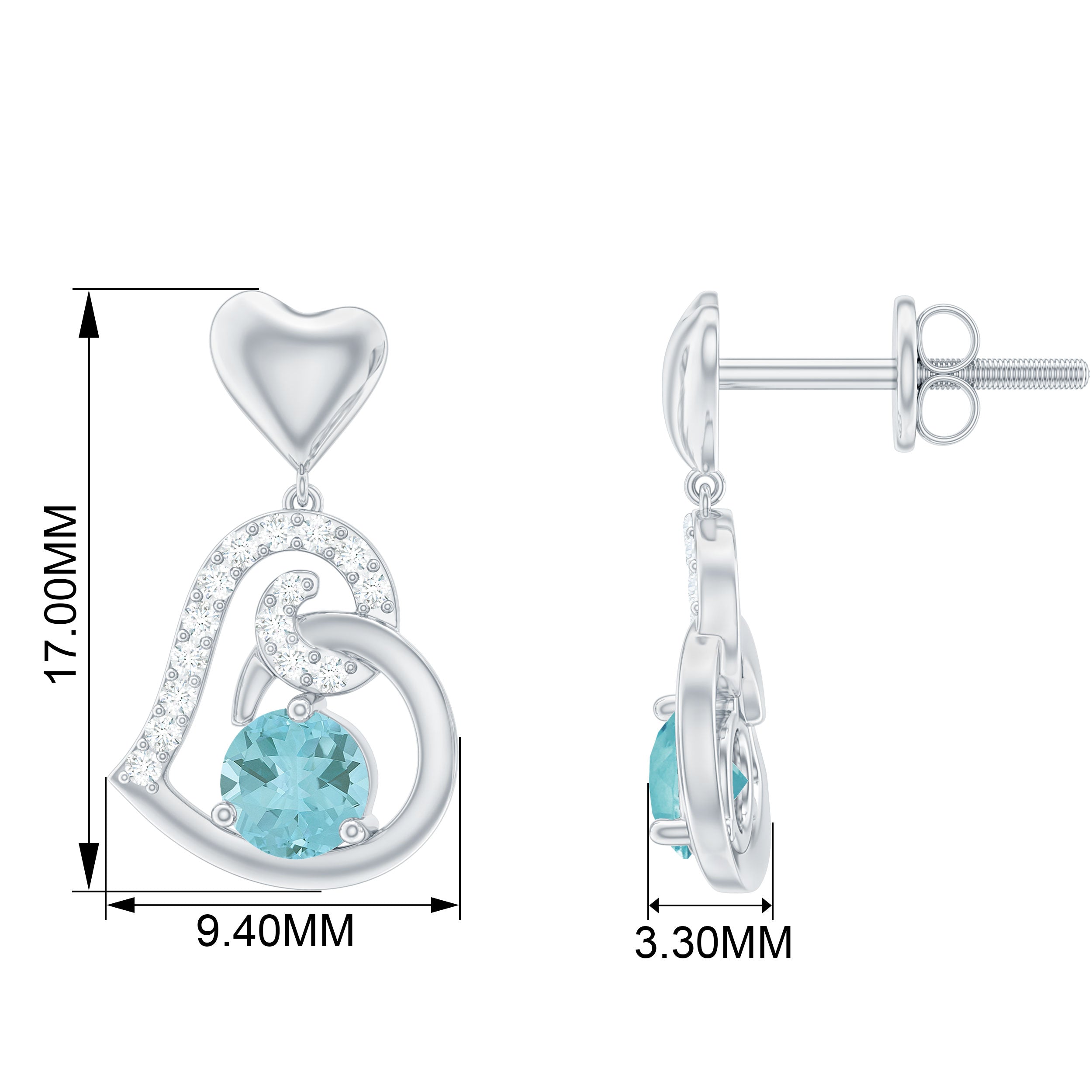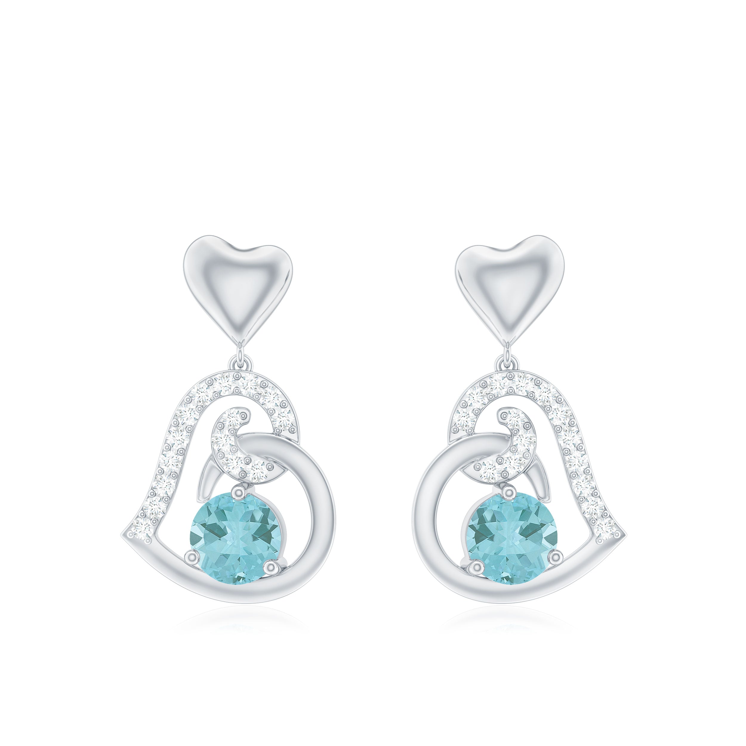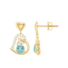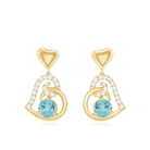 Solitaire Sky Blue Topaz Heart Drop Earrings with Diamond Accent