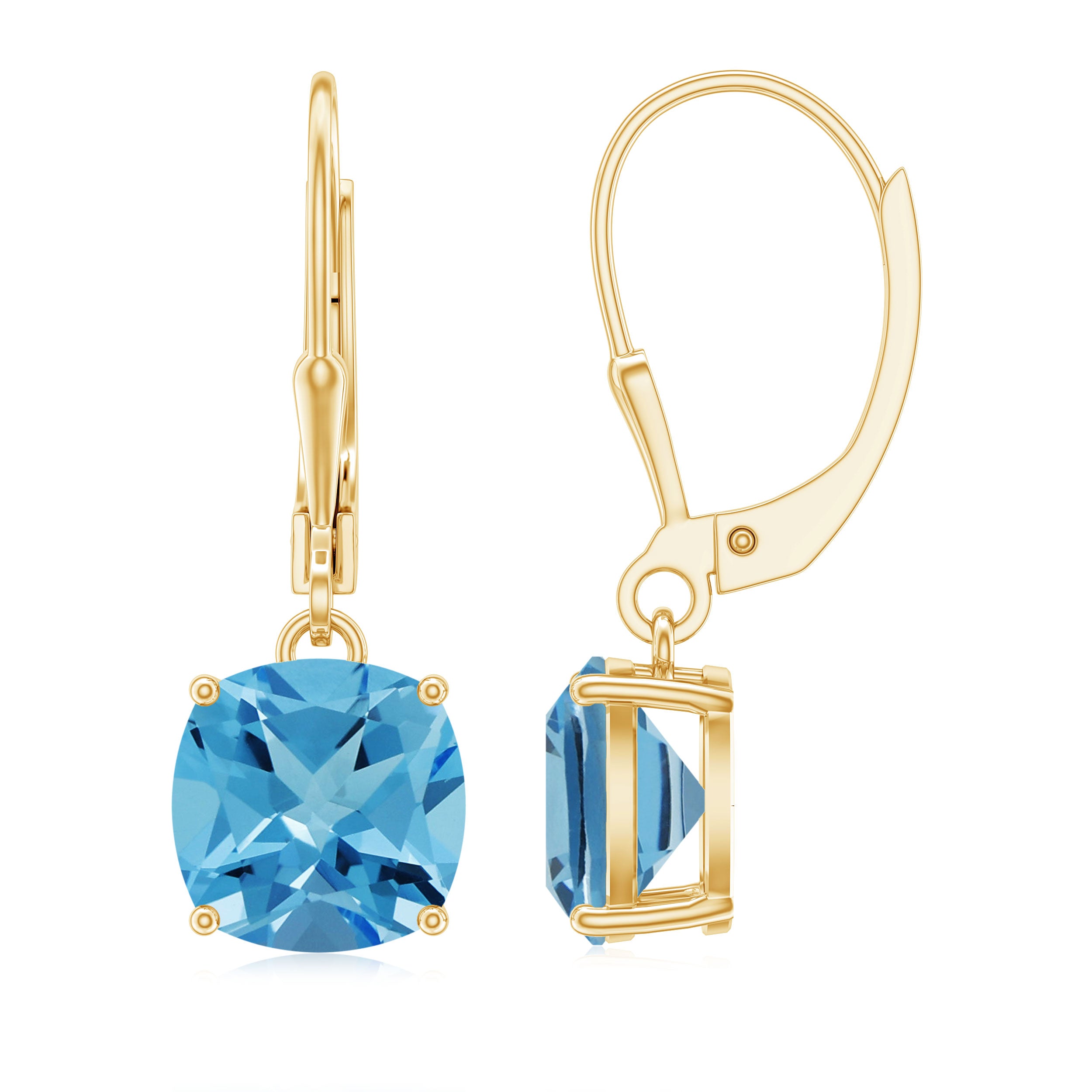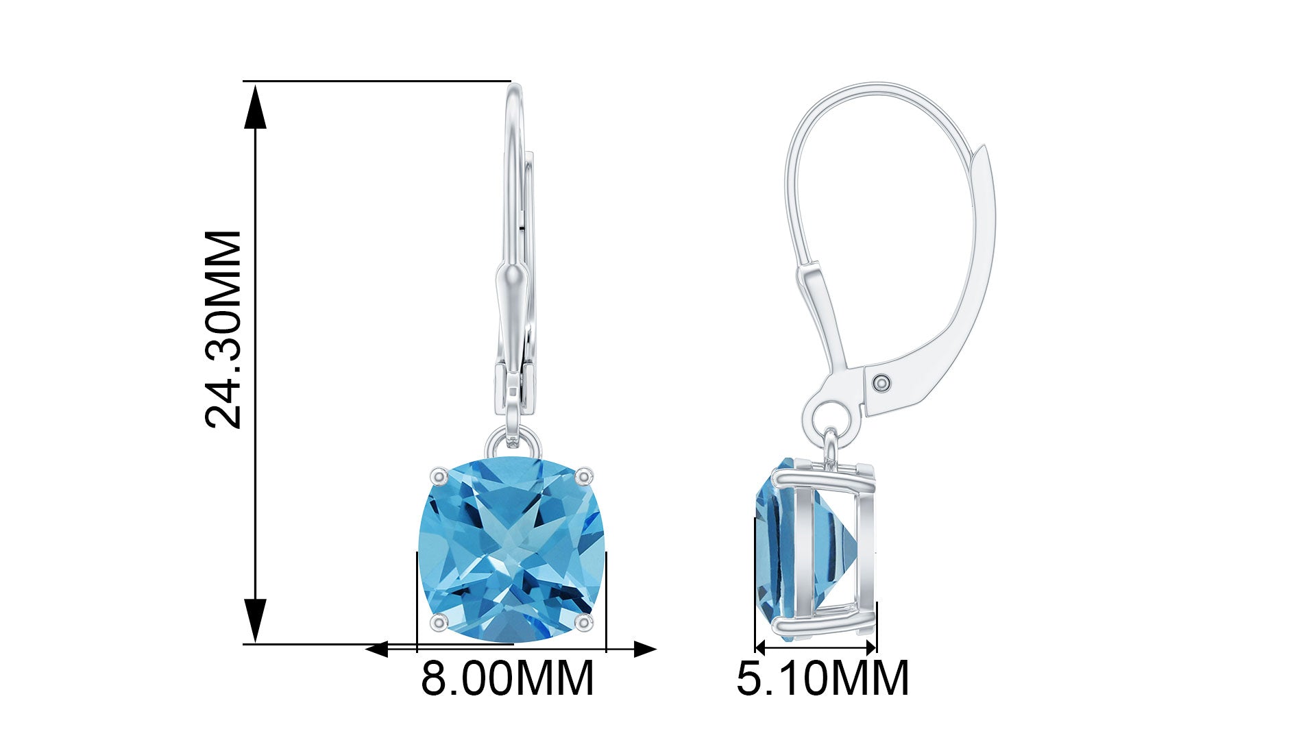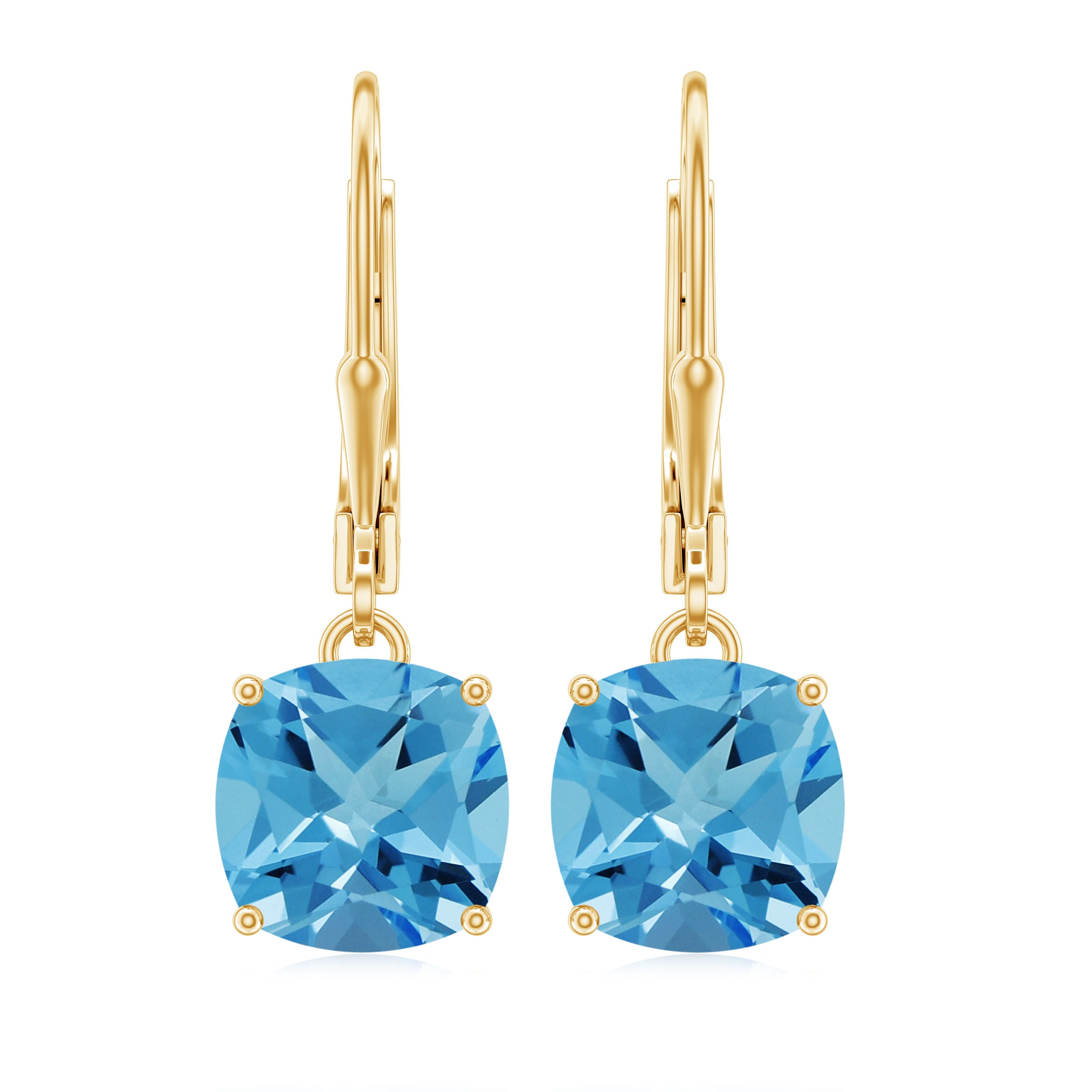 Our Lever Back Earrings will be a lovely addition to your evening looks. A pair designed to be worn for a lifetime, the Dangle Earrings are embellished with scintillating Cushion Cut Swiss Blue Topaz secured by 4 Prong Setting. The Lever Back Closure will keep your Blue Topaz Earrings secured in their place. Get these mesmerizing Blue Topaz Earrings as an anniversary gift for her and get a precious smile on her face.