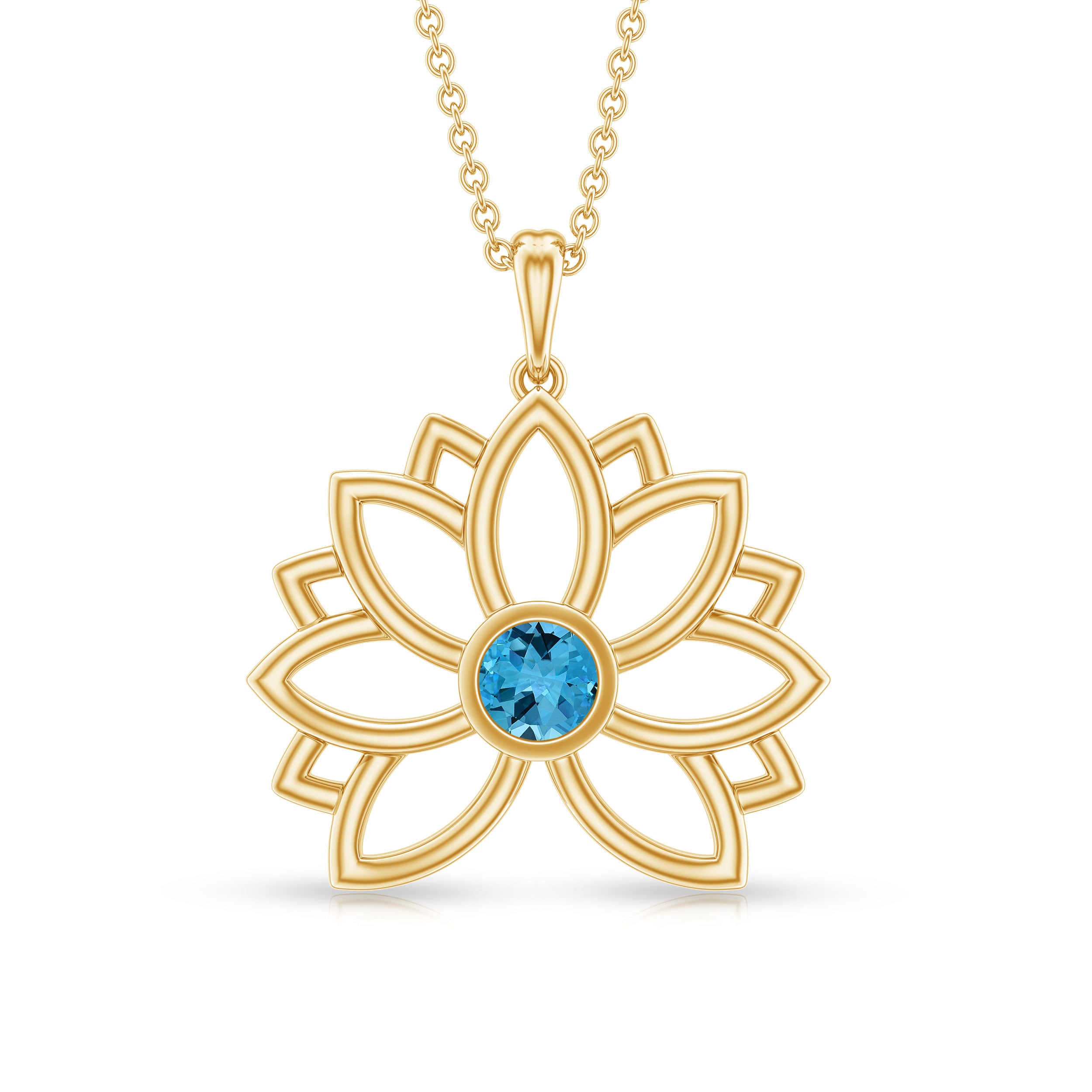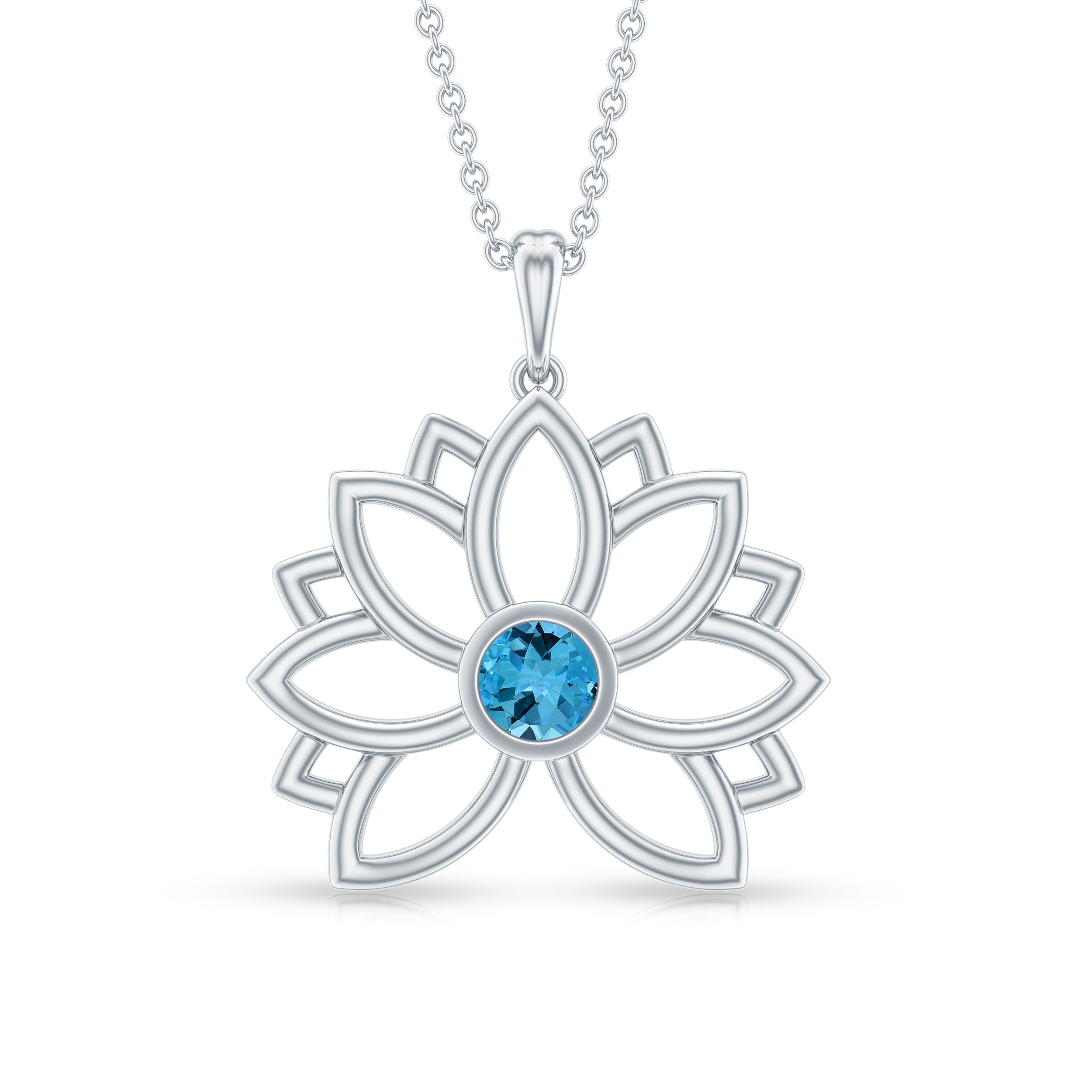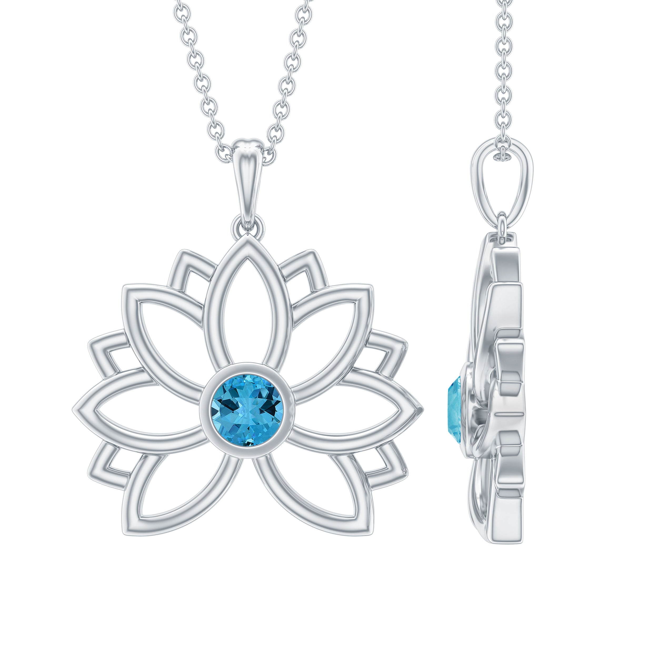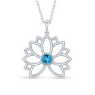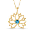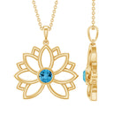 Solitaire Swiss Blue Topaz Lotus Flower Necklace For Women