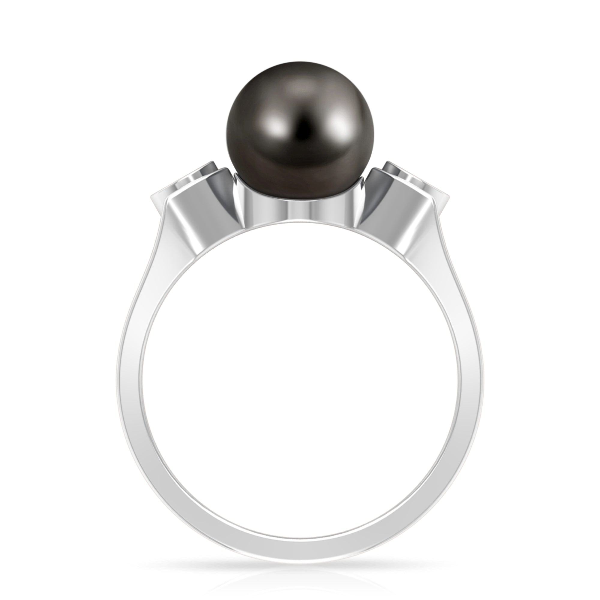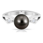 Solitaire Tahitian Pearl Contemporary Engagement Ring with Diamond