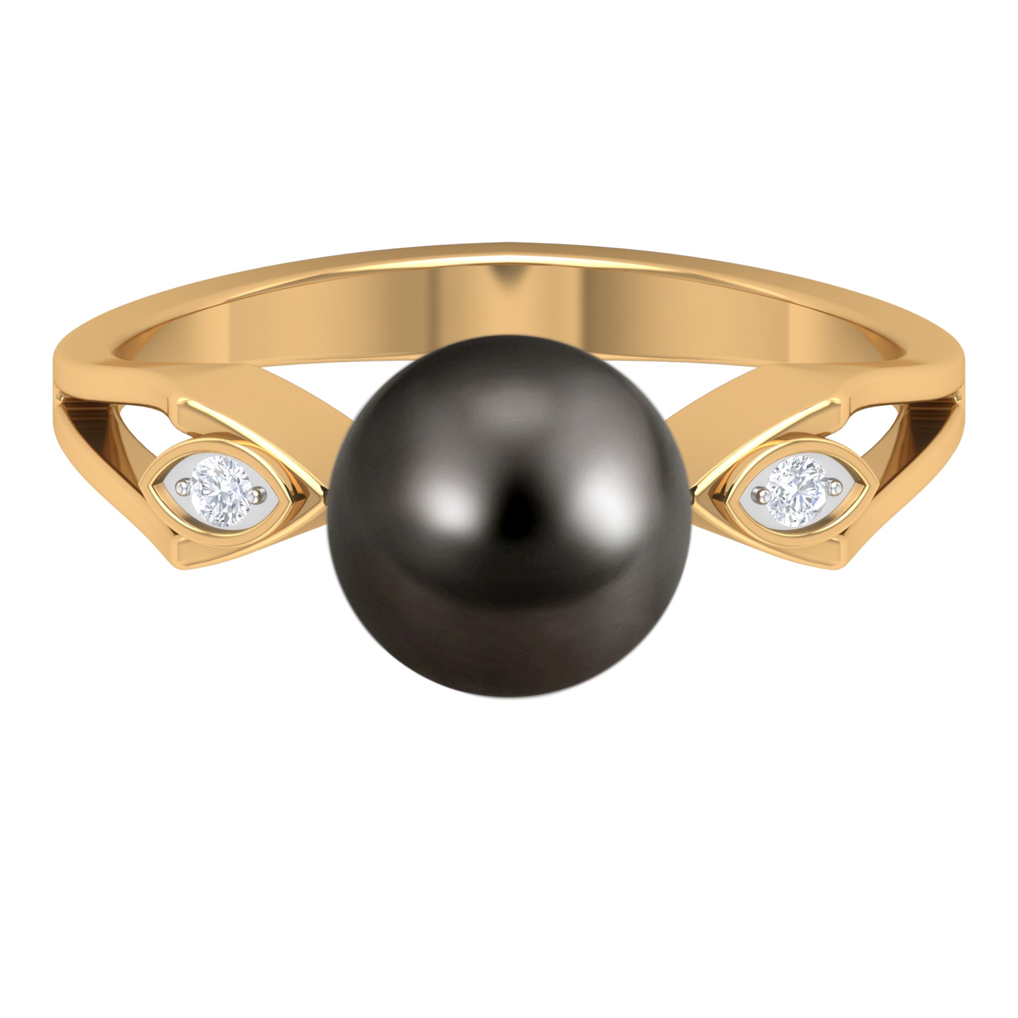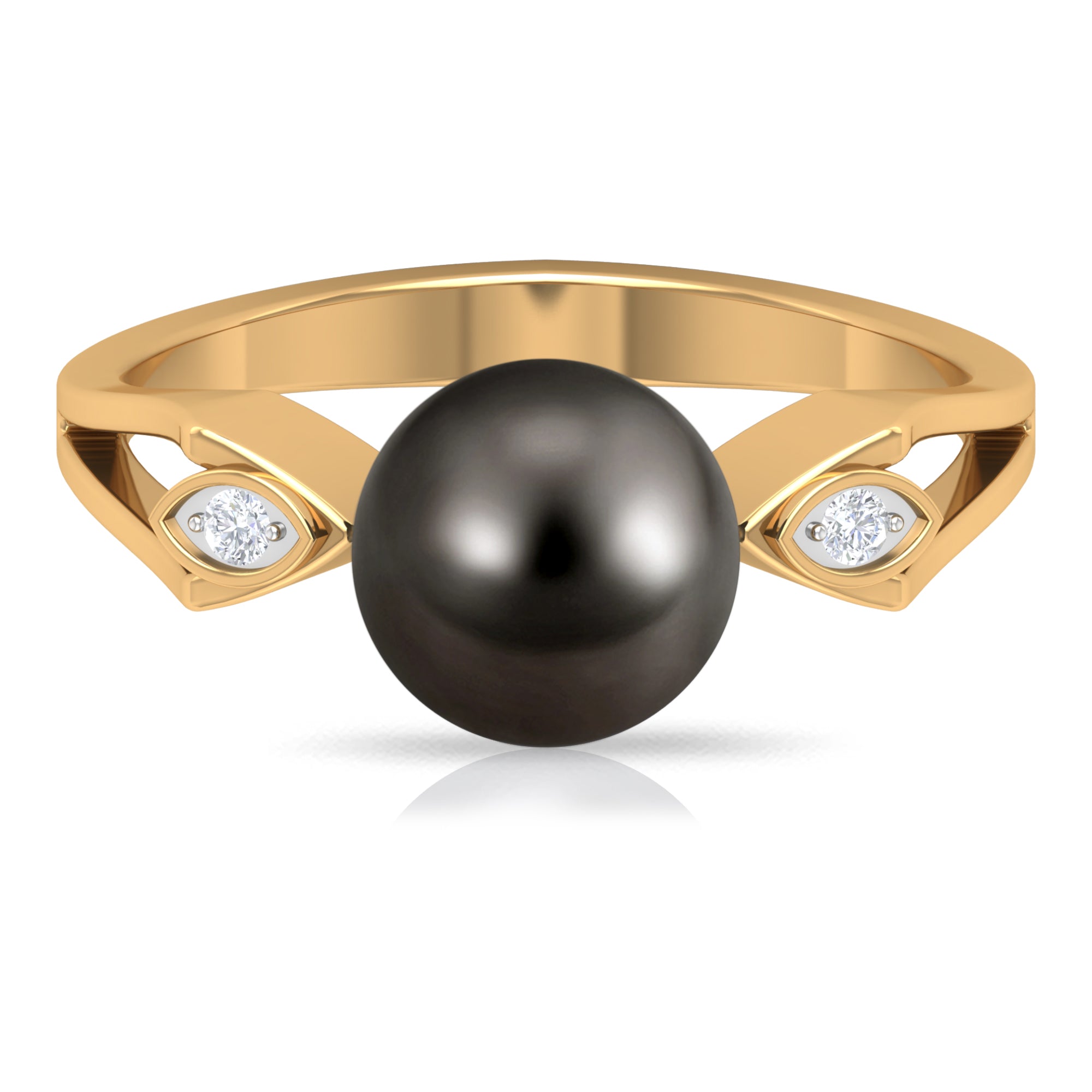 Contemporary Tahitian Pearl Engagement Ring is held in Bead Setting to give this pearl a firm look. The design of this shank is unique and creative, it is accentuated with Diamond flanked on it for a sumptuous look. This Tahitian Pearl Solitaire Ring is a perfect piece of fine jewelry for women, born in june.