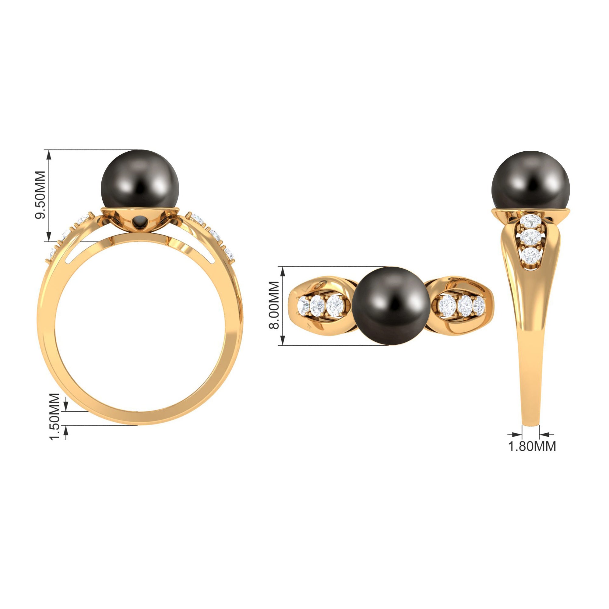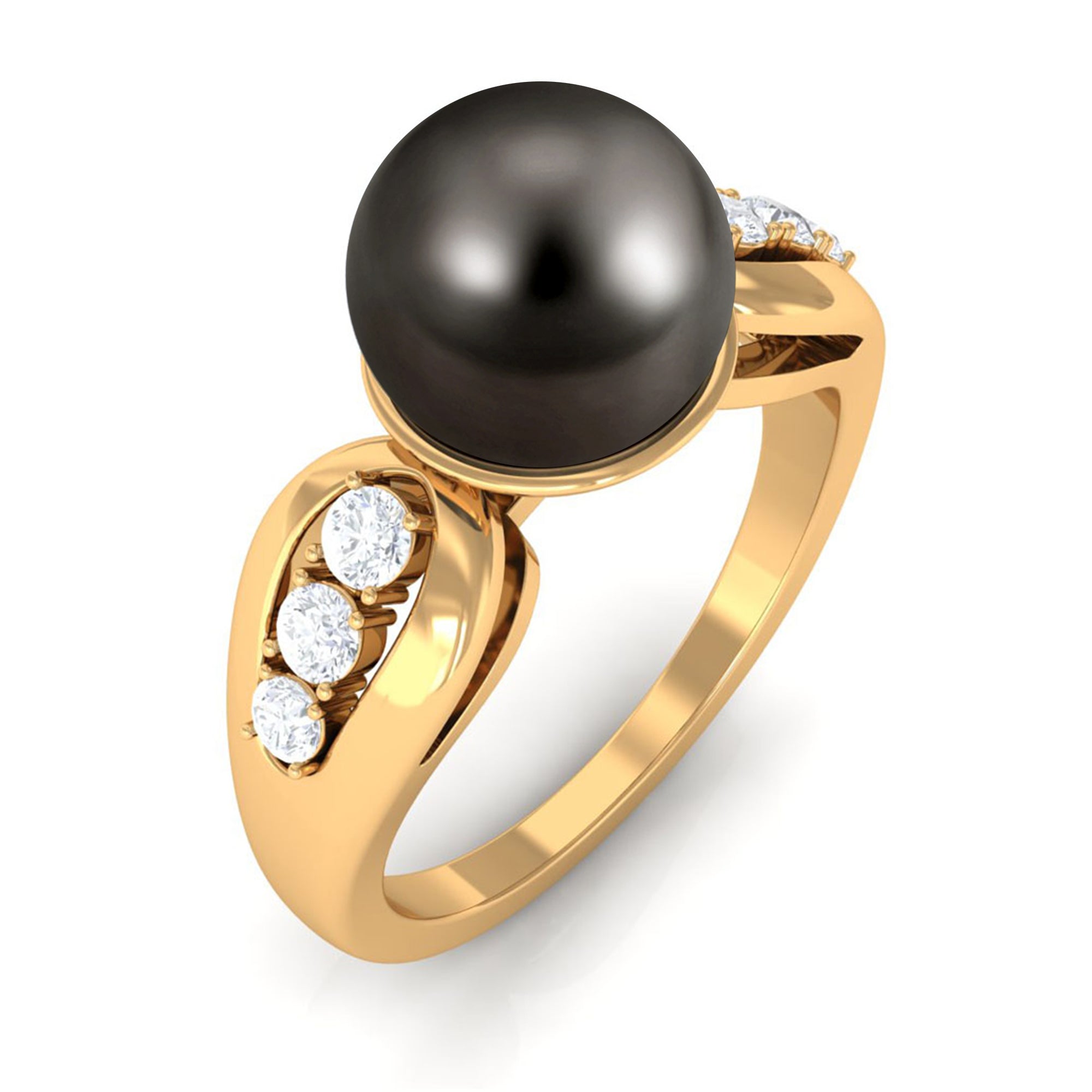 A classic piece with timeless appeal this Pearl Solitaire Engagement Ring is adorned with the brilliant Round Shape Tahitian Pearl with Round Diamond set as Side Stones on the shank. This Tahitian Pearl Ring is crafted in Gold. This charming Tahitian Pearl and Diamond Ring makes for a trendy and elegant choice for your big day.