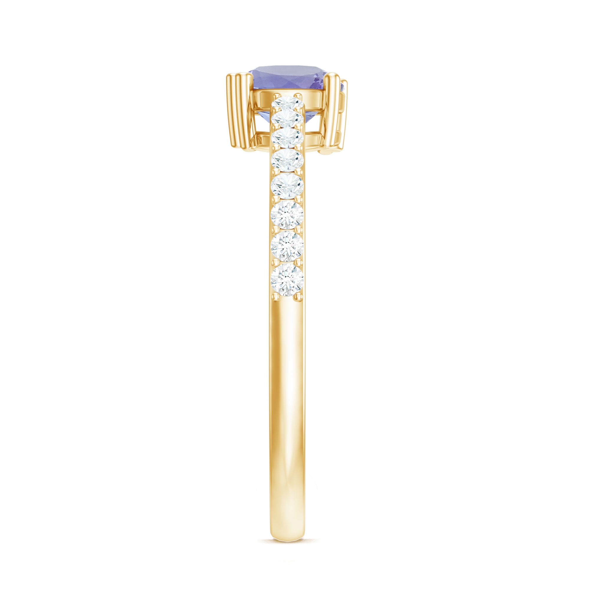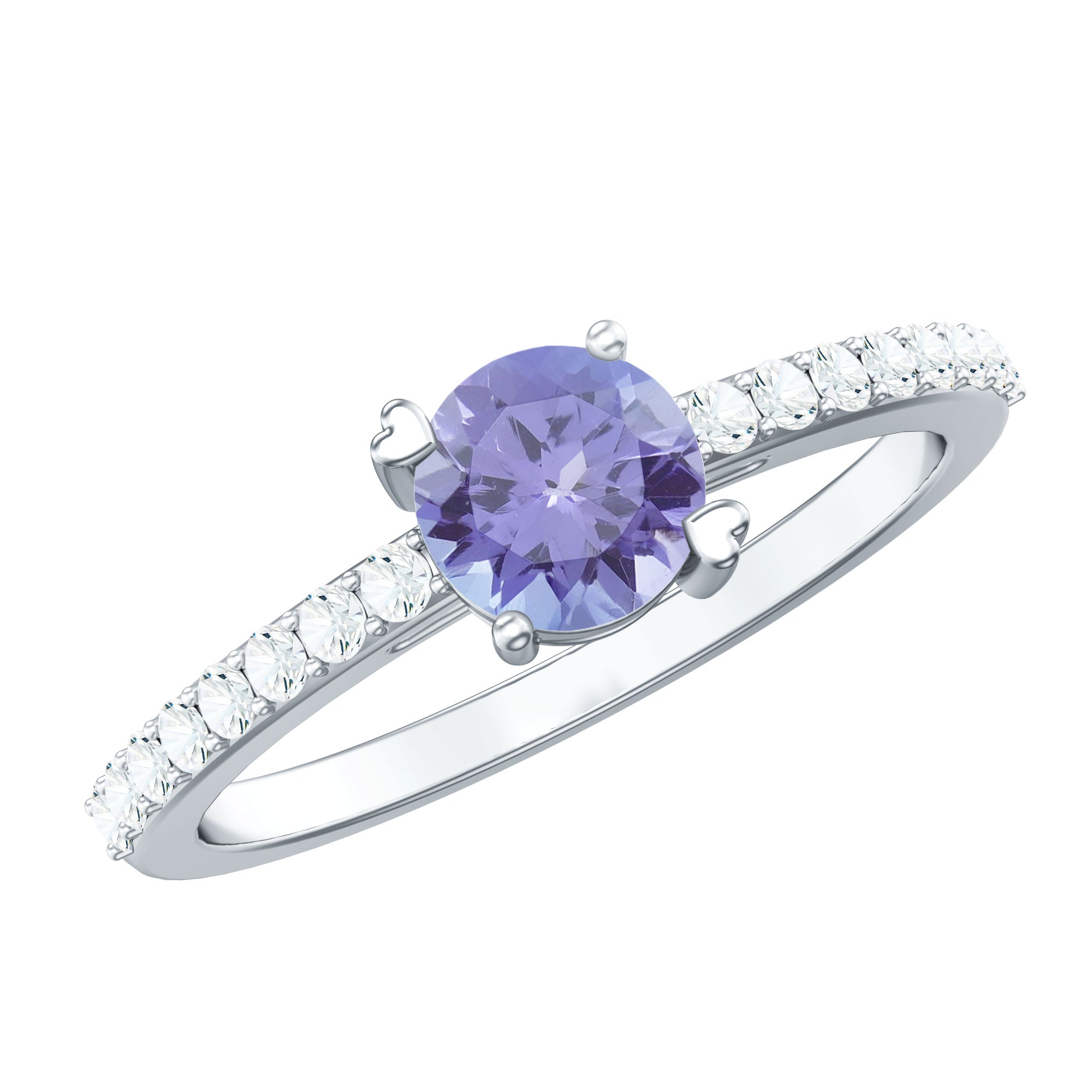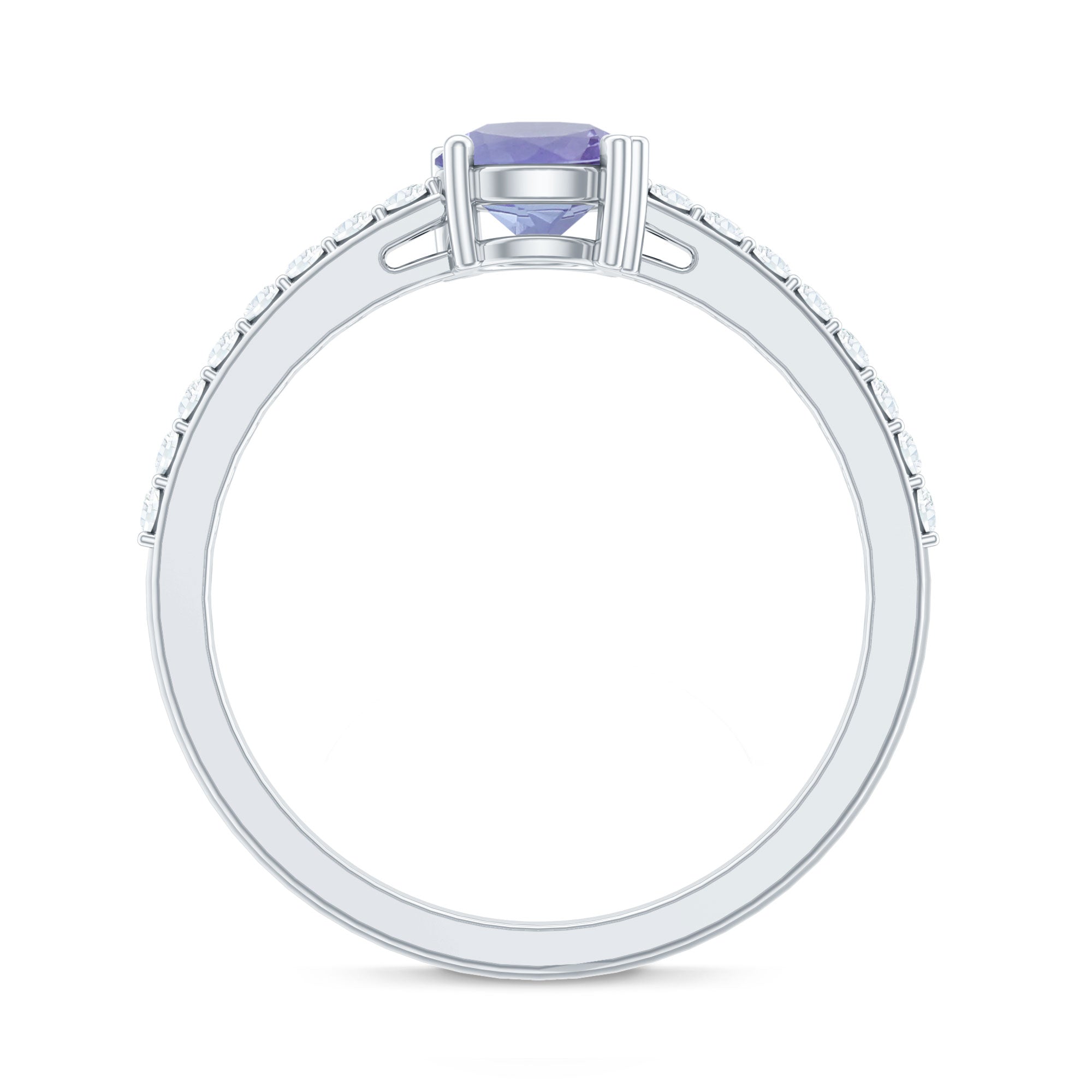 Make a promise of everlasting love with this Solitaire Promise Ring, adorned with Tanzanite and Diamond Side Stones, a symbol of devotion and refined style.