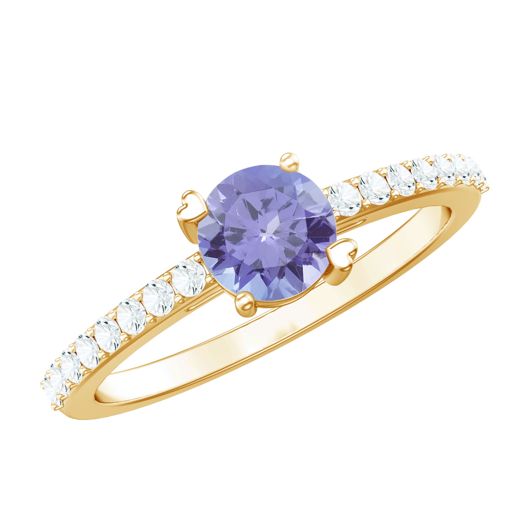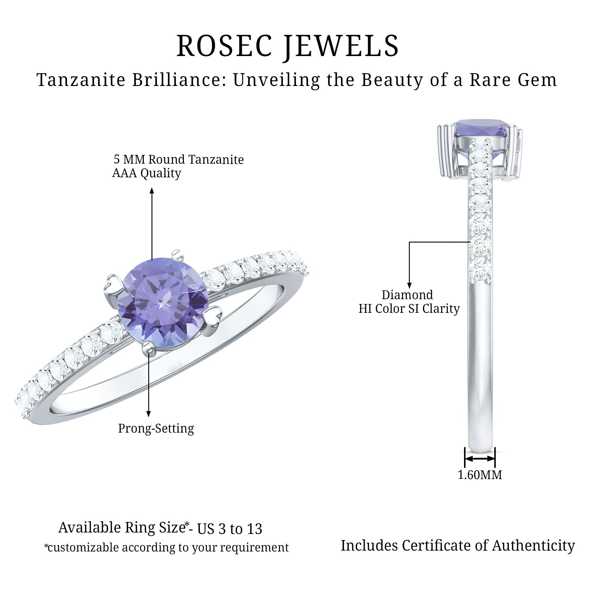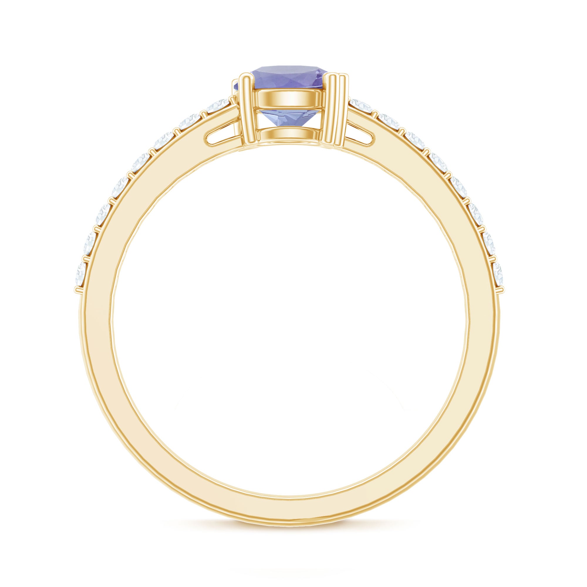 Make a promise of everlasting love with this Solitaire Promise Ring, adorned with Tanzanite and Diamond Side Stones, a symbol of devotion and refined style.