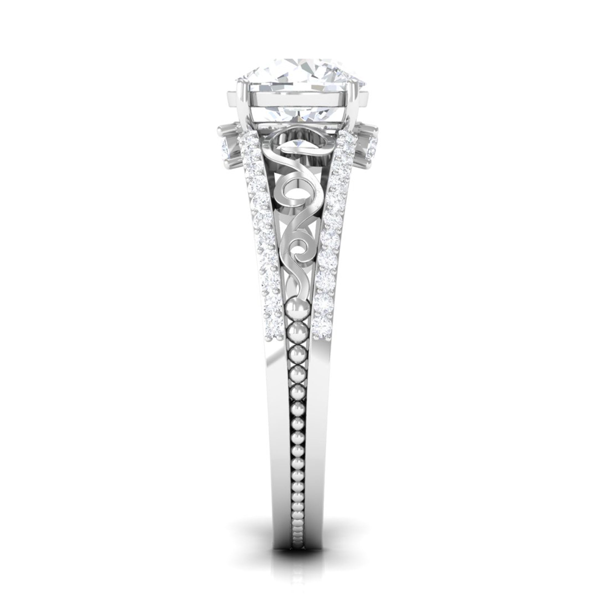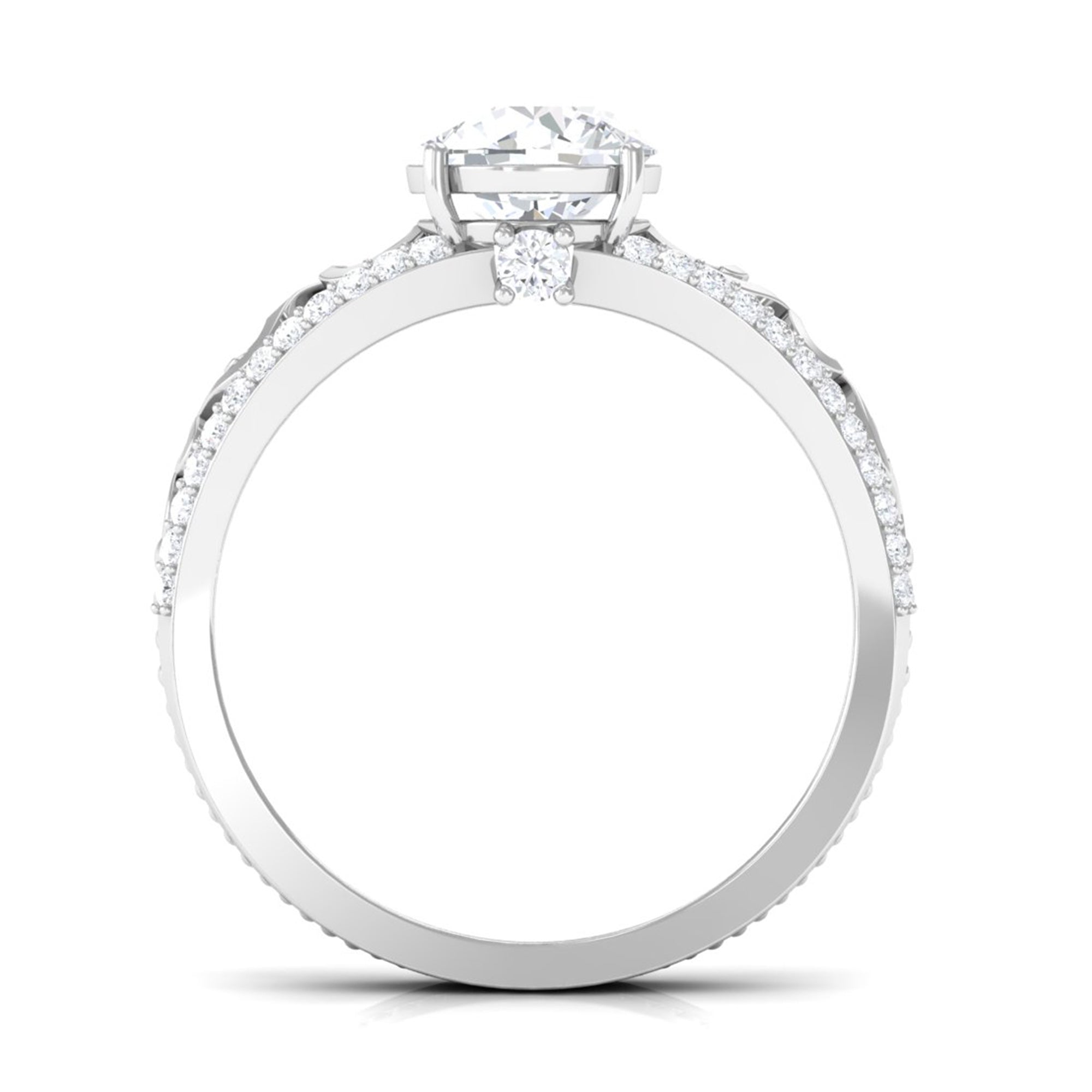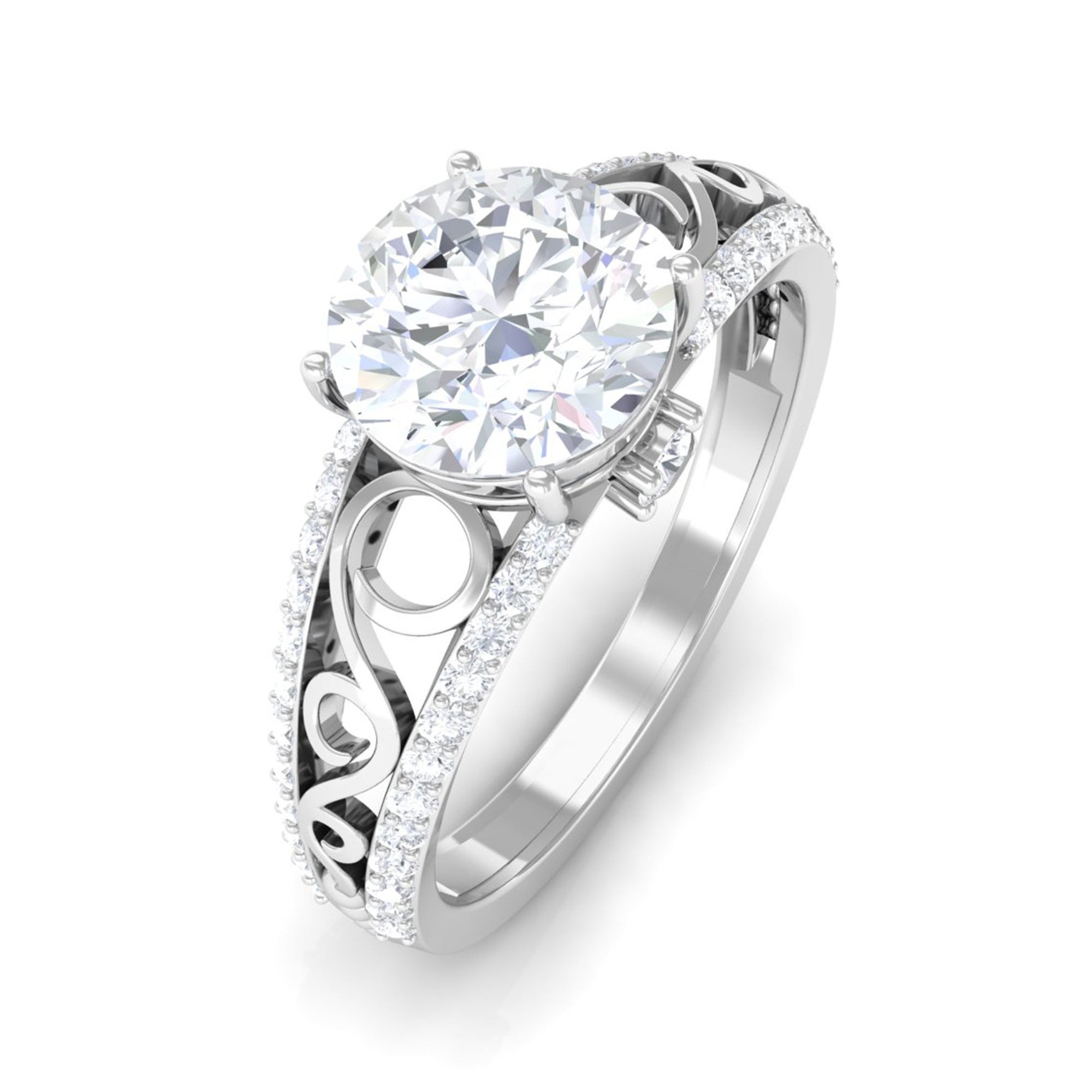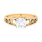 Artistically crafted in Gold, this Designer Shank Ring features Round Cut Ruby in prong setting with accent and hidden cz beautifully. This Cubic Zirconia Engagement Ring will be the perfect fit for your partner. Get this beautiful Simulated Diamond Engagement Ring for you lady and make her feel elated.