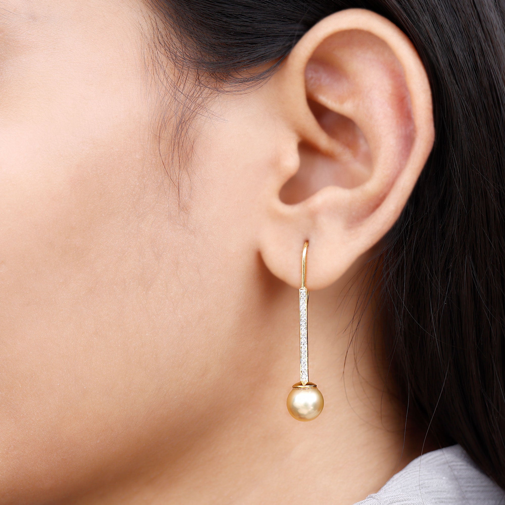 South Sea Pearl and Diamond Drop Earring with Fish Hook Closure
