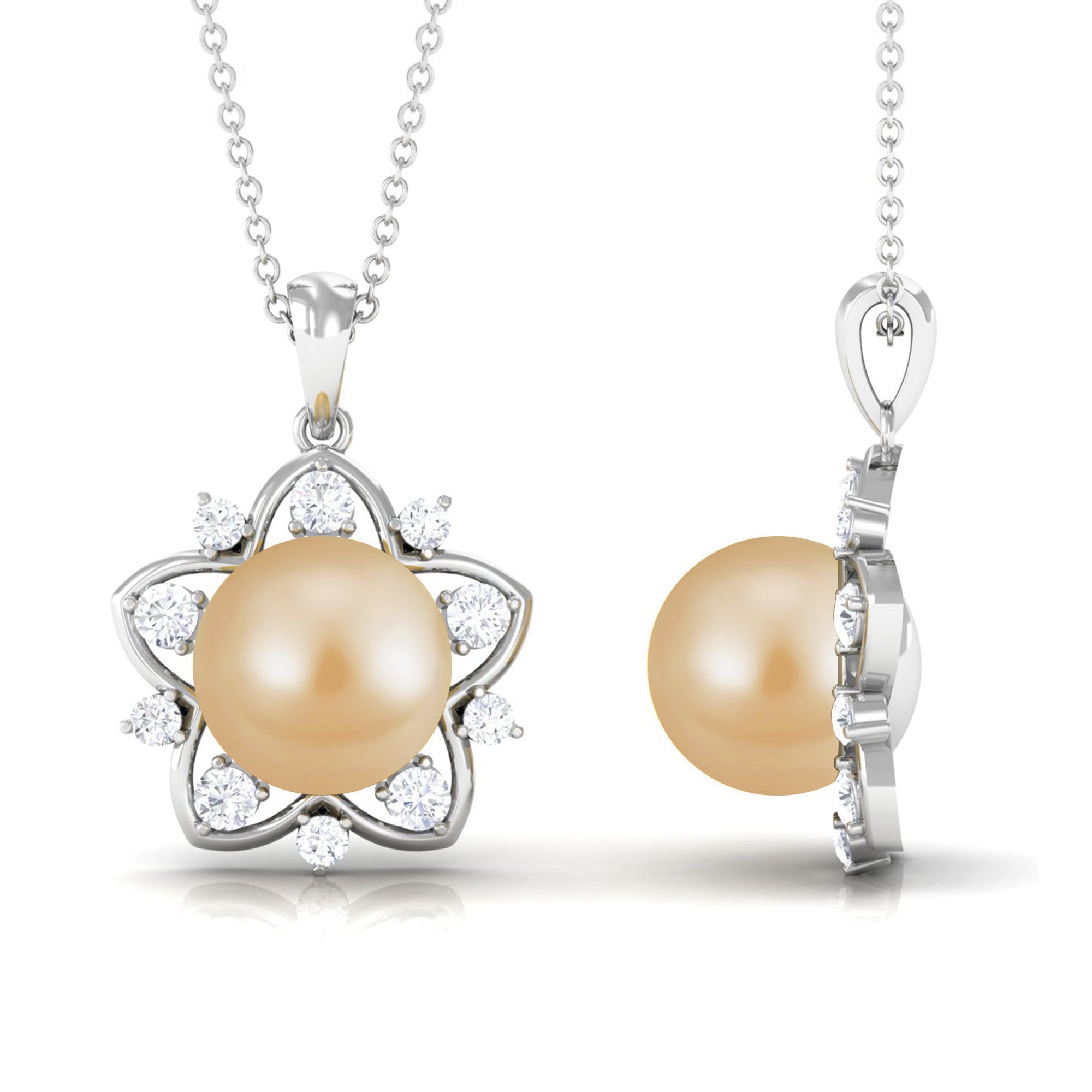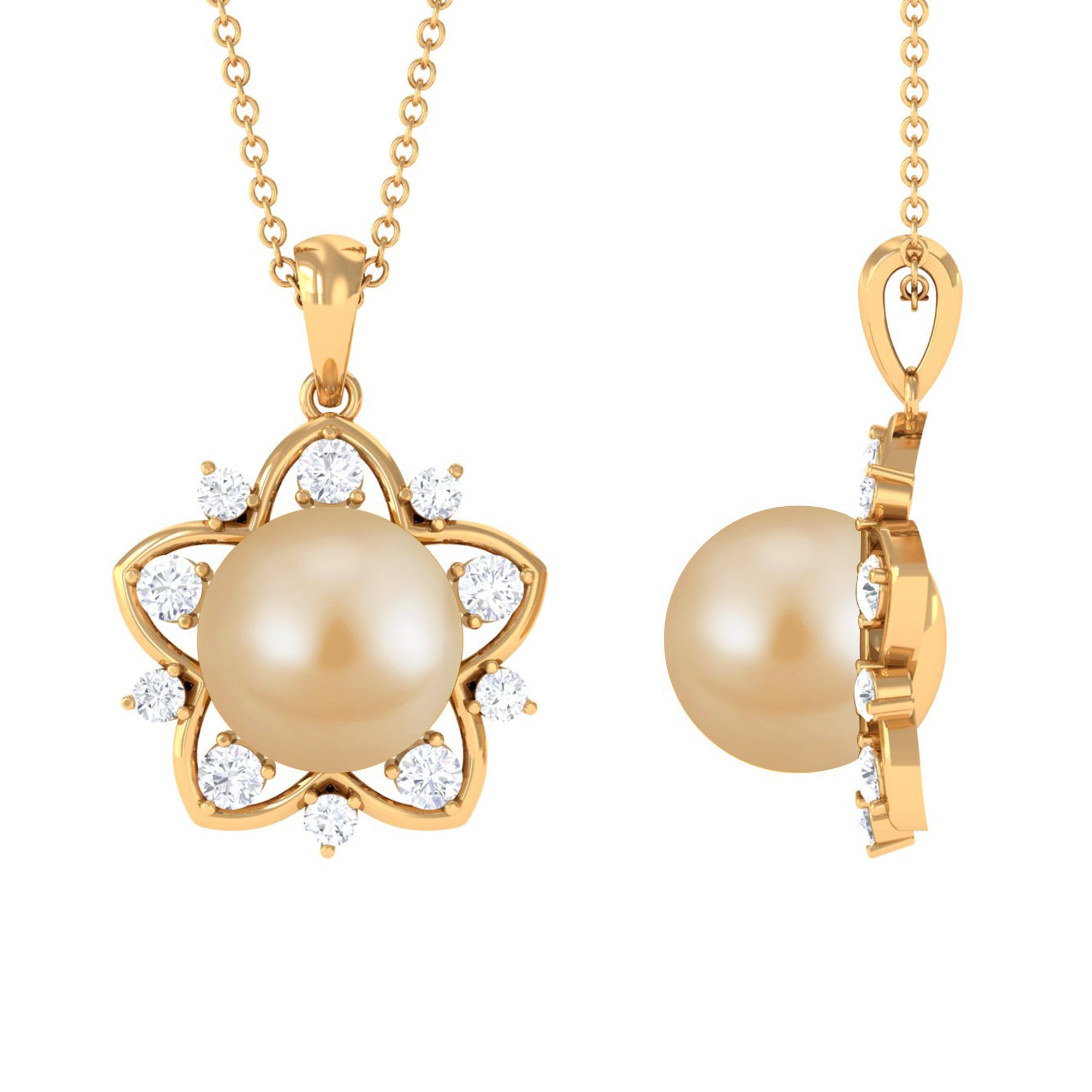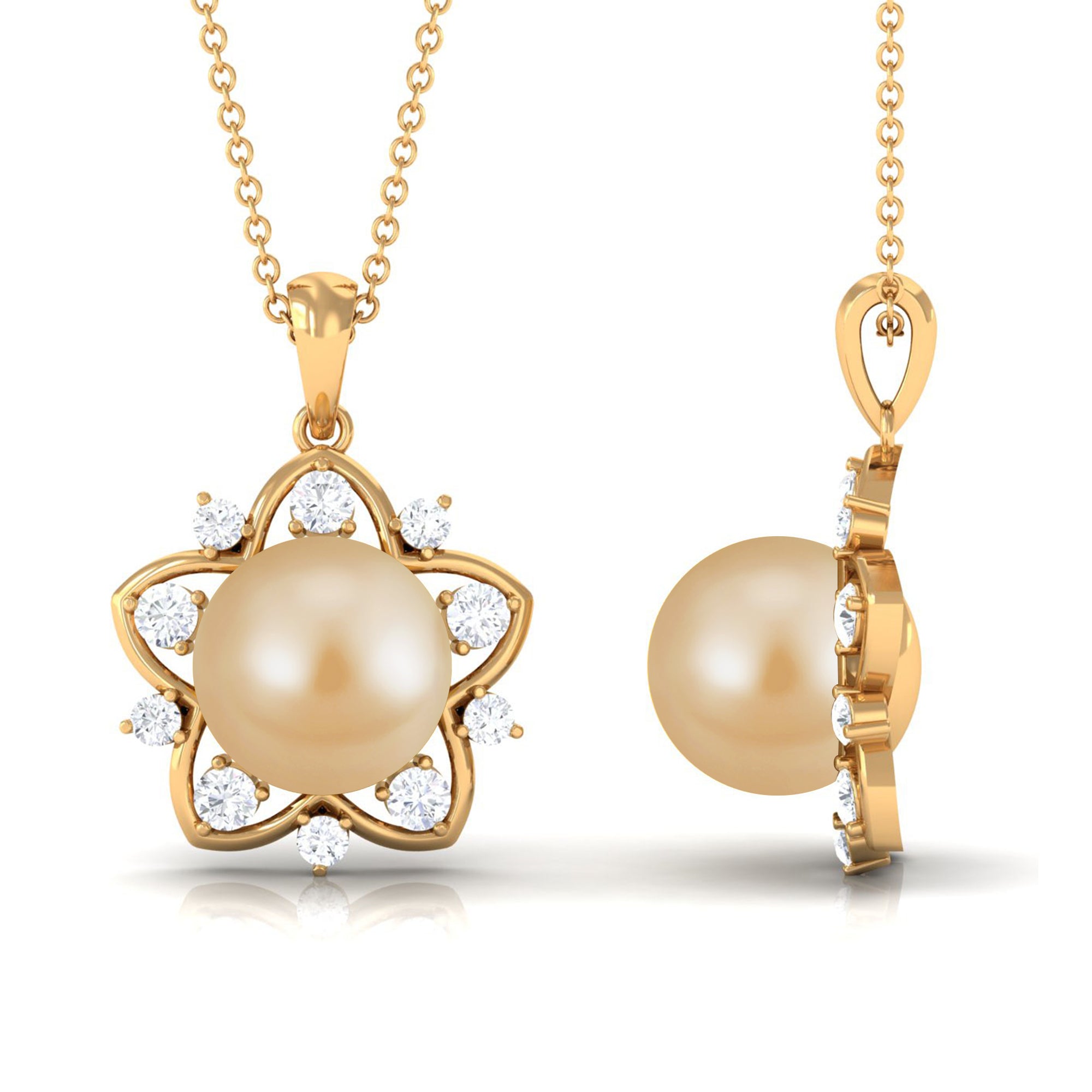 The design of the pendant exudes timeless radiance, making it a versatile addition to both casual and formal attire. This Star Pendant is a captivating piece adorned with South Sea Pearl and Diamond stones, making it an ideal selection for bridal jewelry. Its enduring elegance ensures it complements any outfit and becomes a cherished part of your jewelry collection.