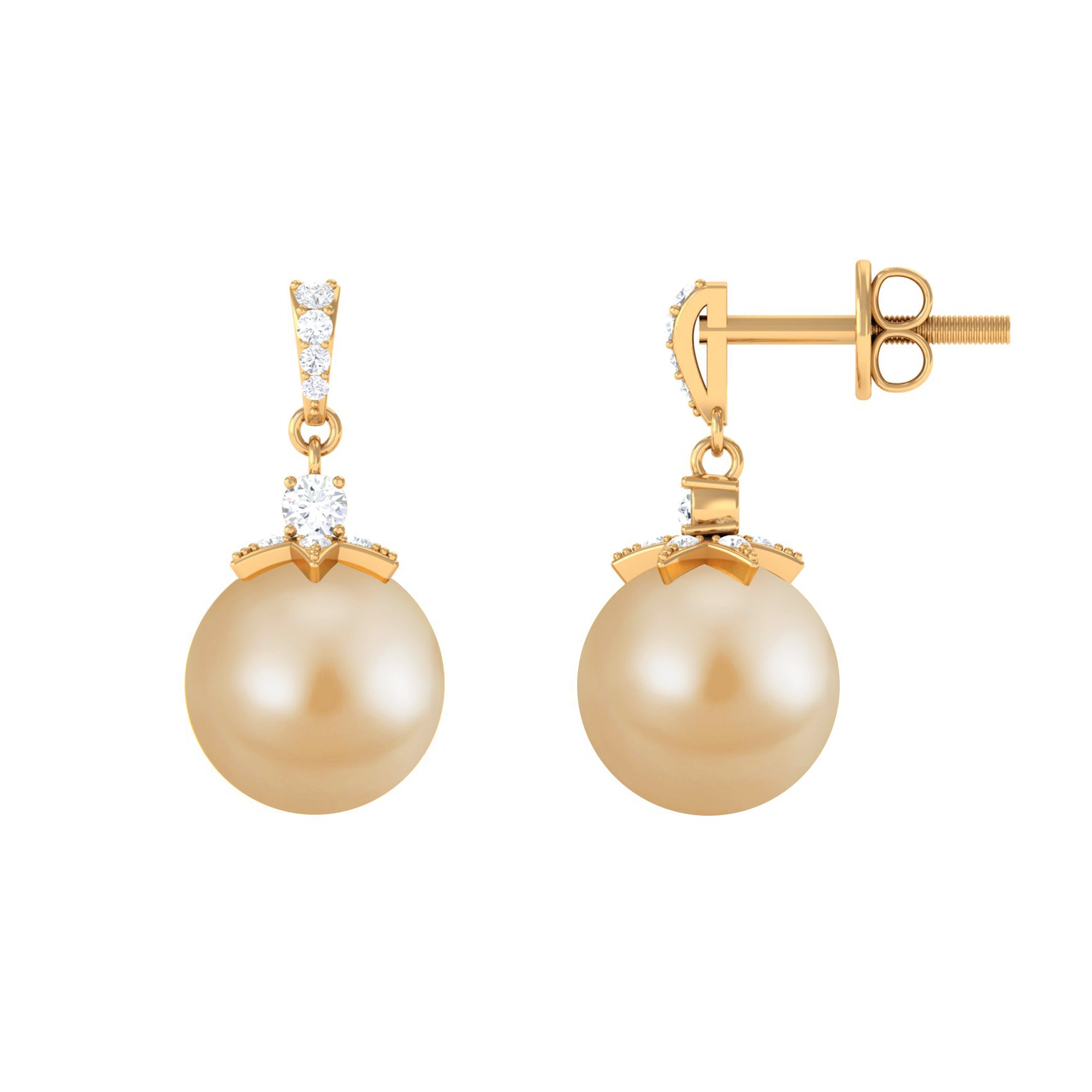 South Sea Pearl Minimal Drop Earrings with Diamond Stones