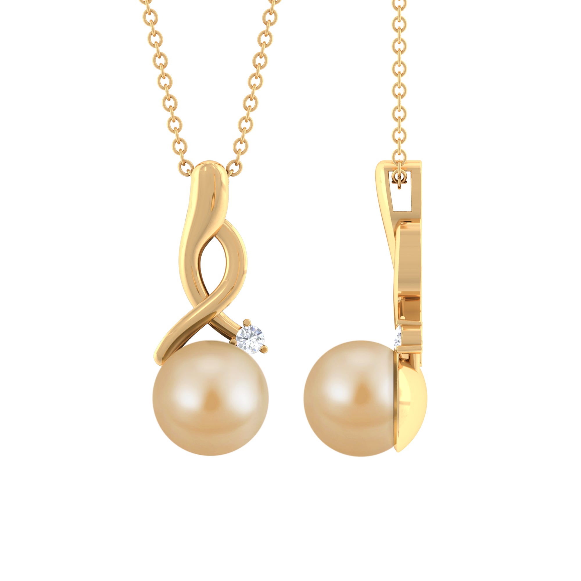 Elevate your style with the South Sea Pearl Drop Pendant, adorned with an intricately Twisted Designer Bail accentuated by a glistening diamond. The embodiment of timeless elegance, the pendant features a lustrous Golden South Sea Pearl that elegantly descends. The union of the exquisite pearl and the designer-inspired bail creates a harmonious fusion of sophistication and modernity.