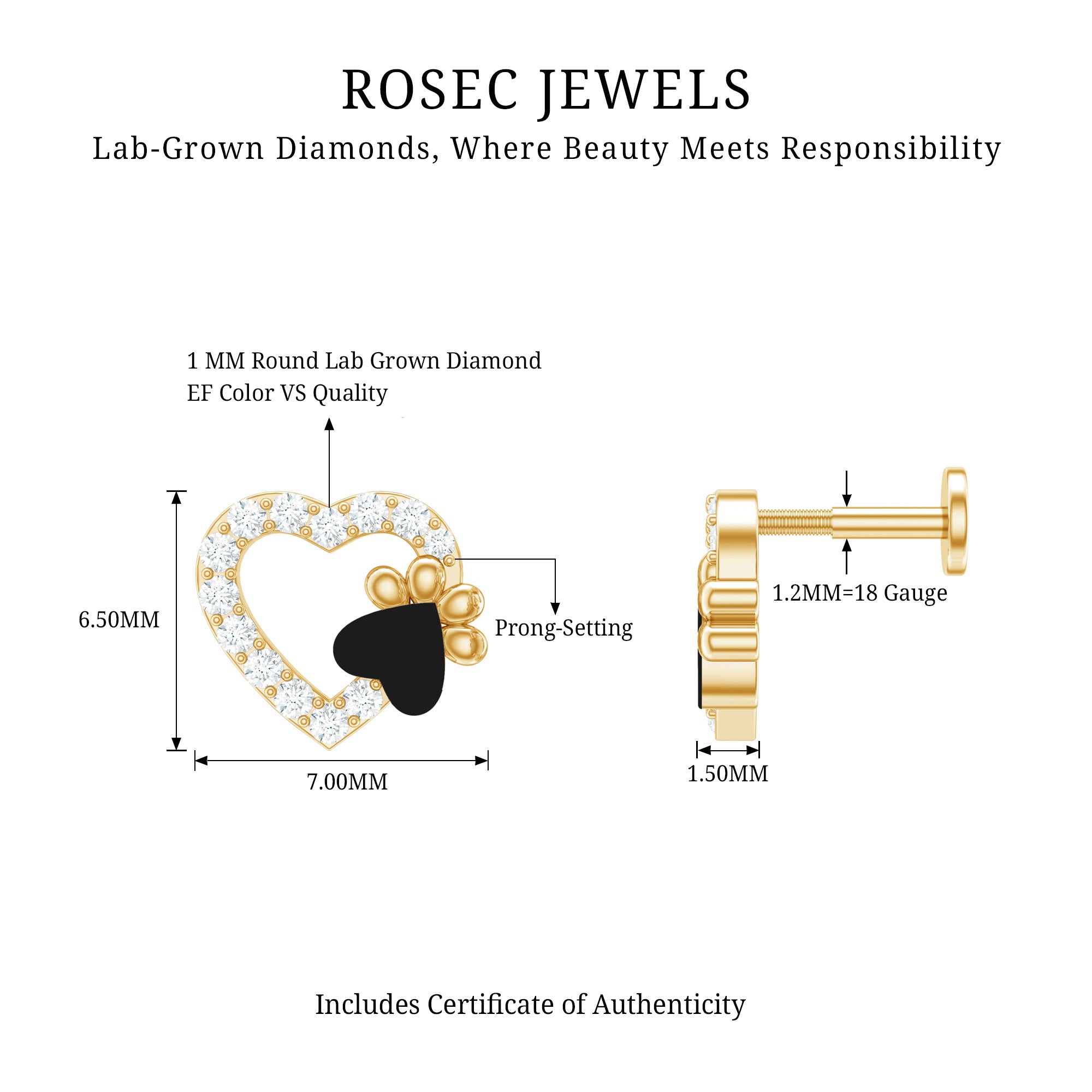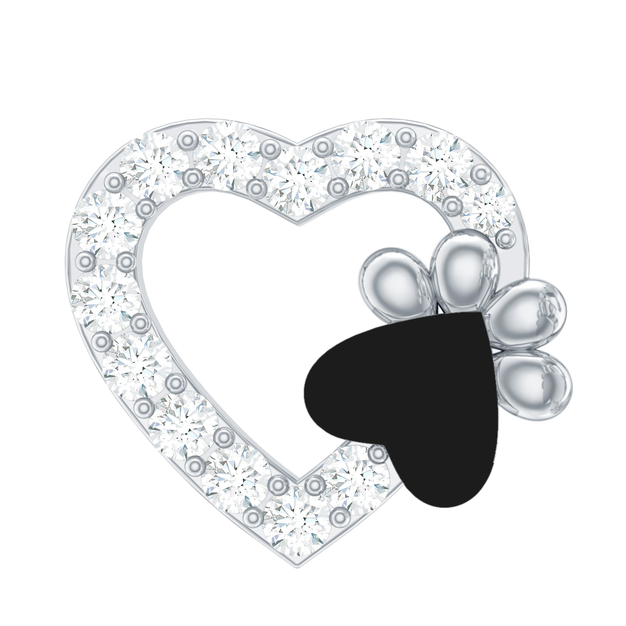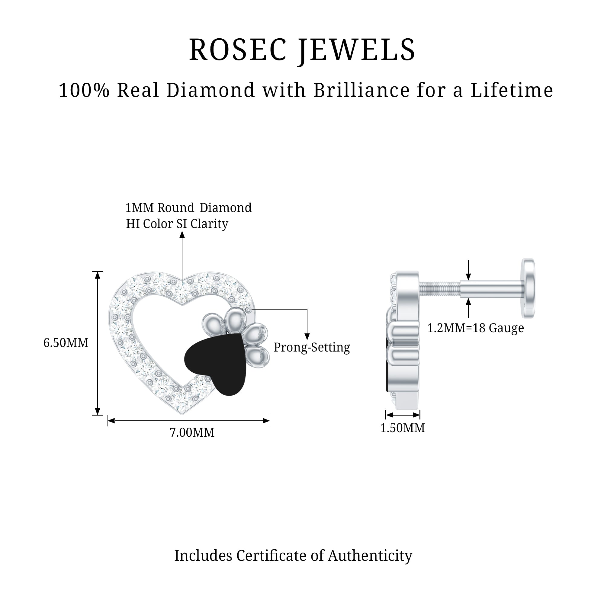 Sparkling Diamond Dog Paw Heart Earring with Black Enamel