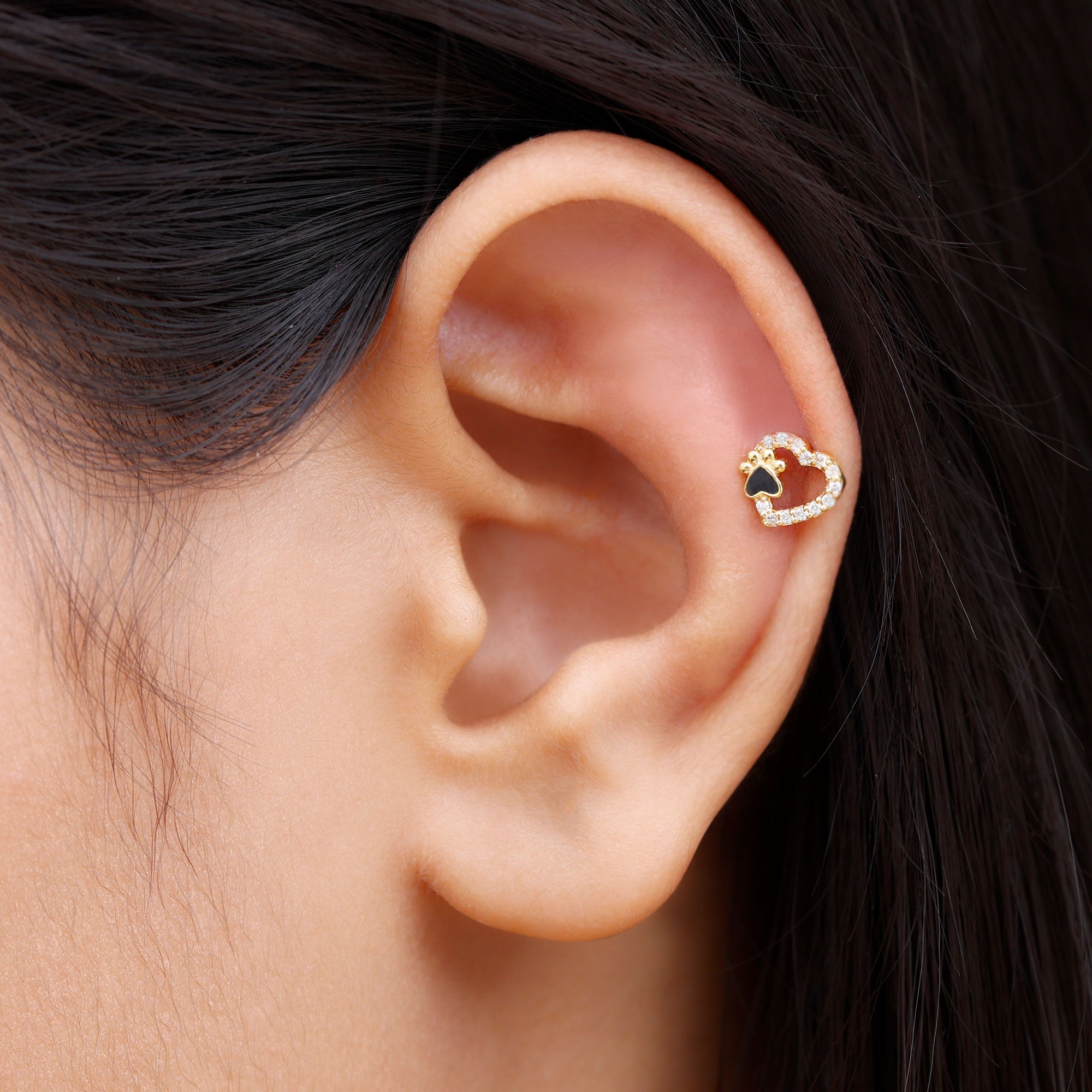 - This versatile Diamond Heart Earring can be easily slipped onto your Helix, Cartilage, or Upper Lobe Piercing, making it the perfect accessory for any occasion.