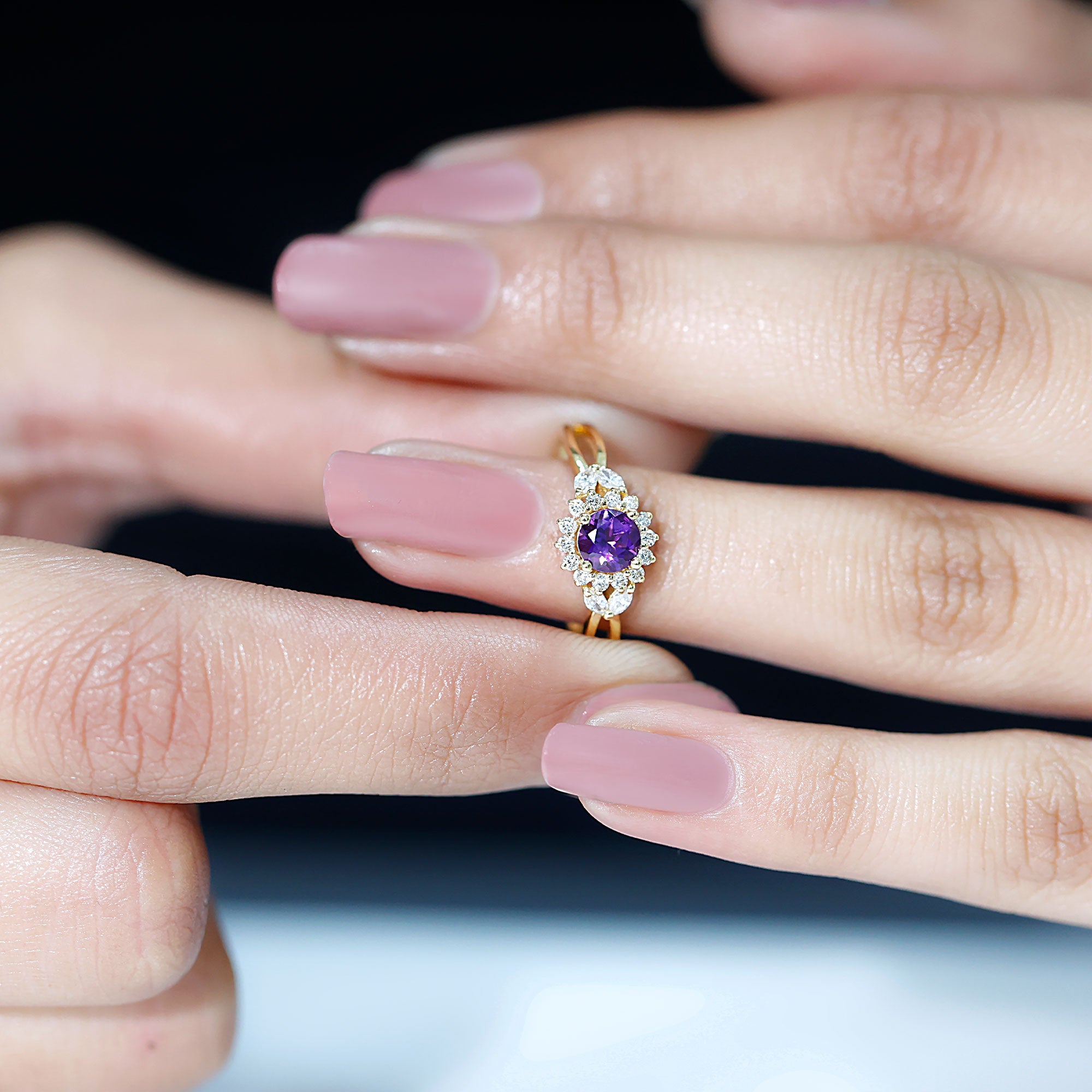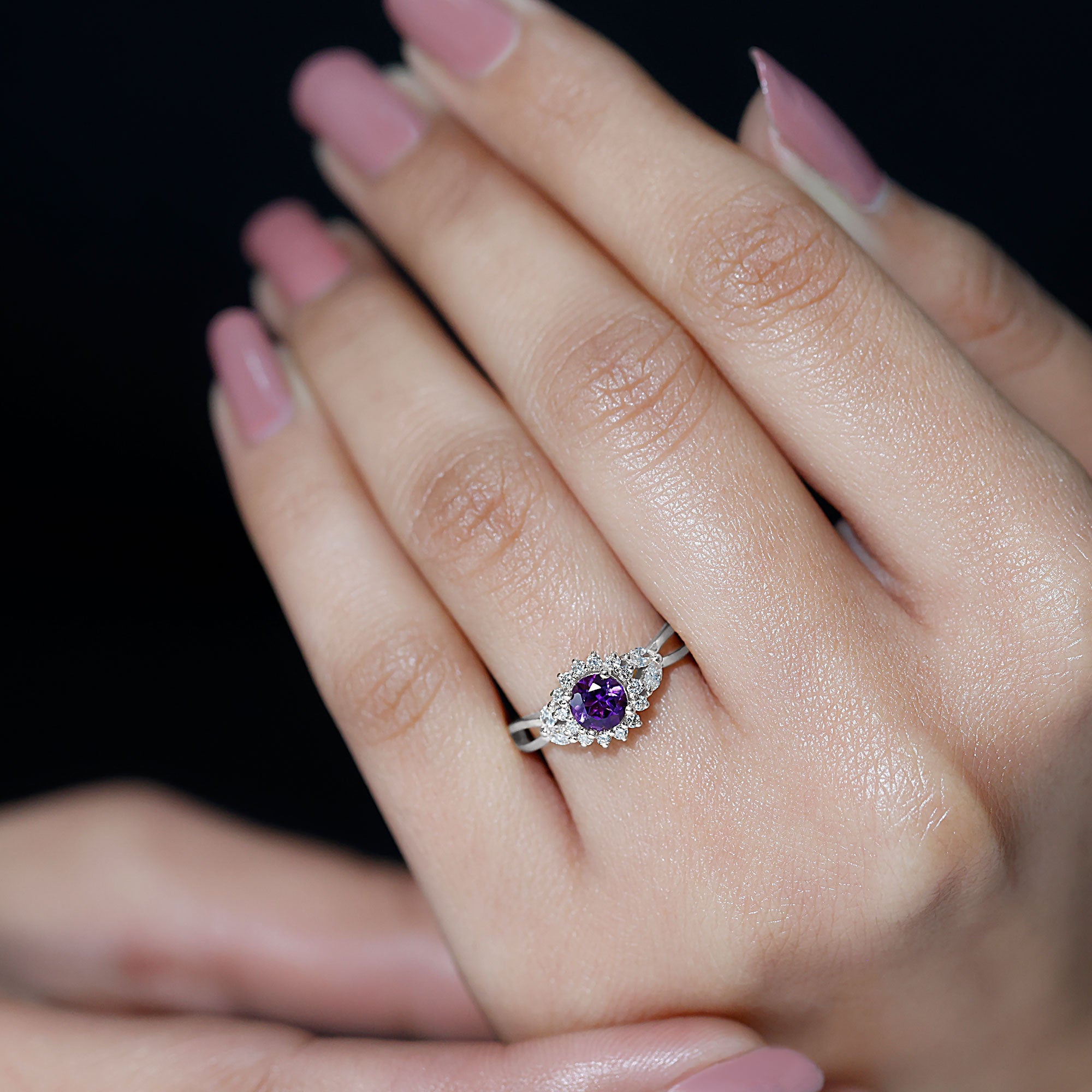 Split Shank Amethyst Flower Engagement Ring with Diamond