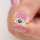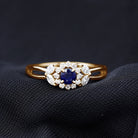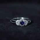 Split Shank Blue Sapphire Flower Engagement Ring with Moissanite