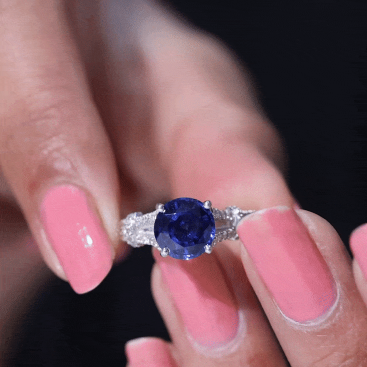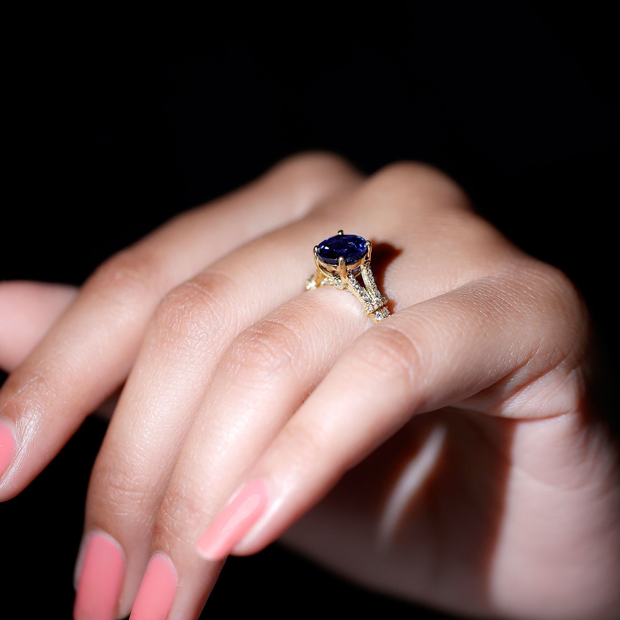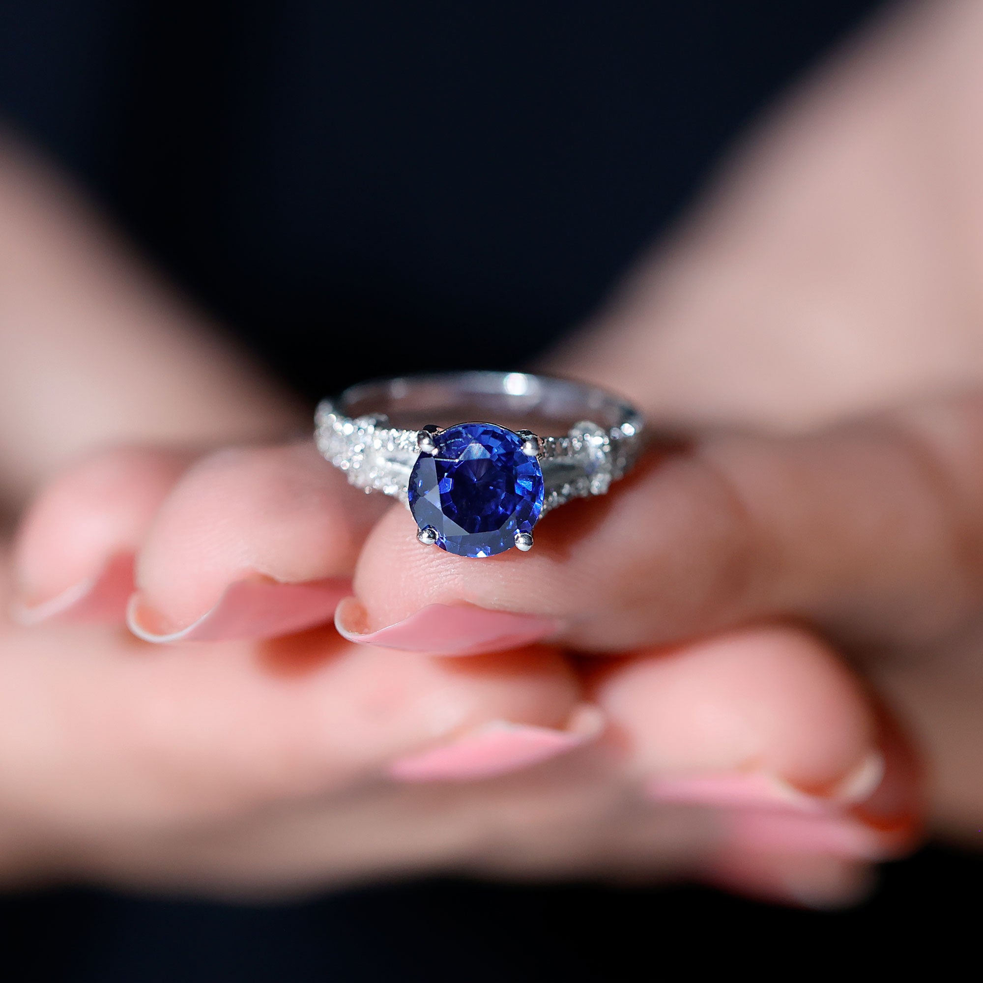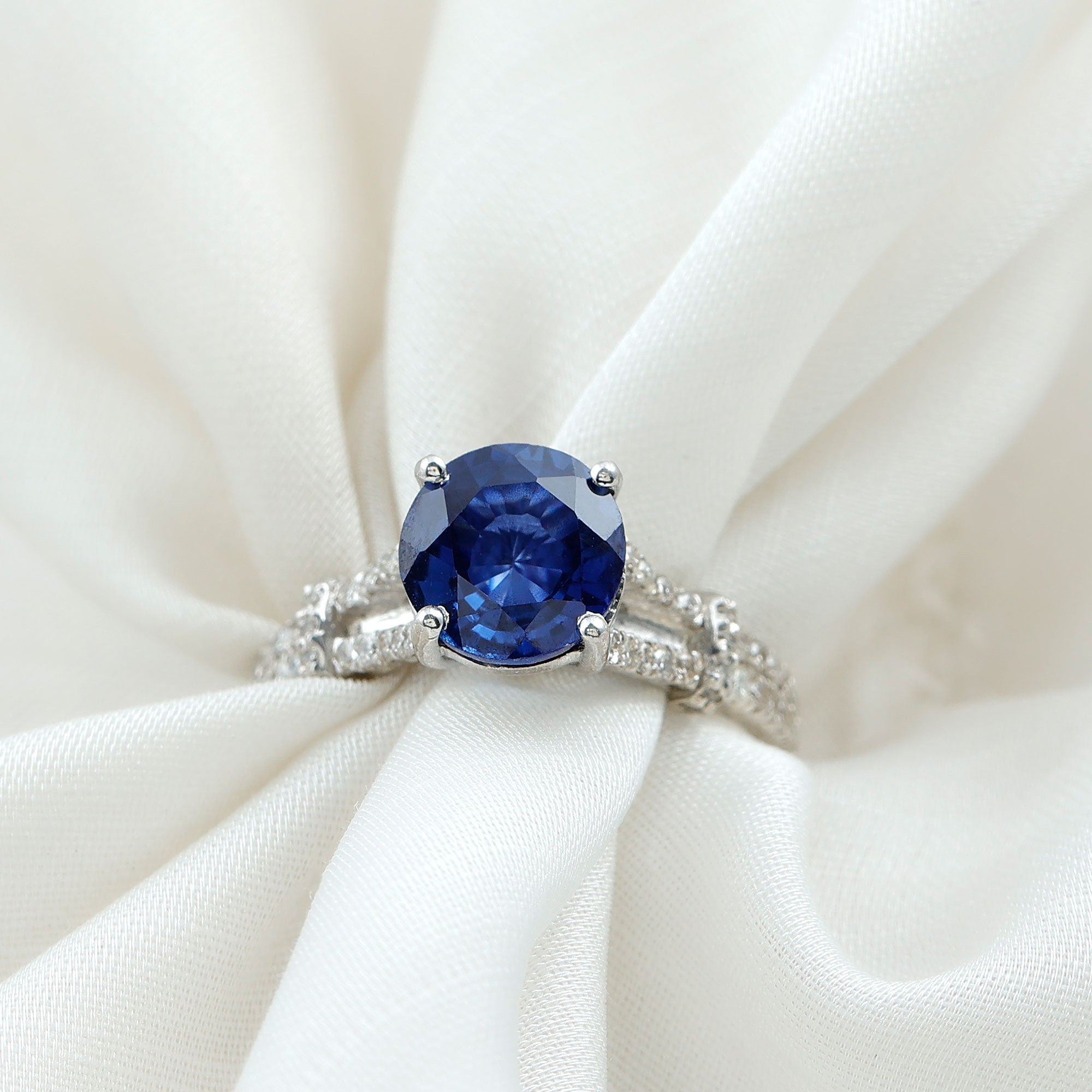 Make your special moment even more romantic with this adorable Lab Created Blue Sapphire Ring, embellished with round-cut lab created blue sapphire stones and Diamond accents. Crafted from solid gold, this stunning split shank ring will make a true statement and add a touch of elegance to any occasion.