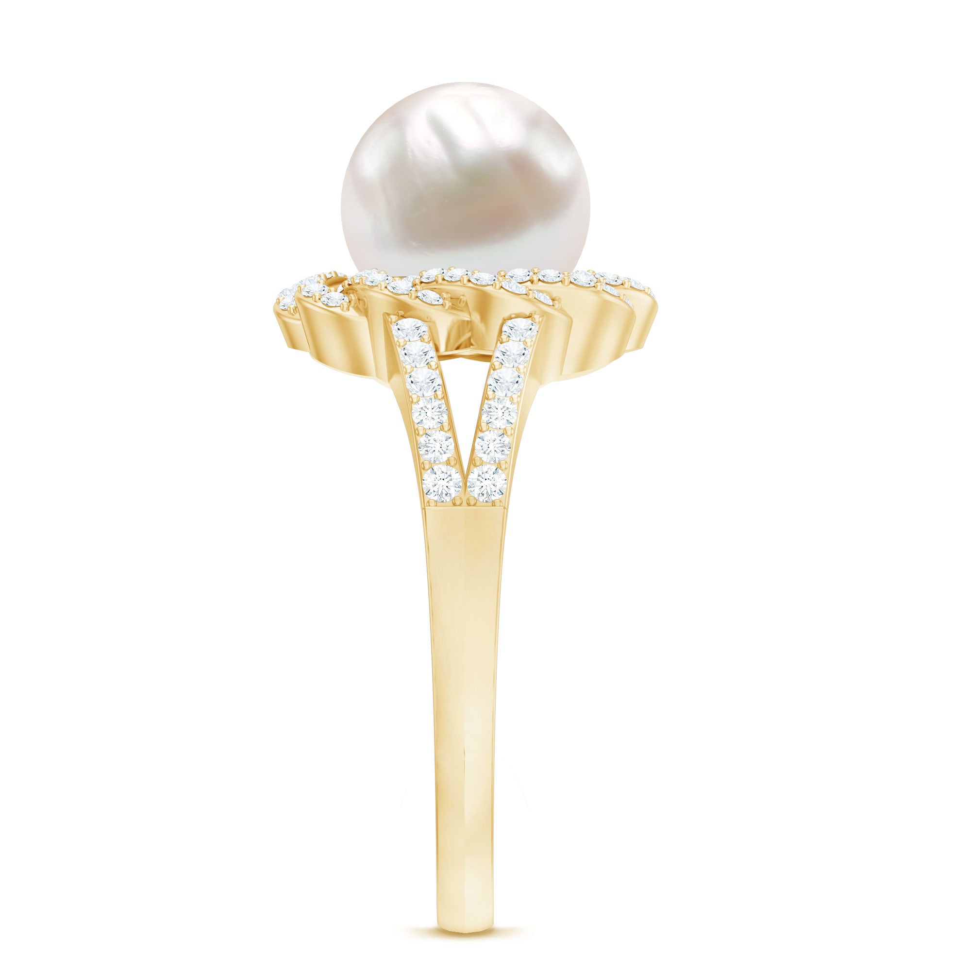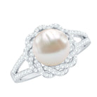 Split Shank Freshwater Pearl and Diamond Braided Statement Ring