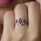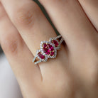 Split Shank Lab Grown Ruby and Diamond Cluster Engagement Ring