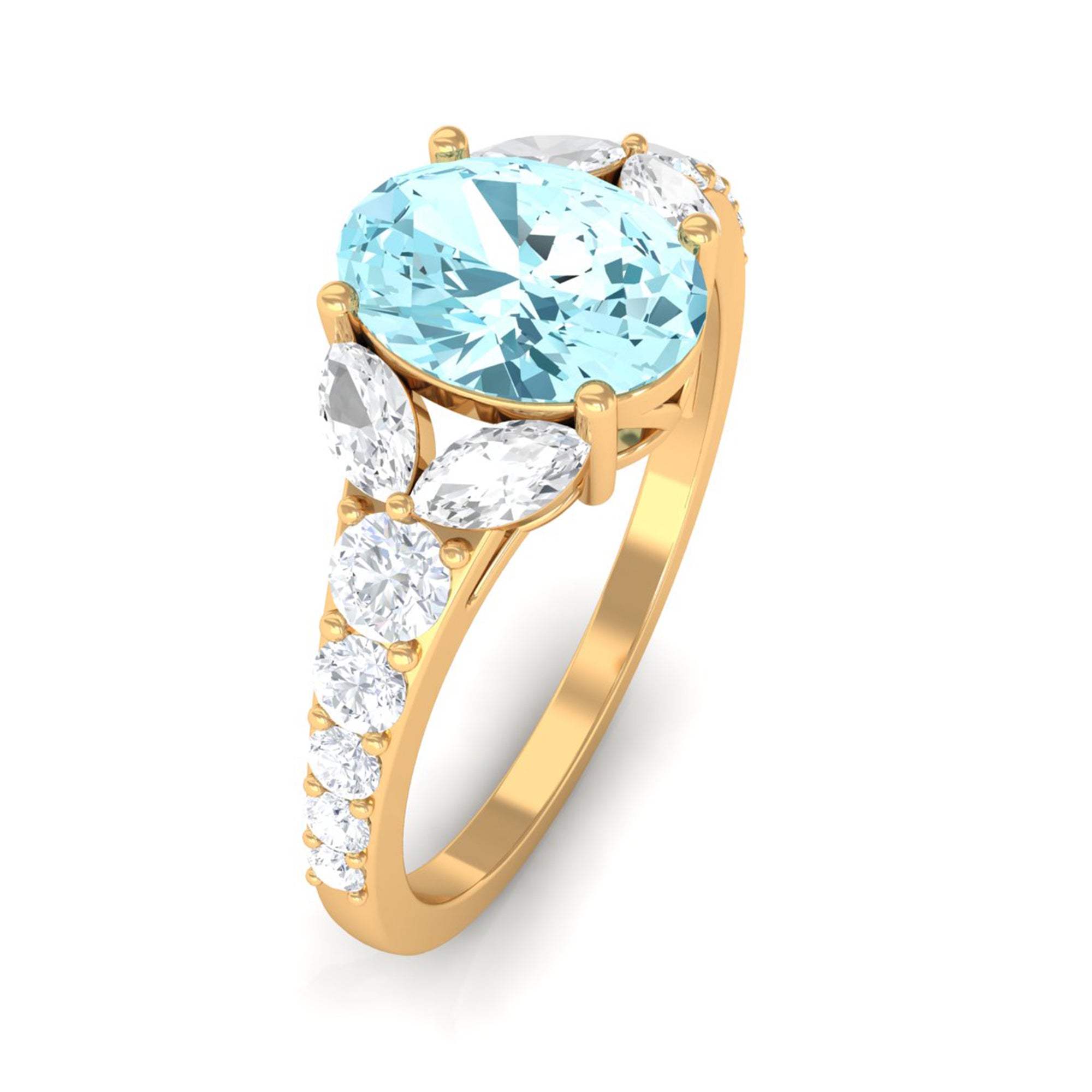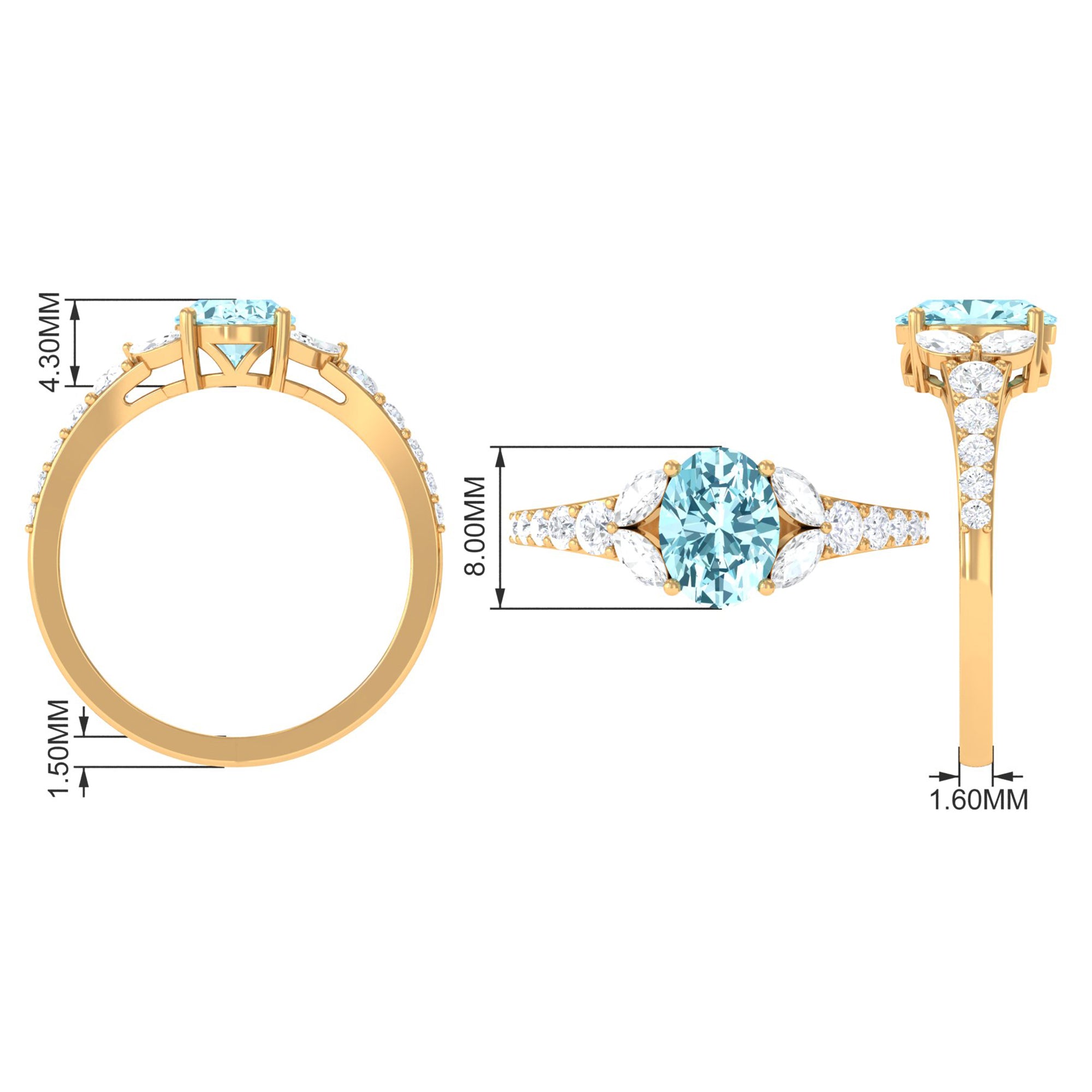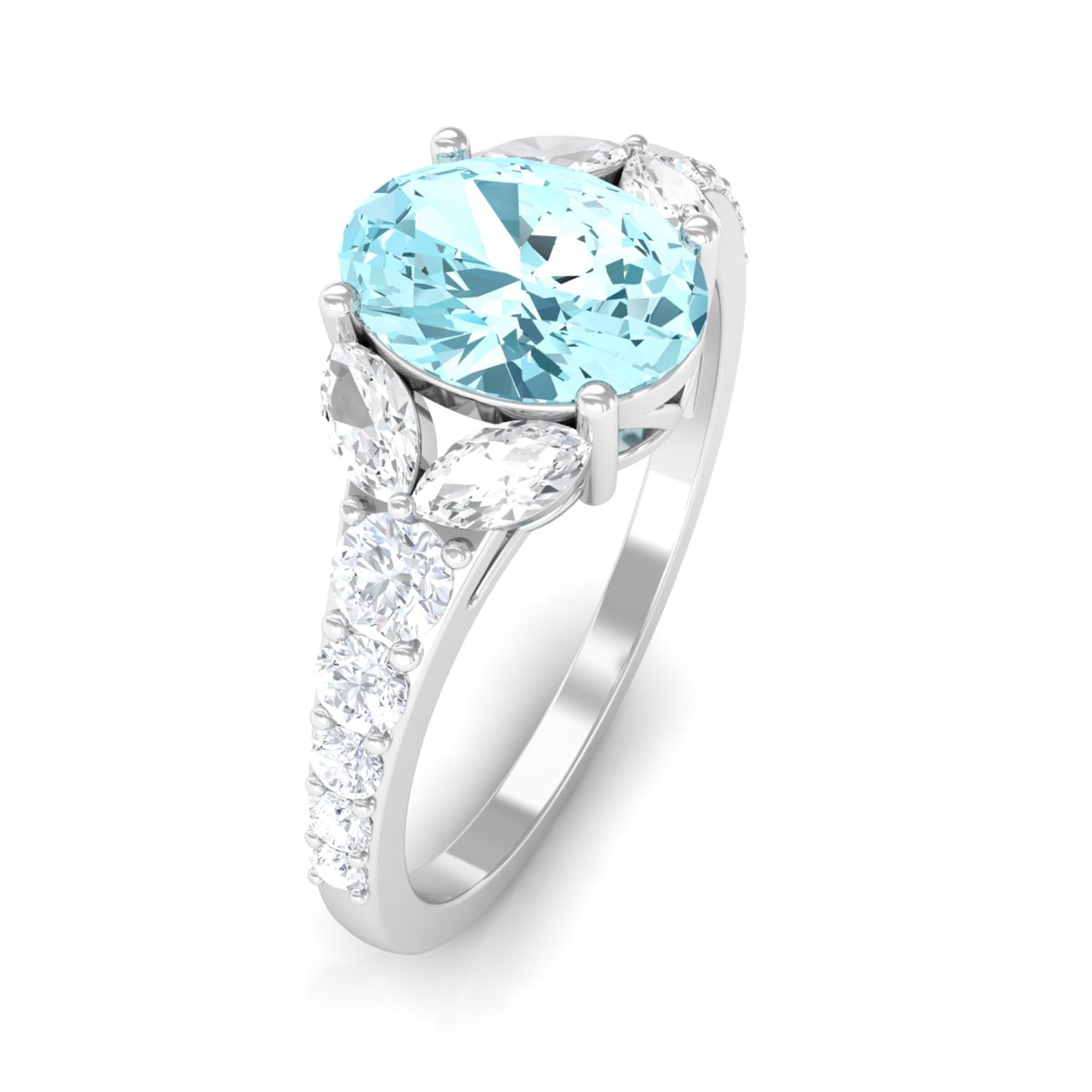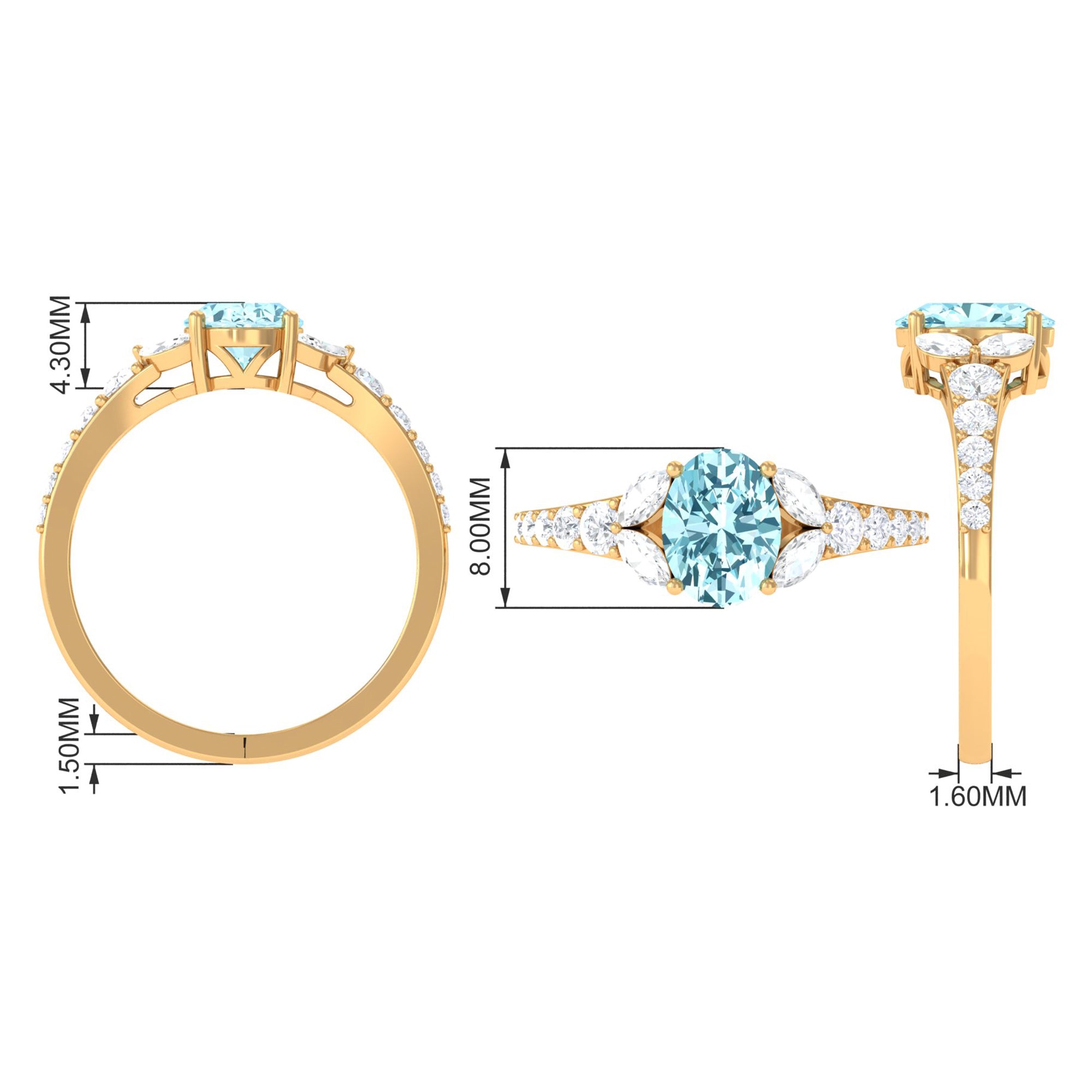Split Shank Oval Aquamarine Solitaire Ring with Moissanite
