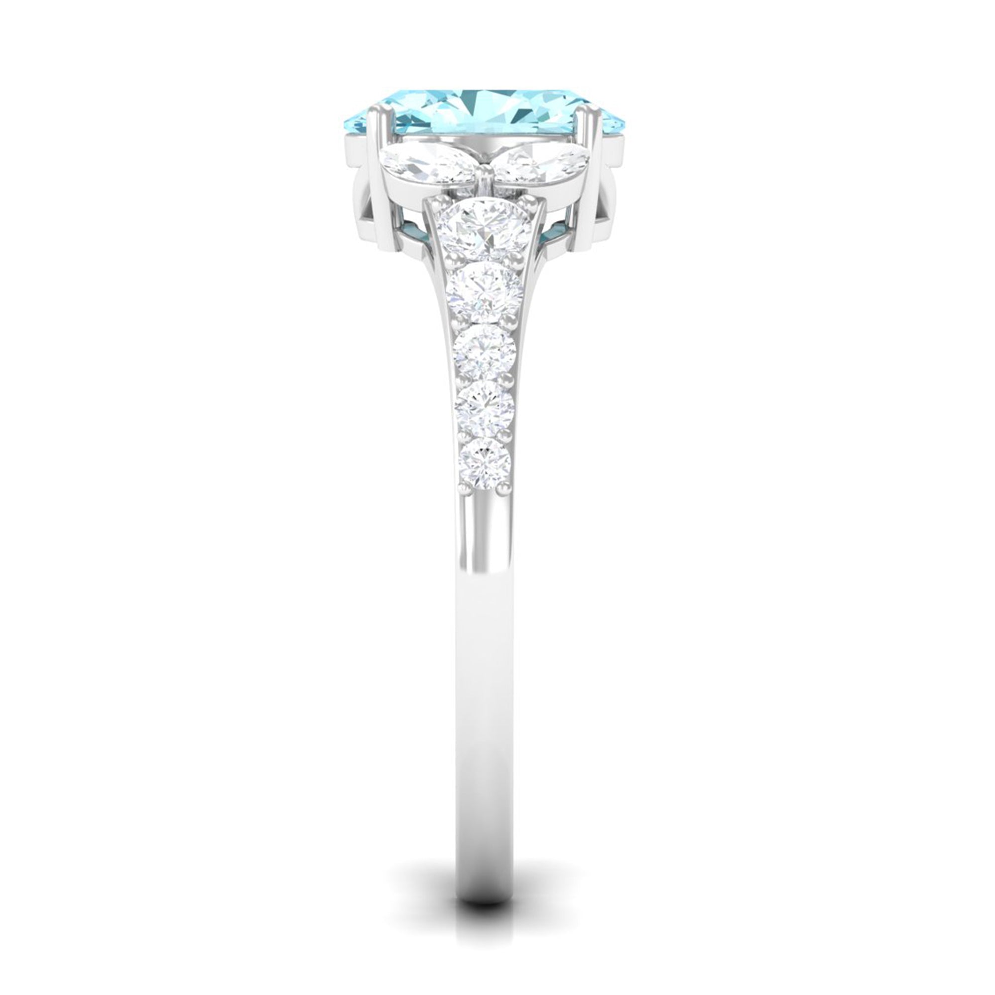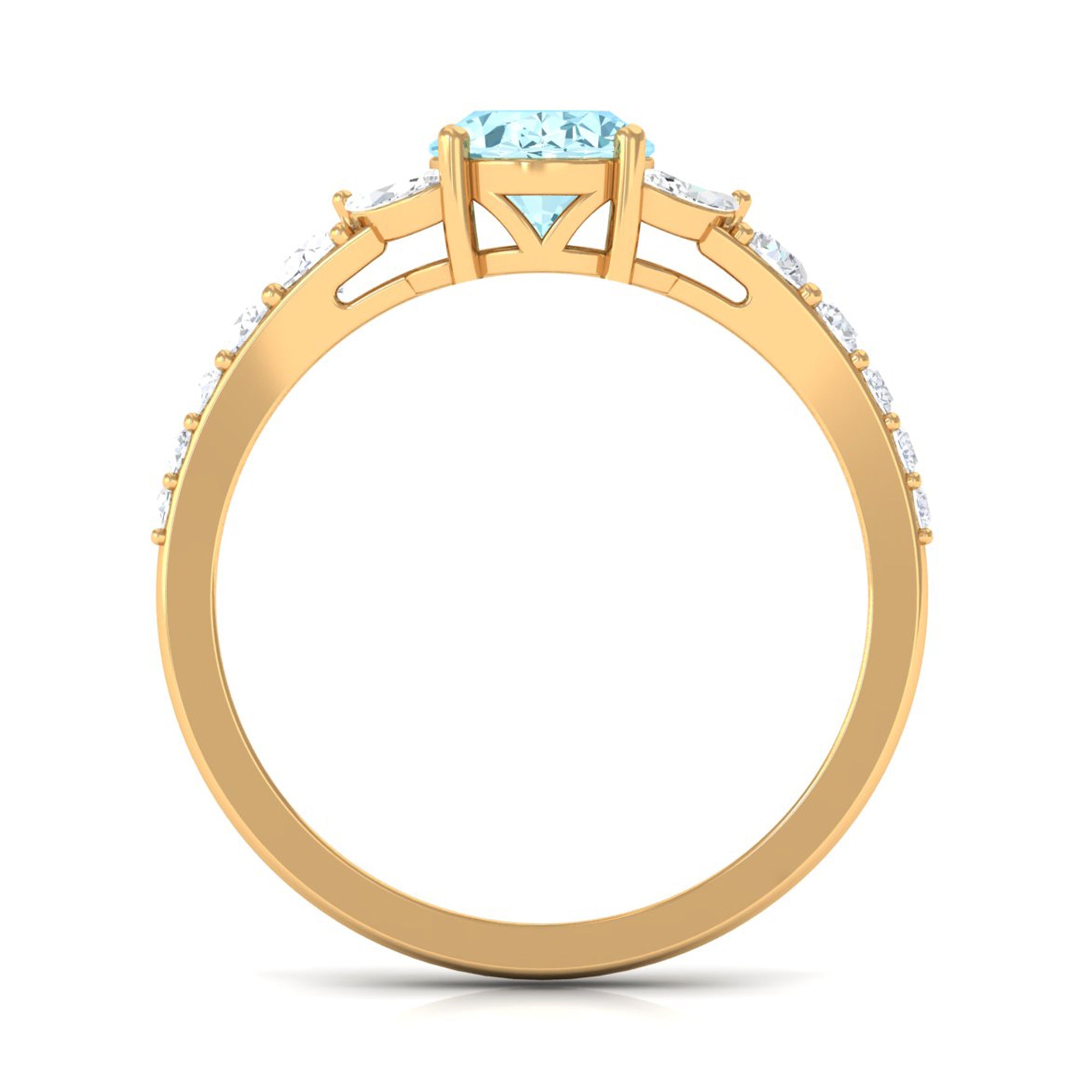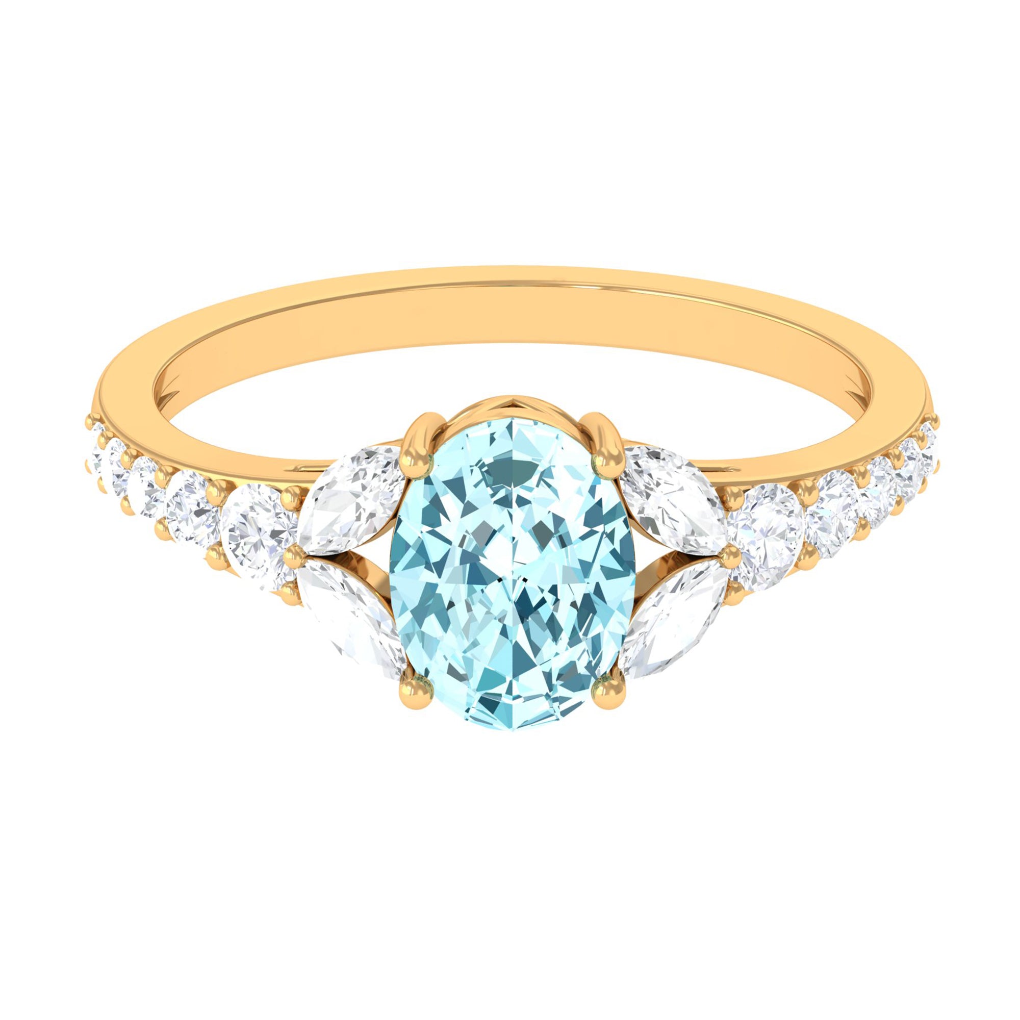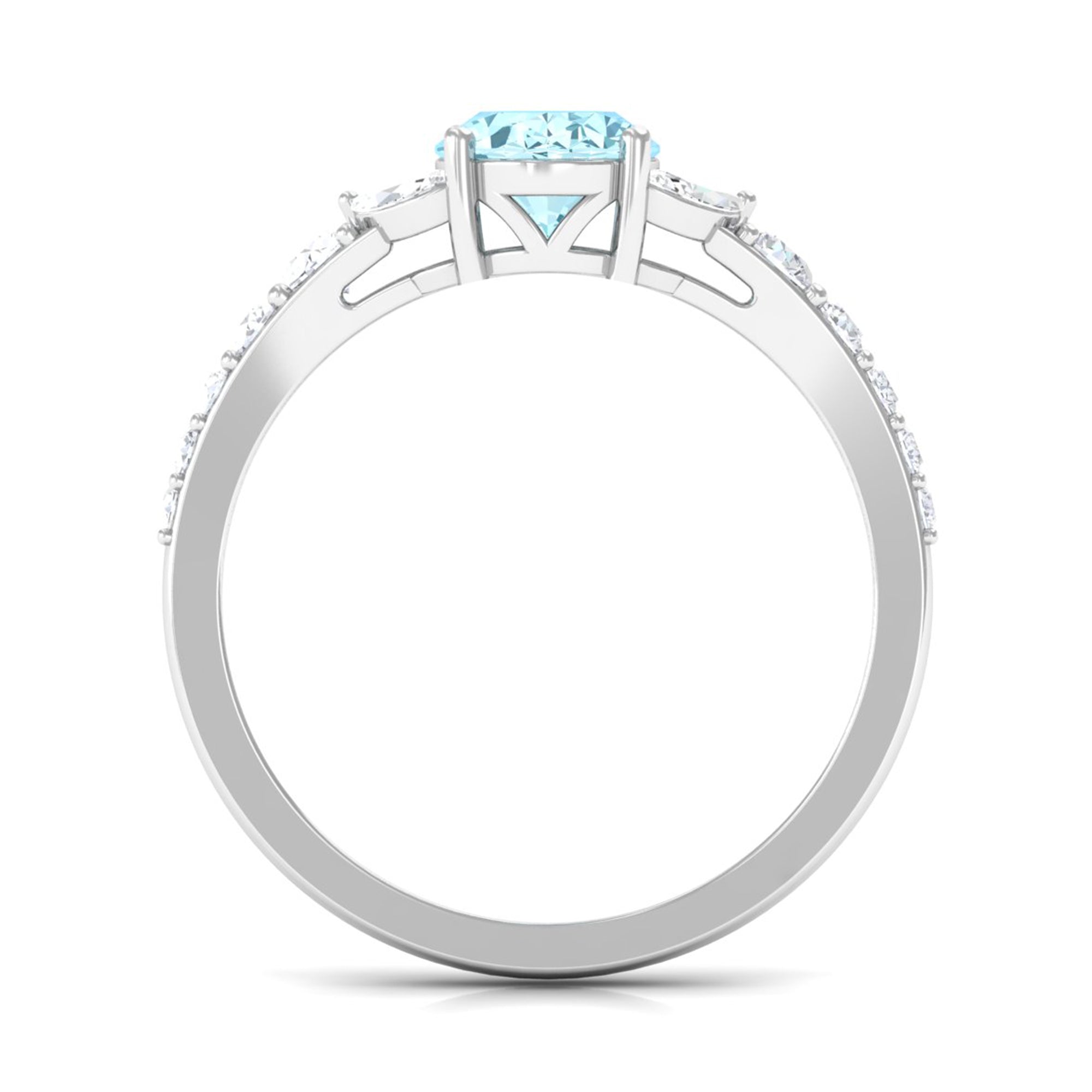 Split Shank Oval Aquamarine Solitaire Ring with Moissanite