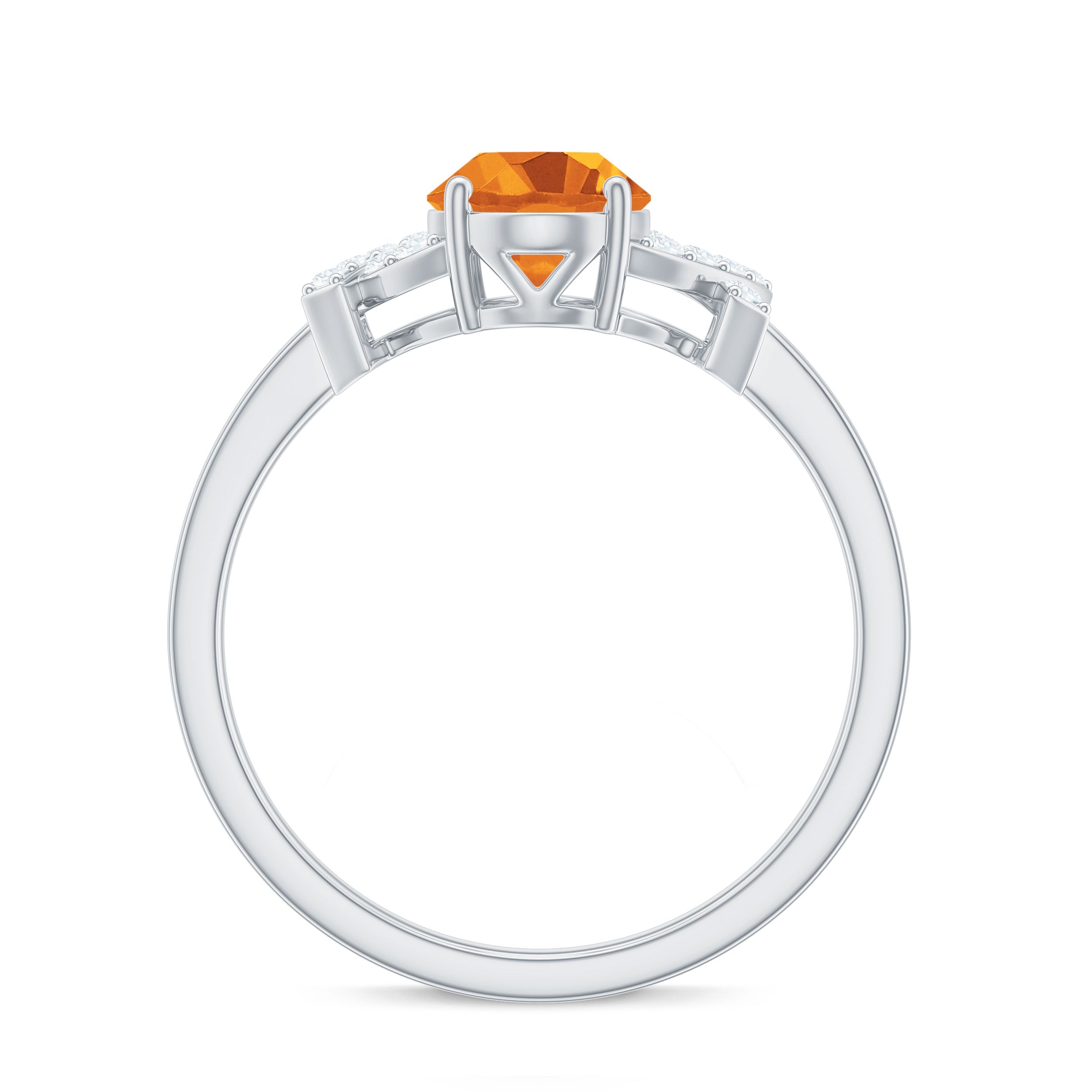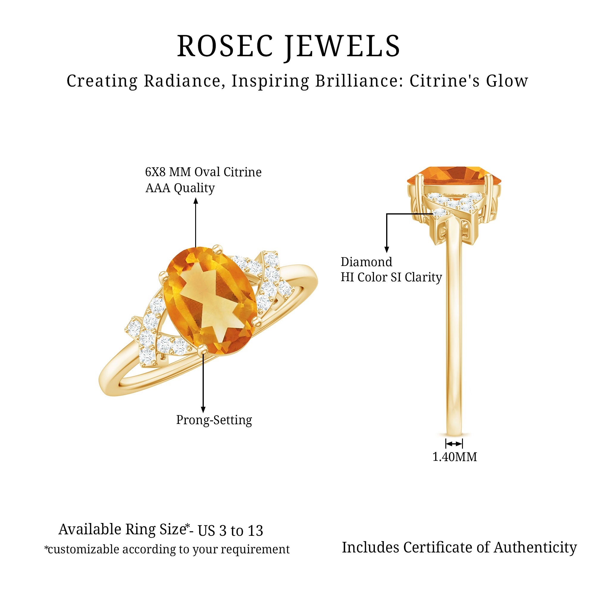 Present her this stunning Citrine Engagement Ring and be ready for a flood of compliments. The 6X8 MM oval cut Citrine in a prong setting, paired with round Diamond accent on the solitaire engagement ring with Split Shank, symbolizes your commitment for a lifetime. This unique solitaire ring will steal her heart. The ring has a total weight of 1.25 carats and boasts AAA quality, ensuring the highest quality. All of our gemstones are certified and undergo rigorous quality checks.