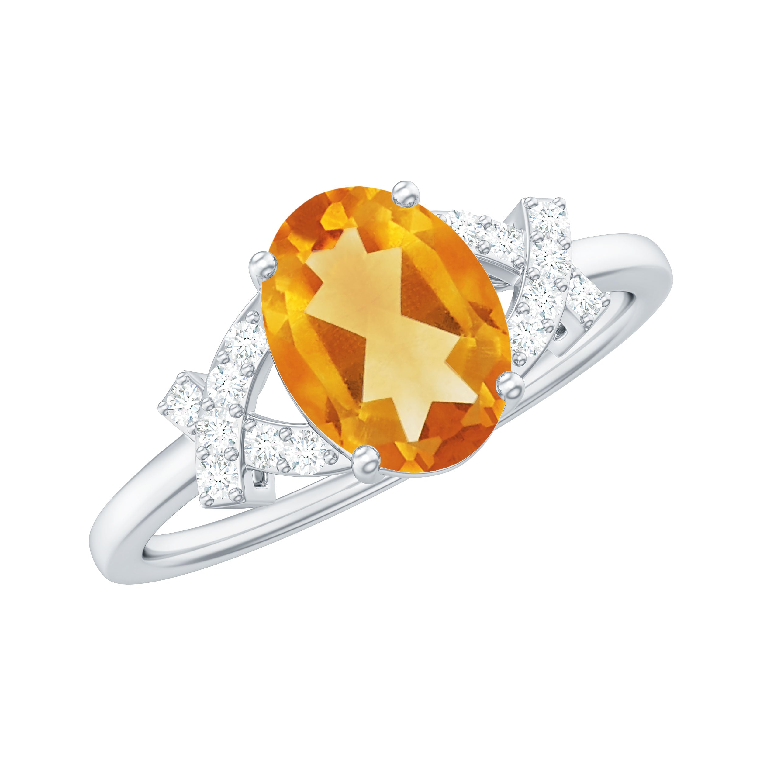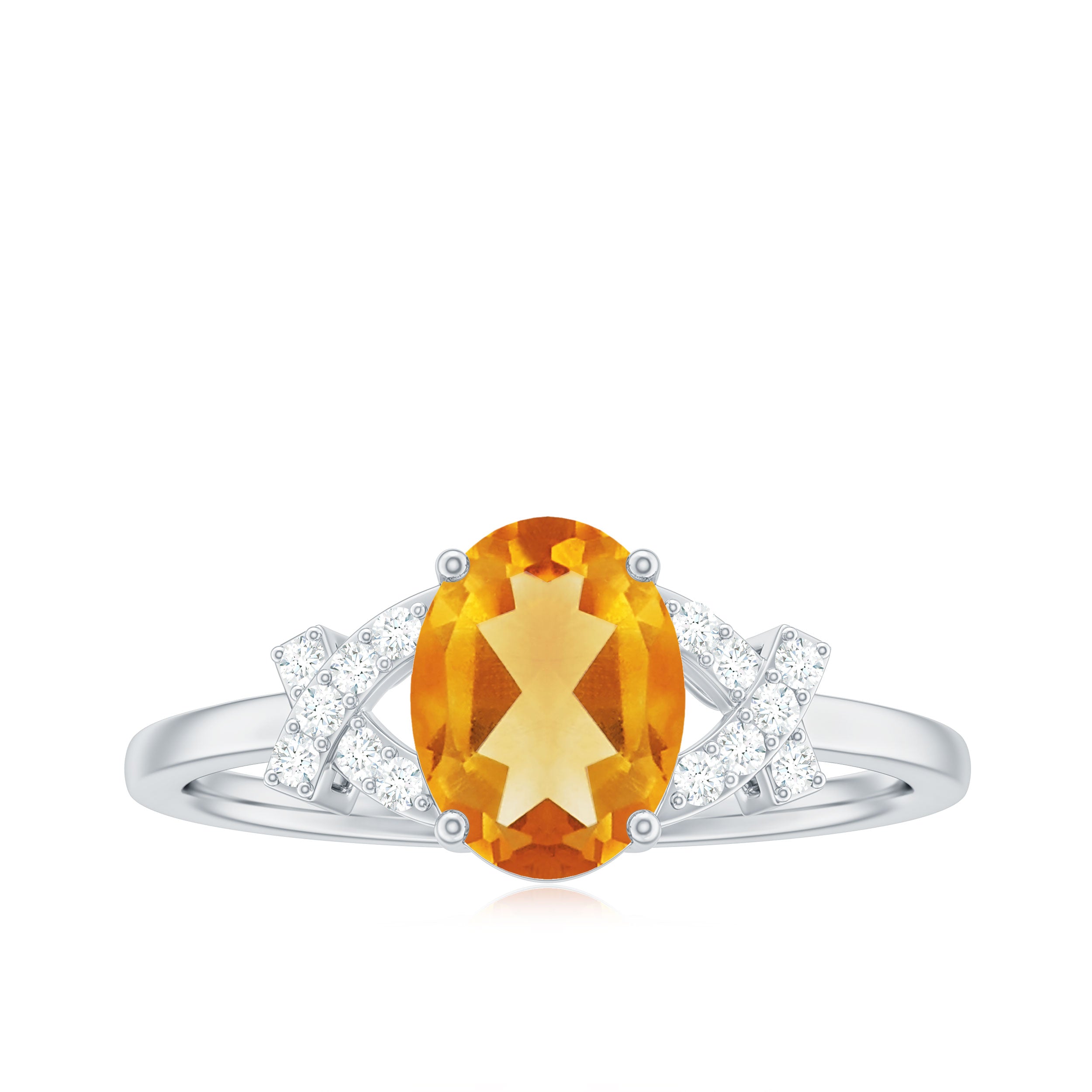 Split Shank Oval Citrine and Diamond Solitaire Engagement Ring