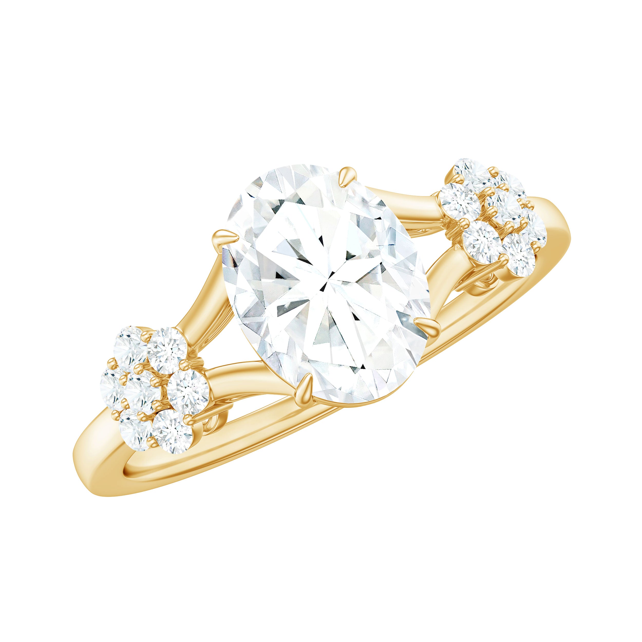 Split Shank Oval Cut Zircon Cocktail Flower Ring in Gold