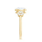 Flaunt your gorgeous look with this Cocktail Ring adorned with Oval Cut Zircon in Claw Set with Round Zircon Stones set in flower pattern on either side. The Flower Ring is crafted with gold metal and has a unique and eye-catching design that is perfect for special occasions.