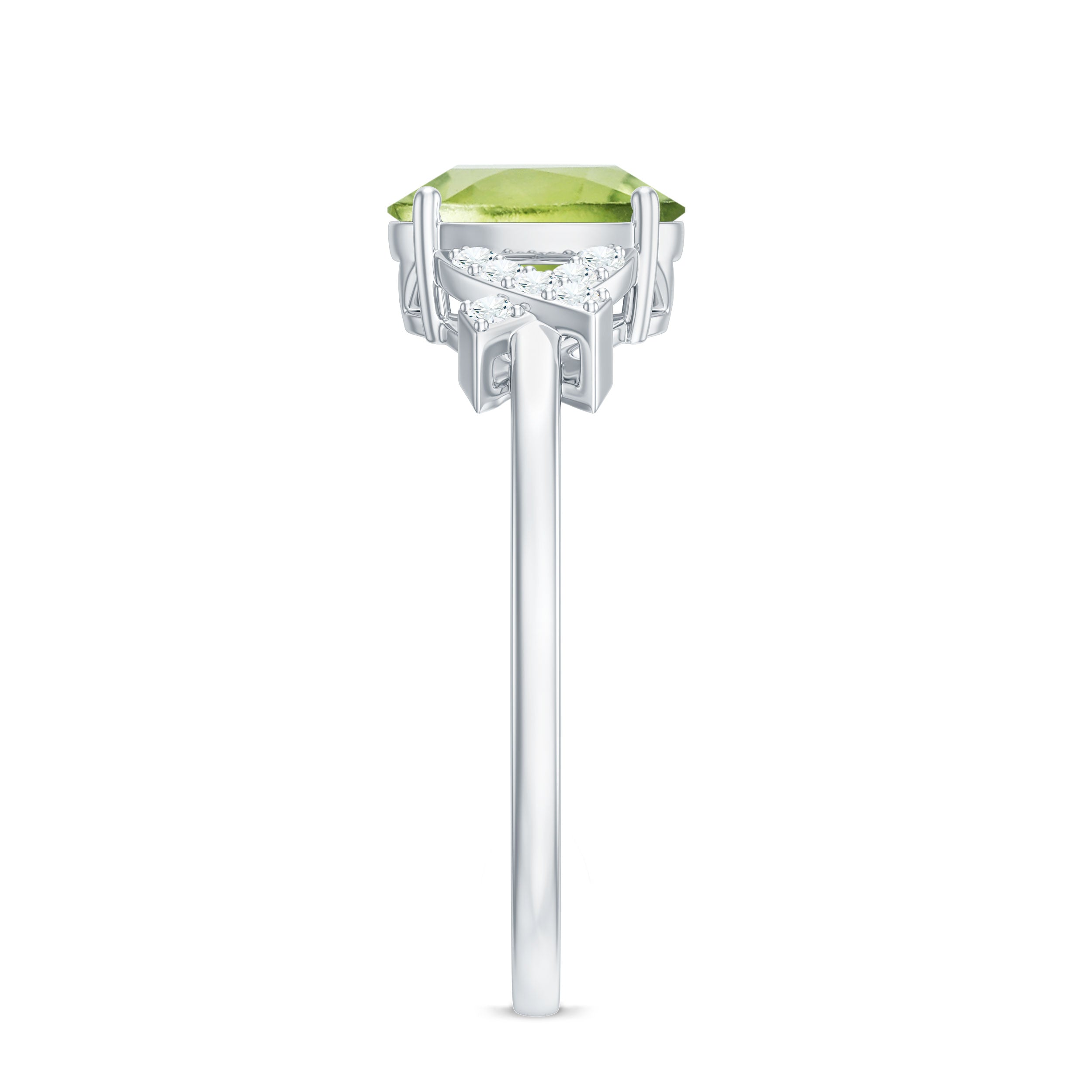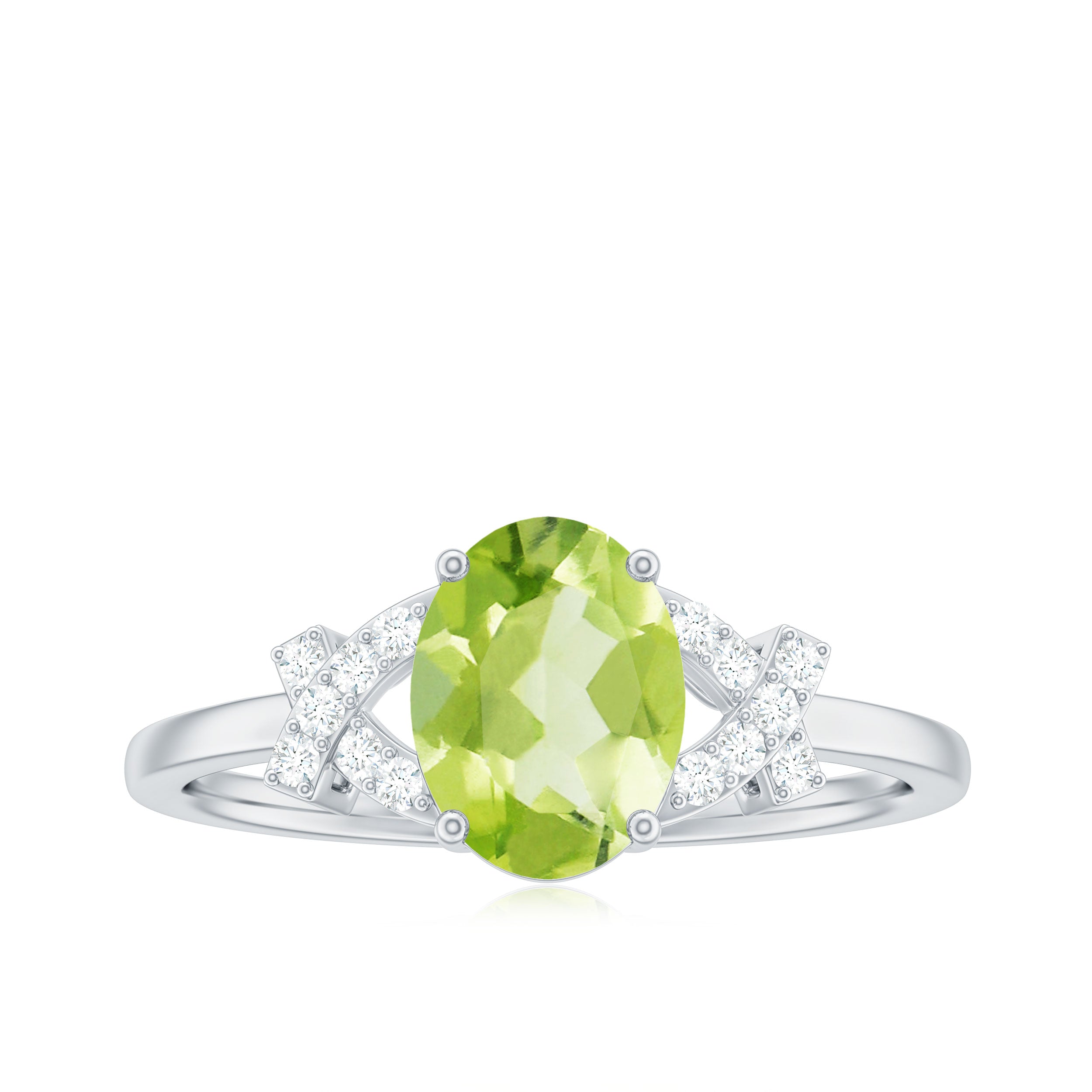 Split Shank Oval Peridot and Diamond Solitaire Engagement Ring