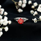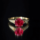 Split Shank Round Created Ruby Solitaire Ring with Surprise Diamond