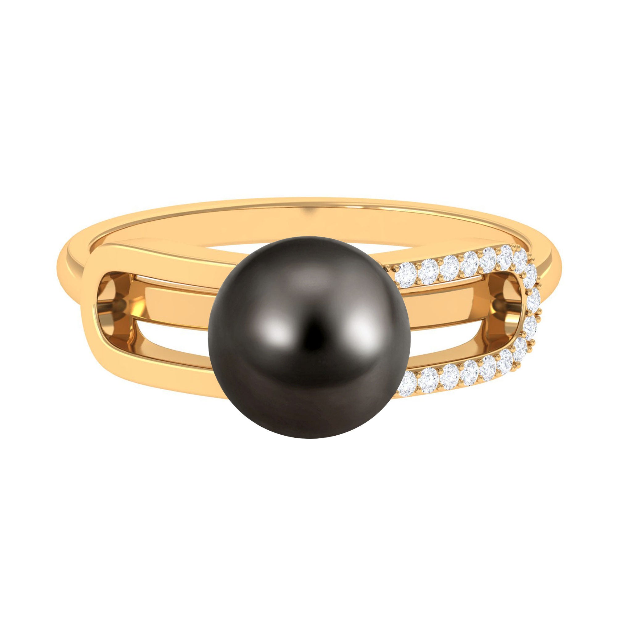 Split Shank Tahitian Pearl Solitaire Engagement Ring with Diamond
