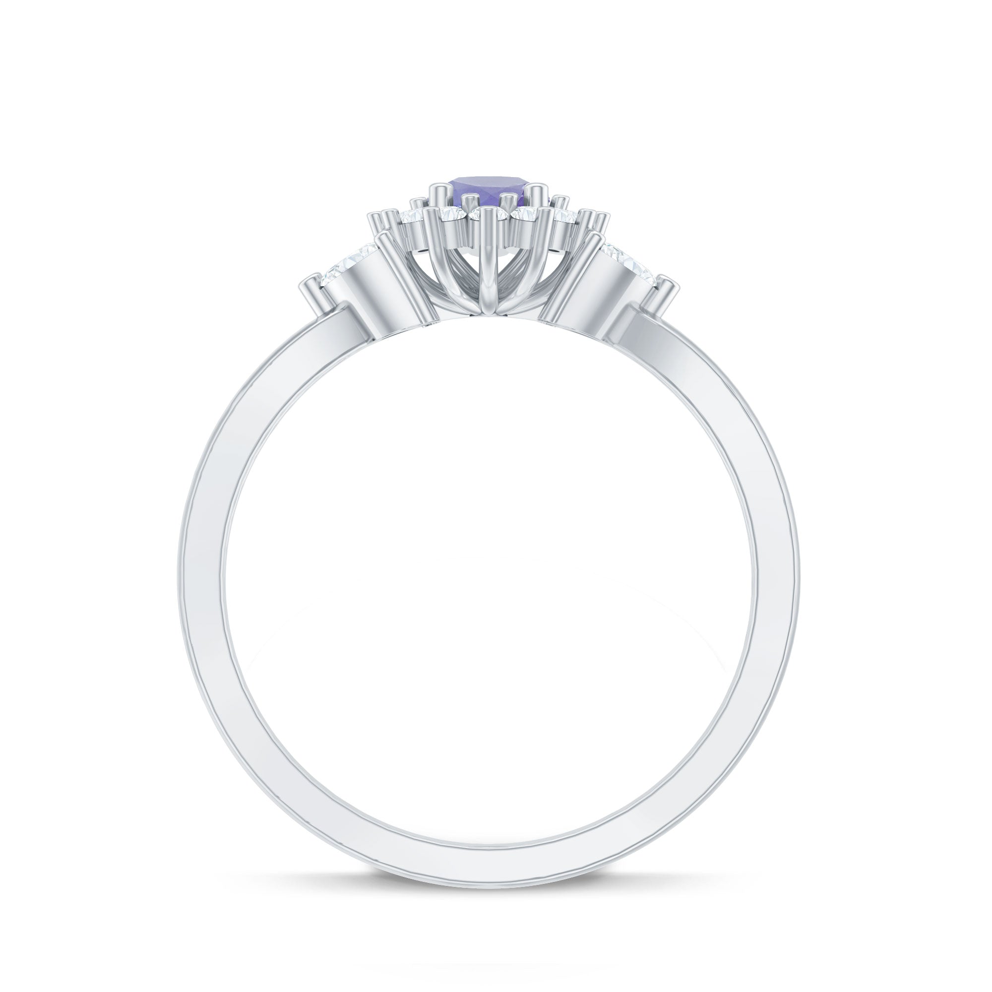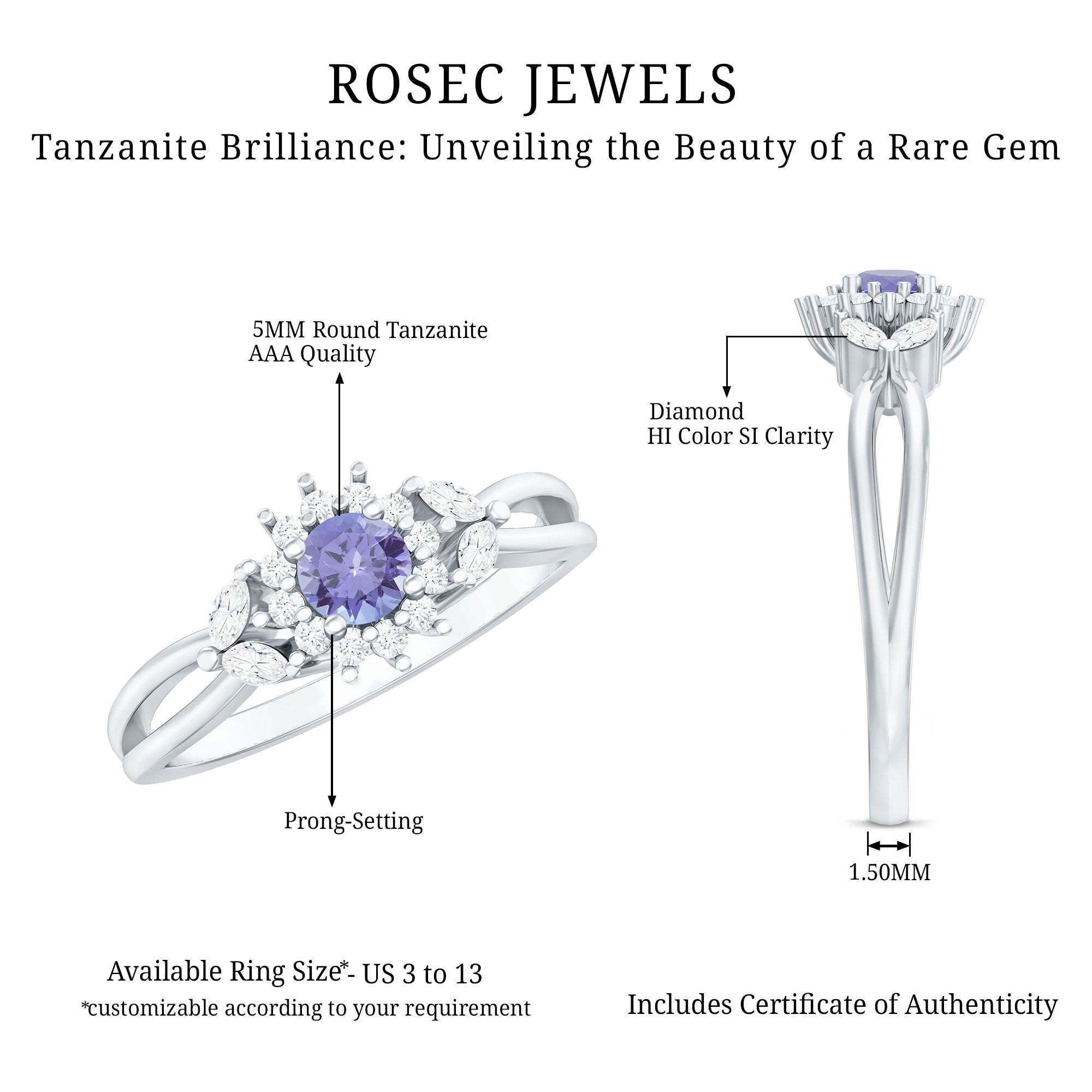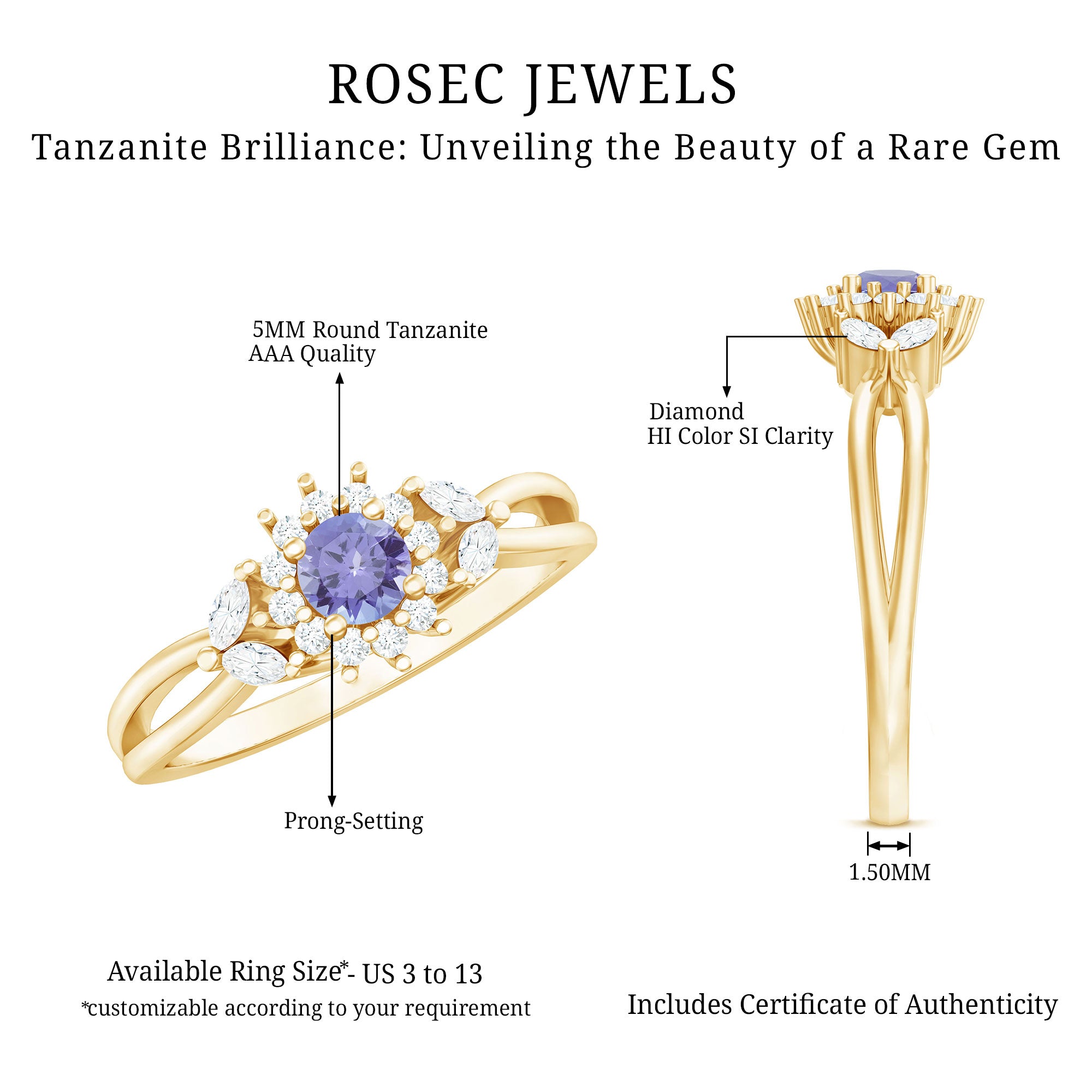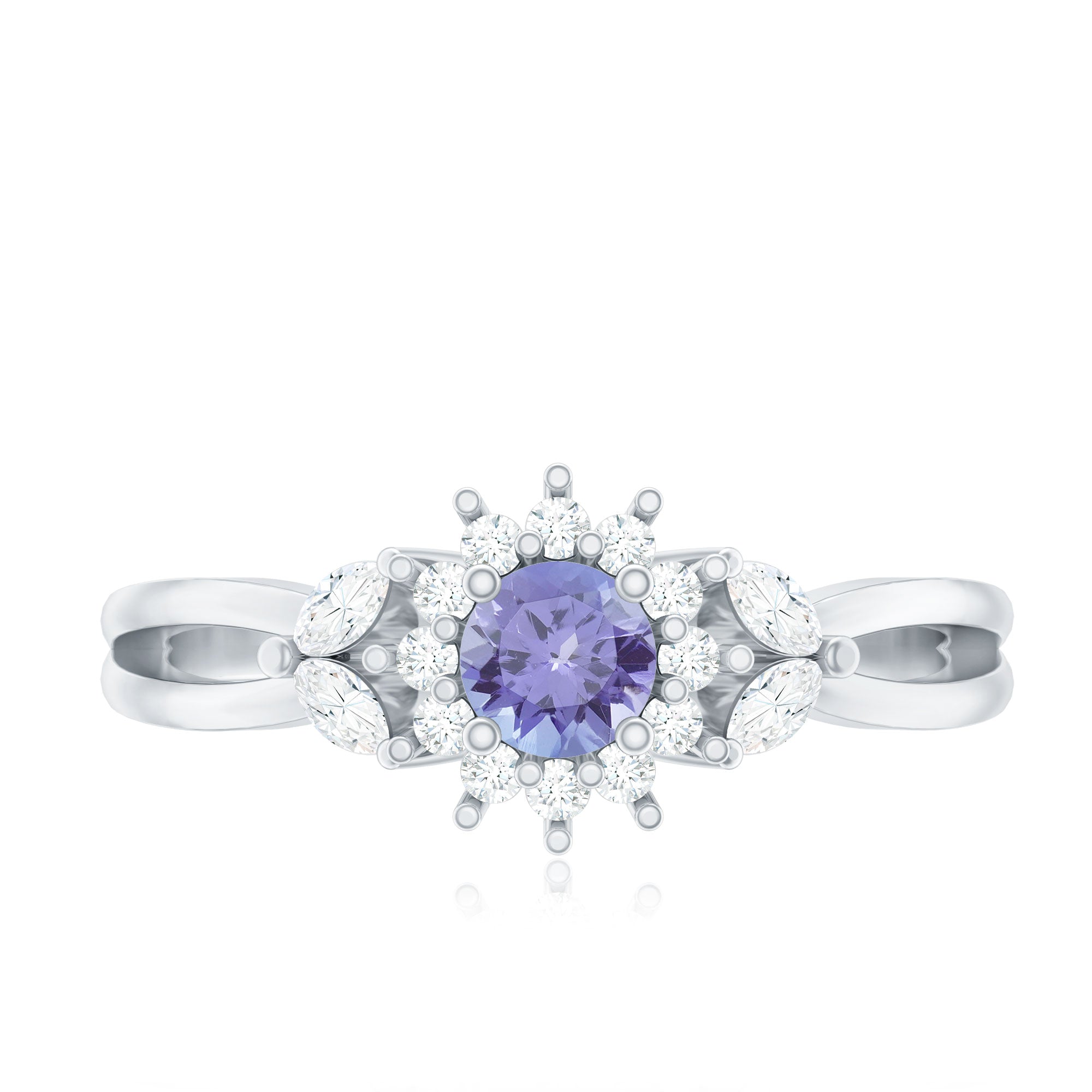 Split Shank Tanzanite Flower Engagement Ring with Diamond