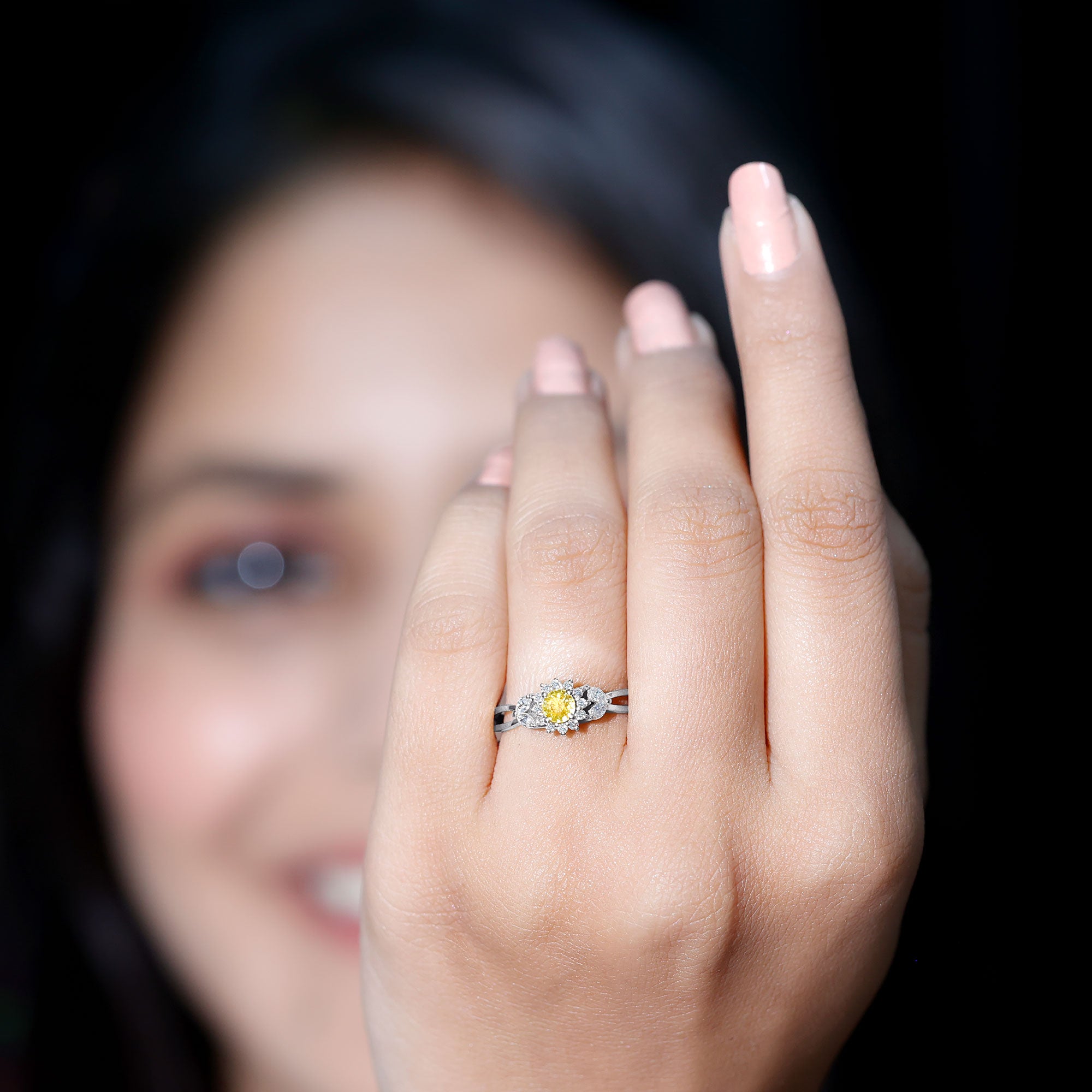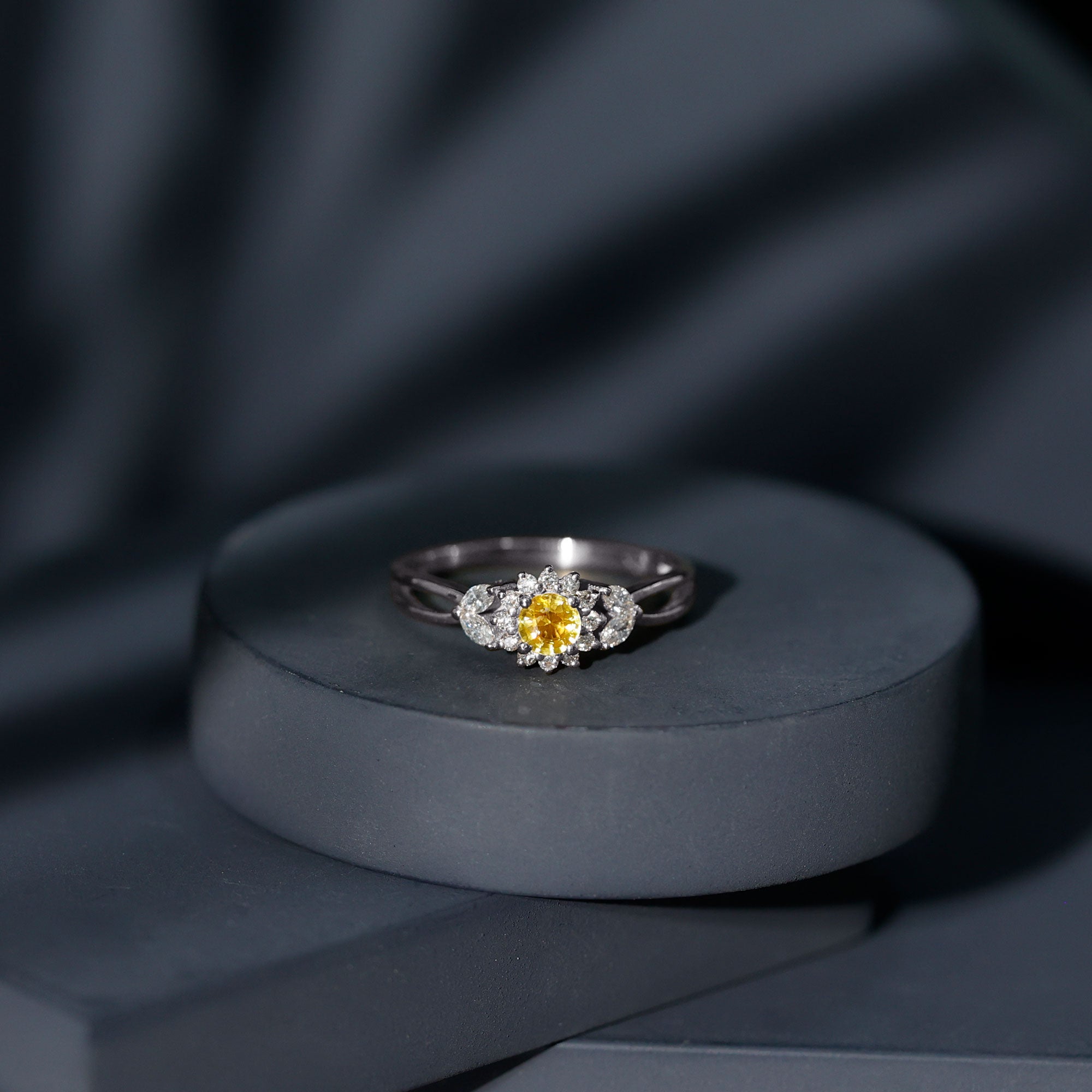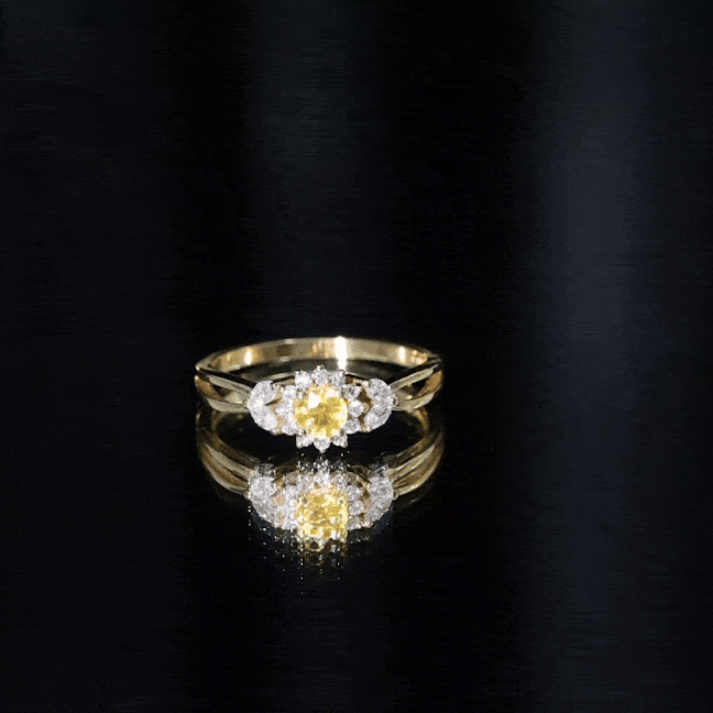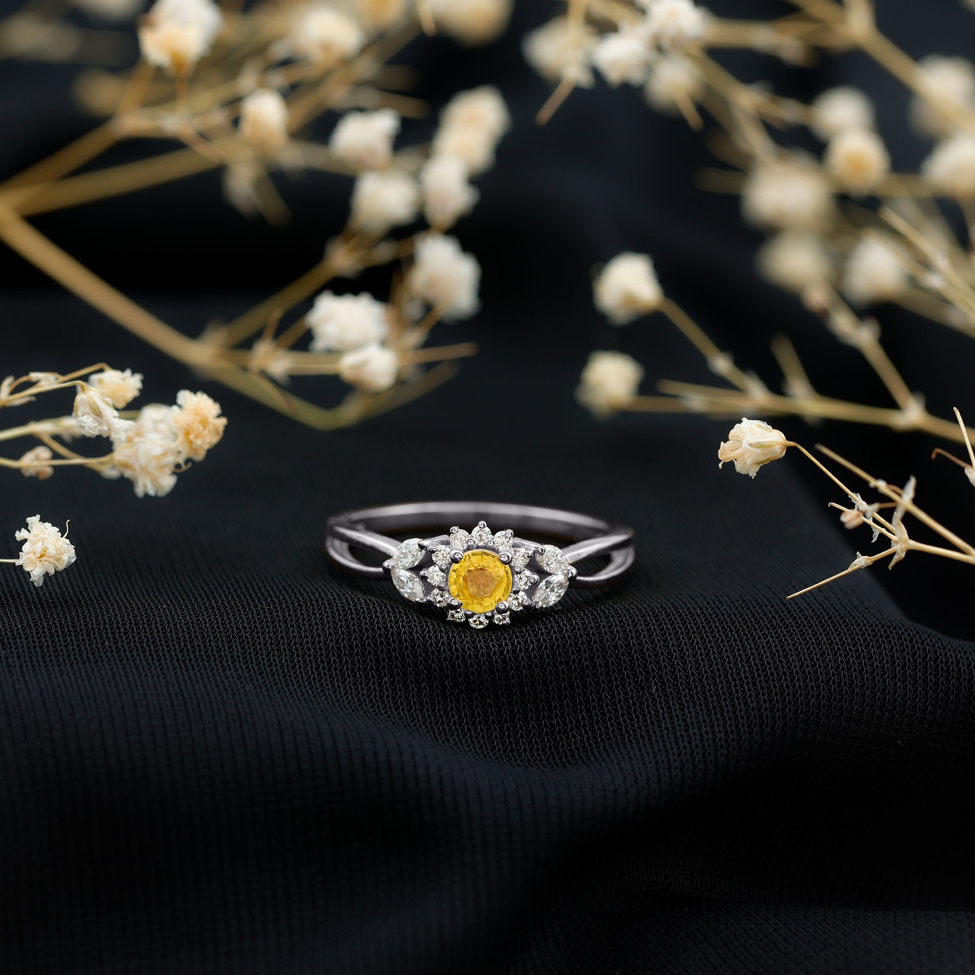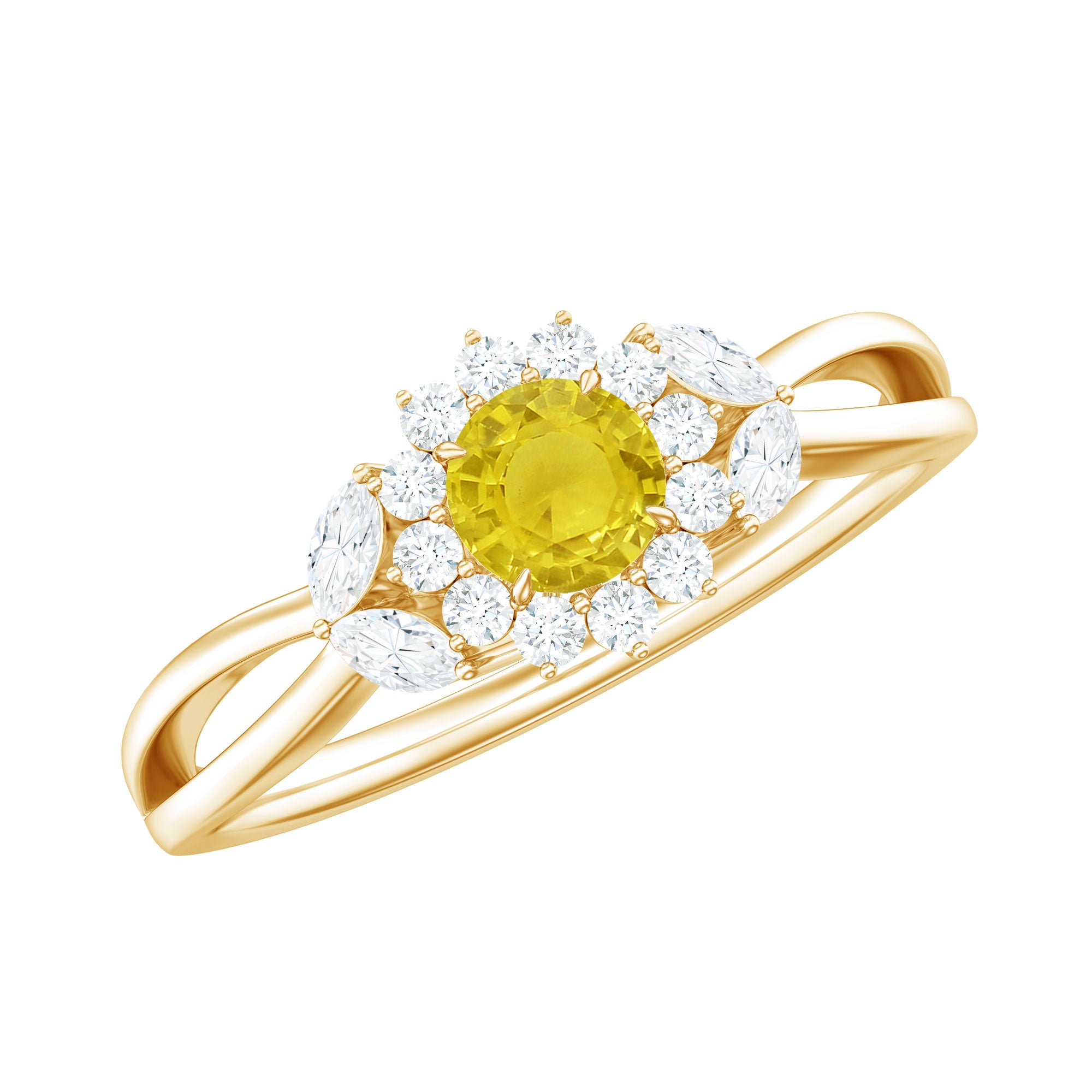 Split Shank Yellow Sapphire Flower Engagement Ring with Diamond