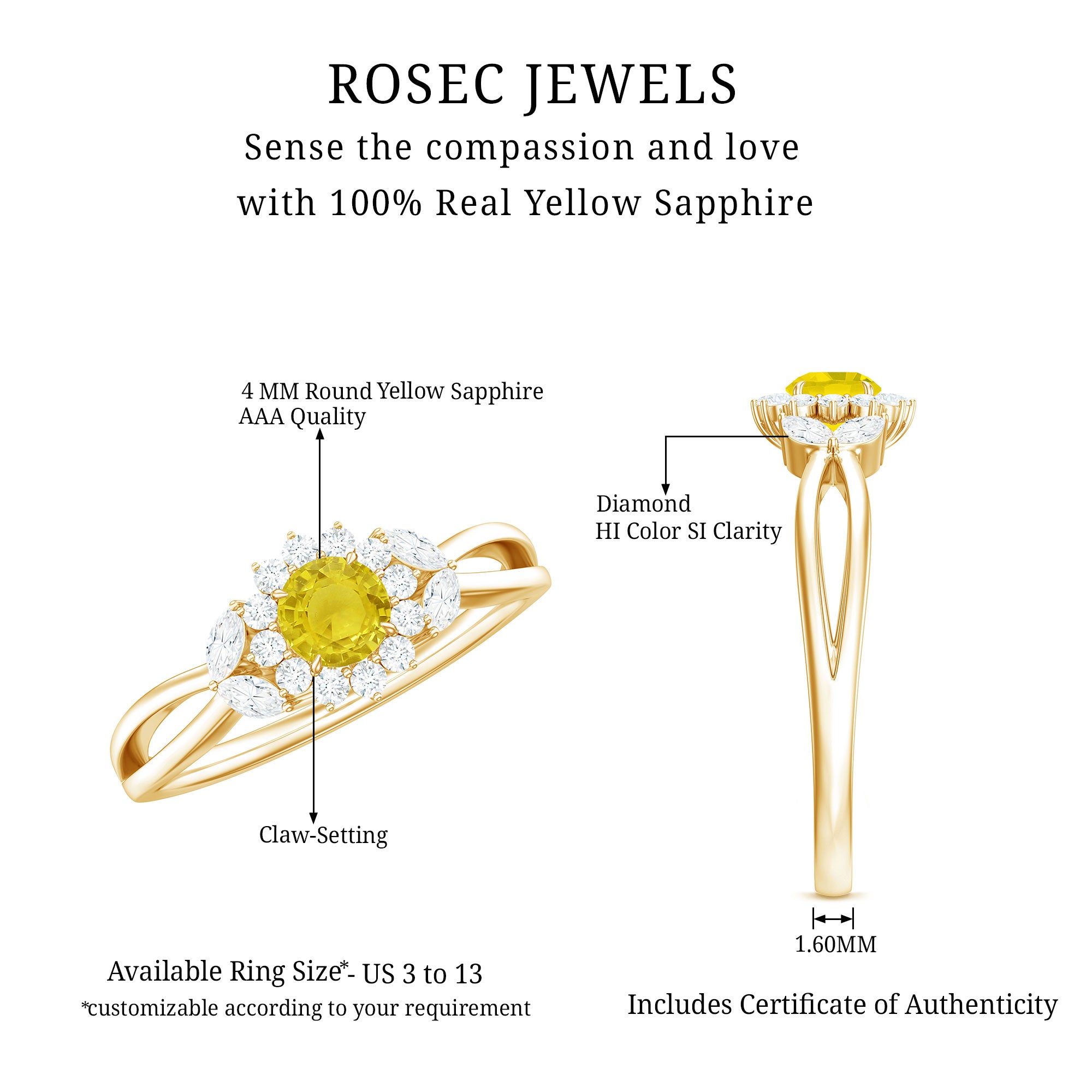 Make a statement with this Yellow Sapphire Engagement Ring. The ring features a round-cut Yellow Sapphire center stone with Diamond accents. Its a beautiful piece of jewelry, perfect for your special someone as a symbol of your love and commitment.