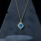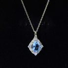 Sterling Silver Swiss Blue Topaz and Diamond Vintage Necklace With Chain